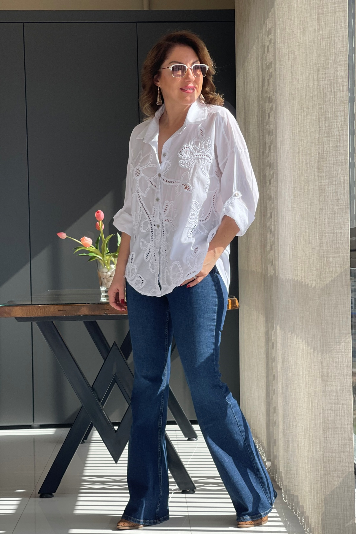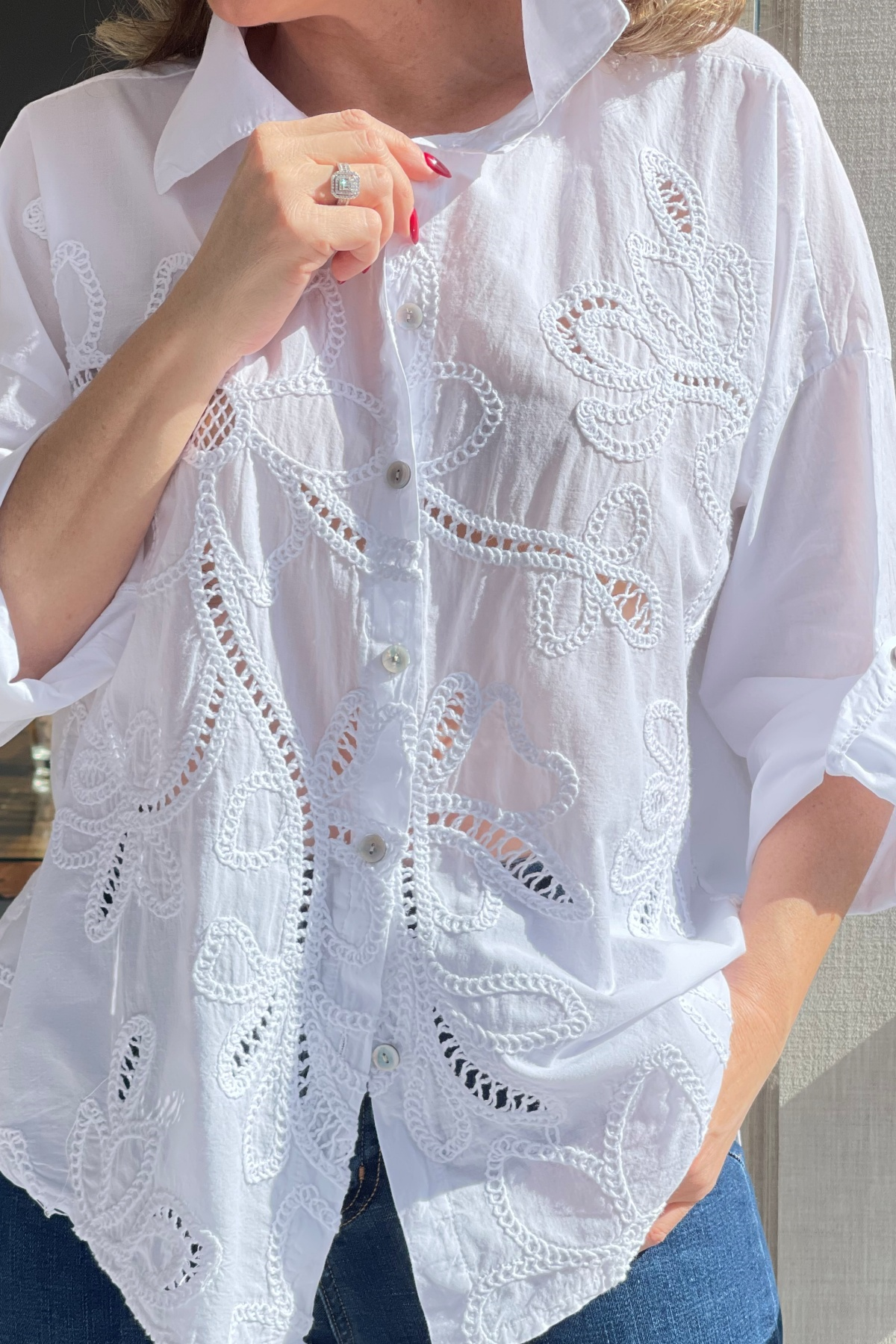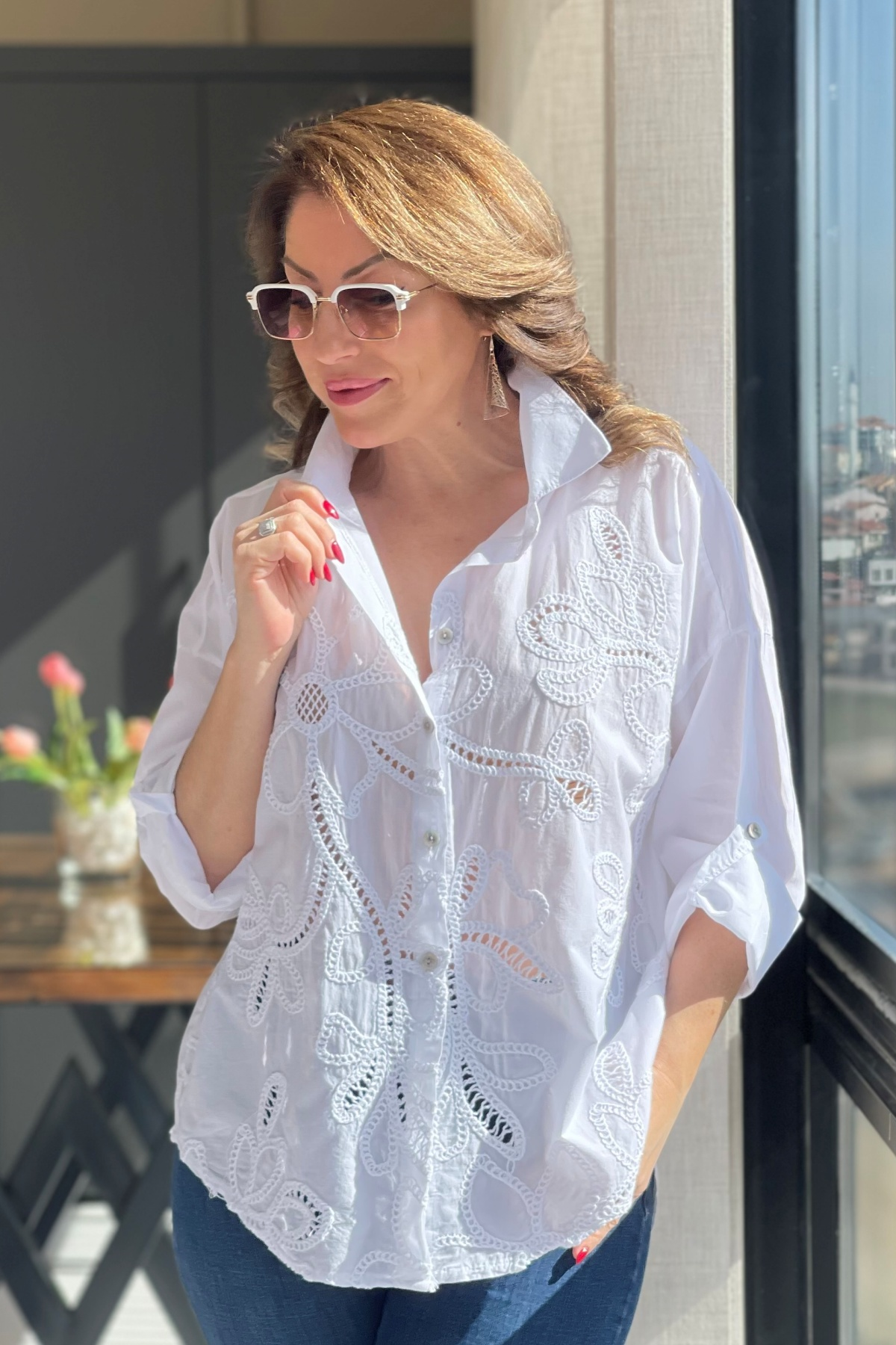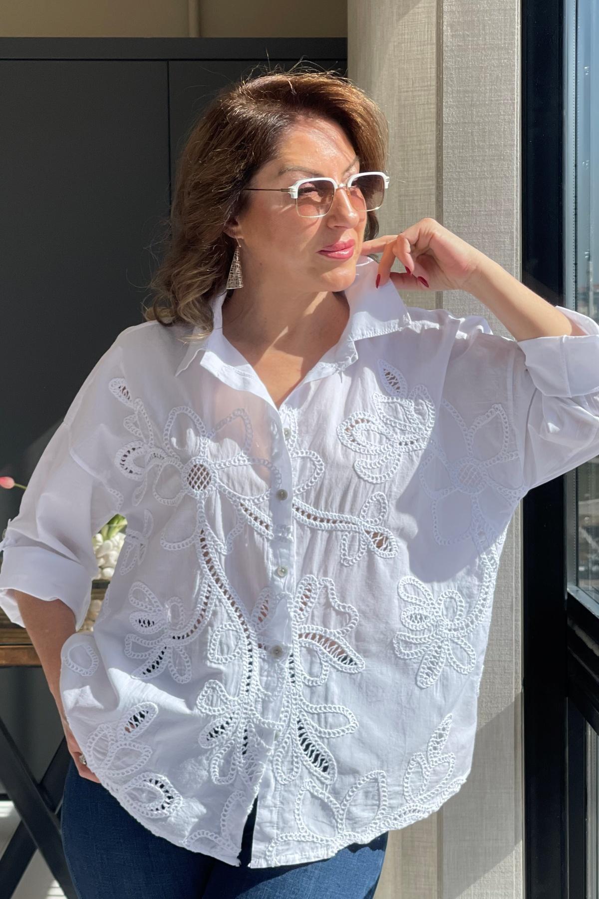 Ajurlu Beyaz Brode Gömlek (Mislina-1832)
