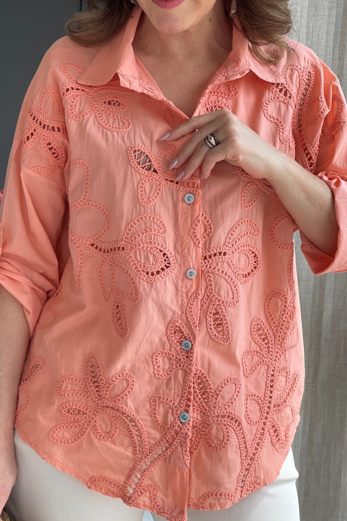 Ajurlu Yavruağzı Brode Gömlek (Mislina-1832)