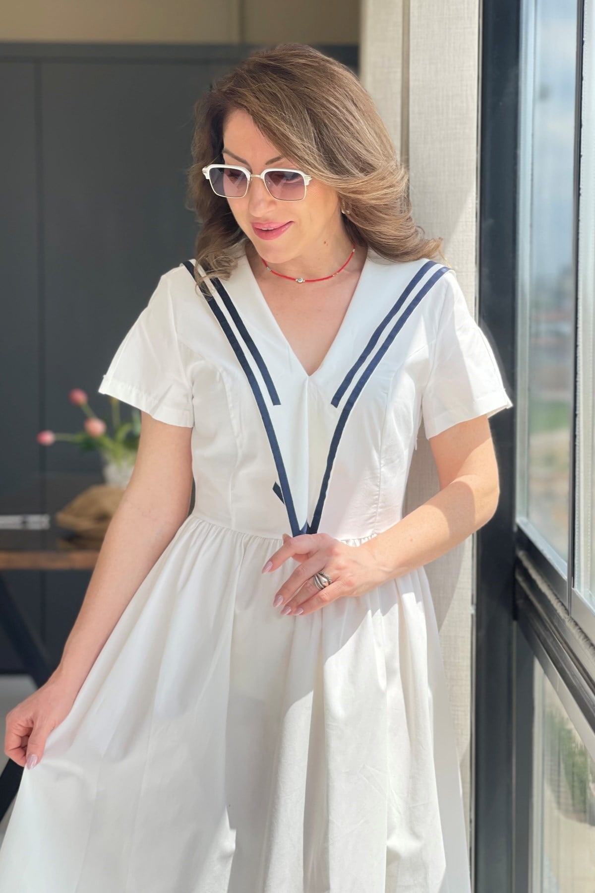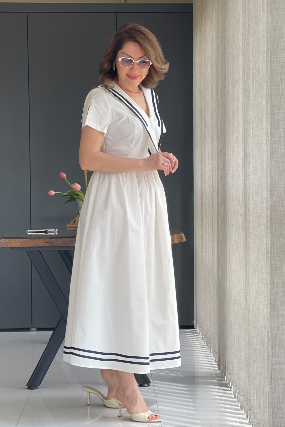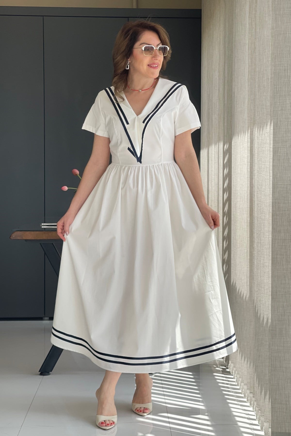 Manken üzerinde S beden kullanmıştır.