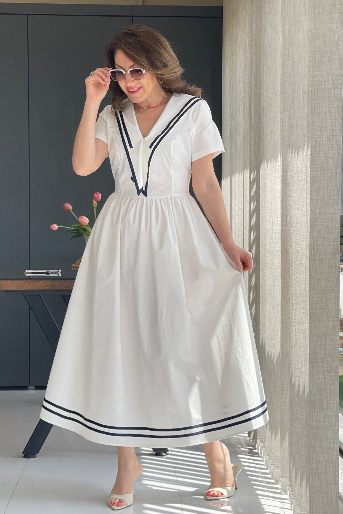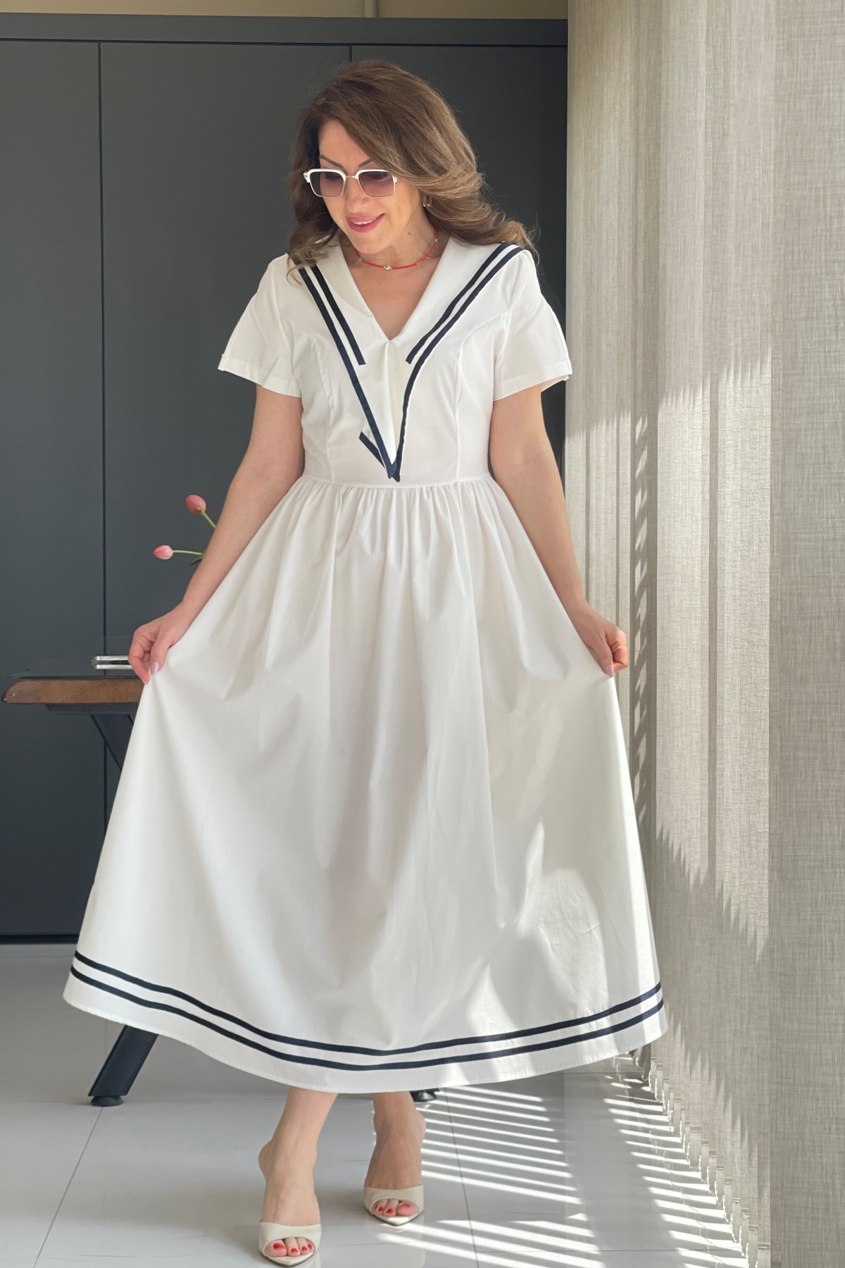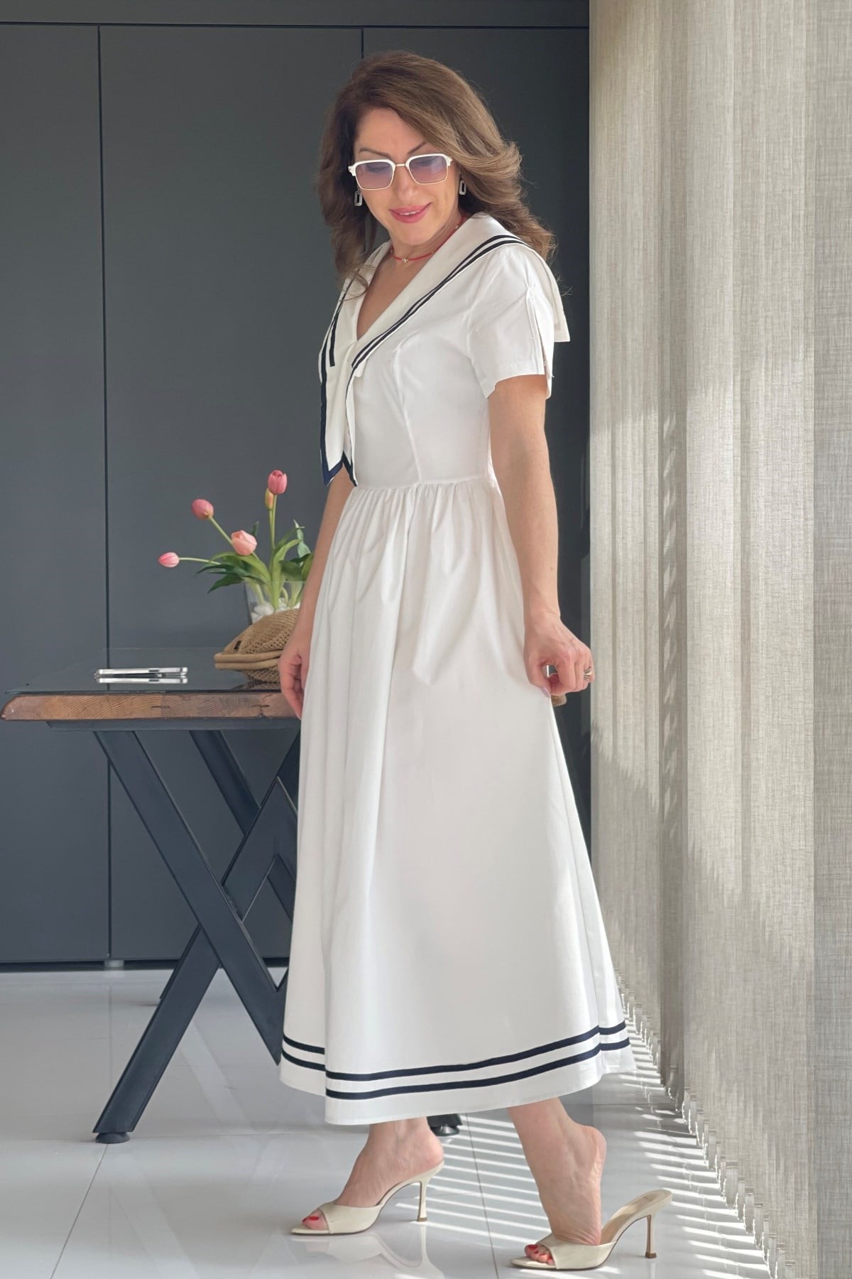 Manken üzerinde S beden kullanmıştır.