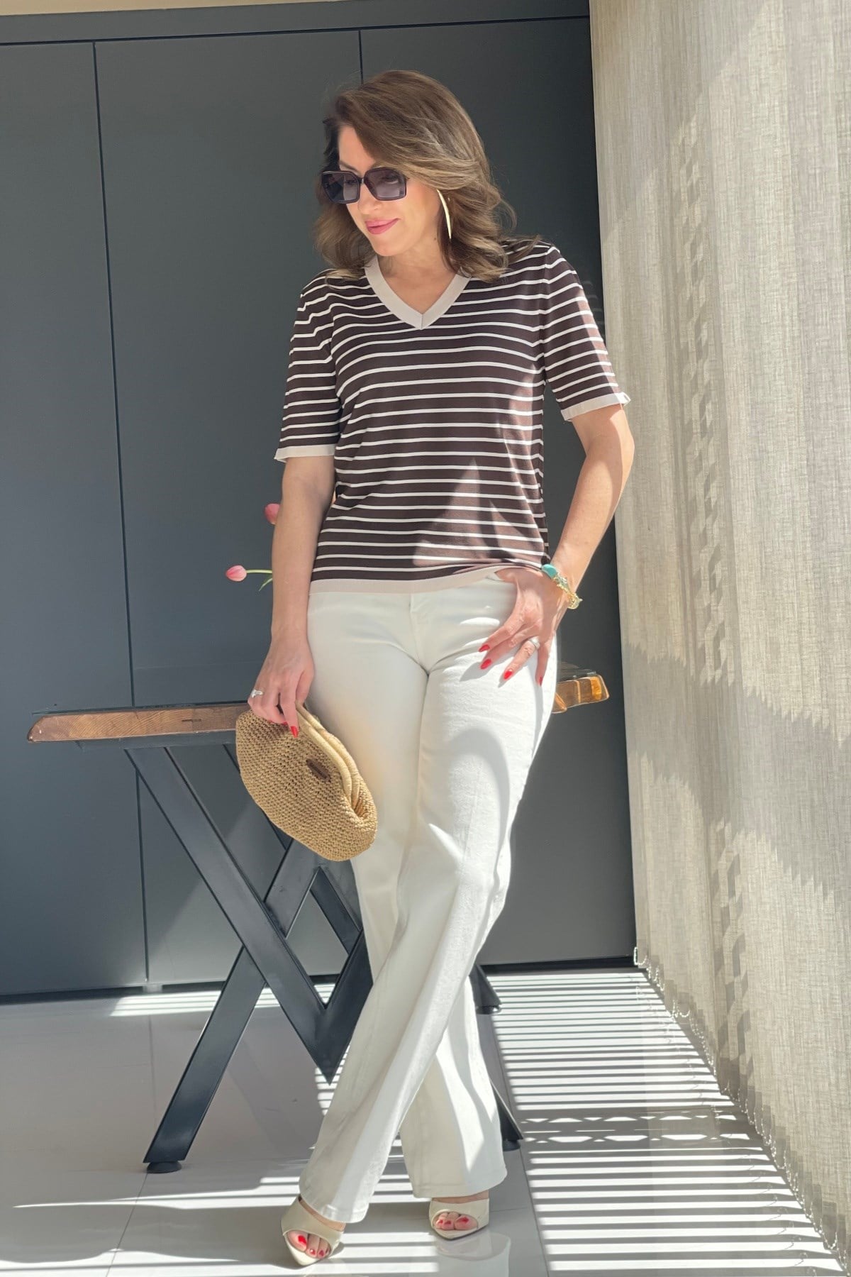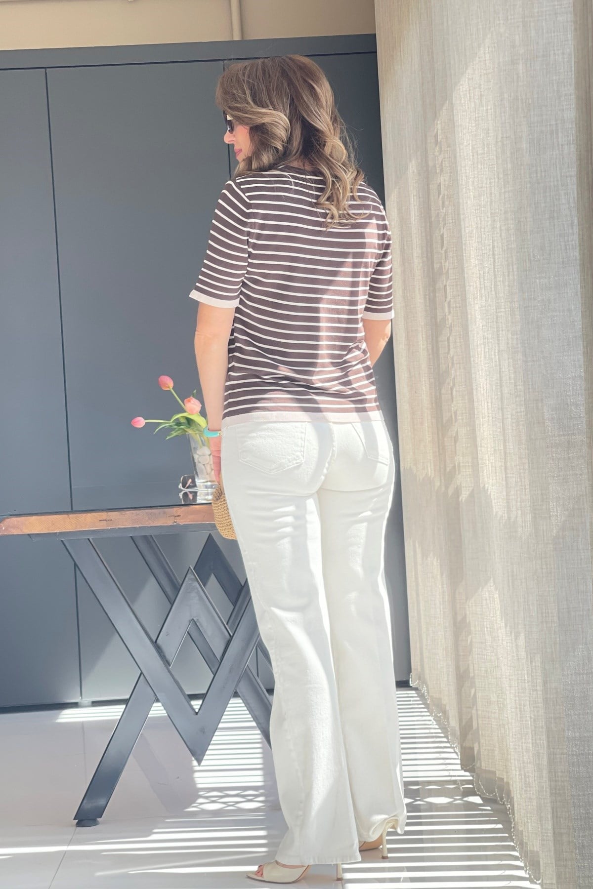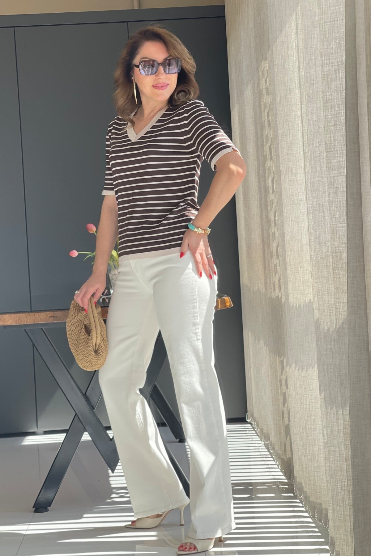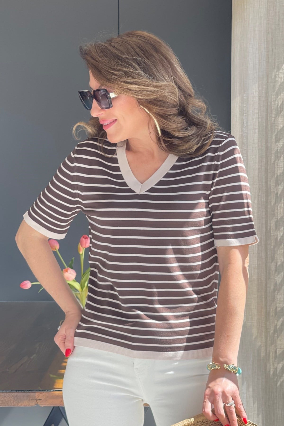 Bej Çizgi Kahve Triko Bluz (Mislina-1865)