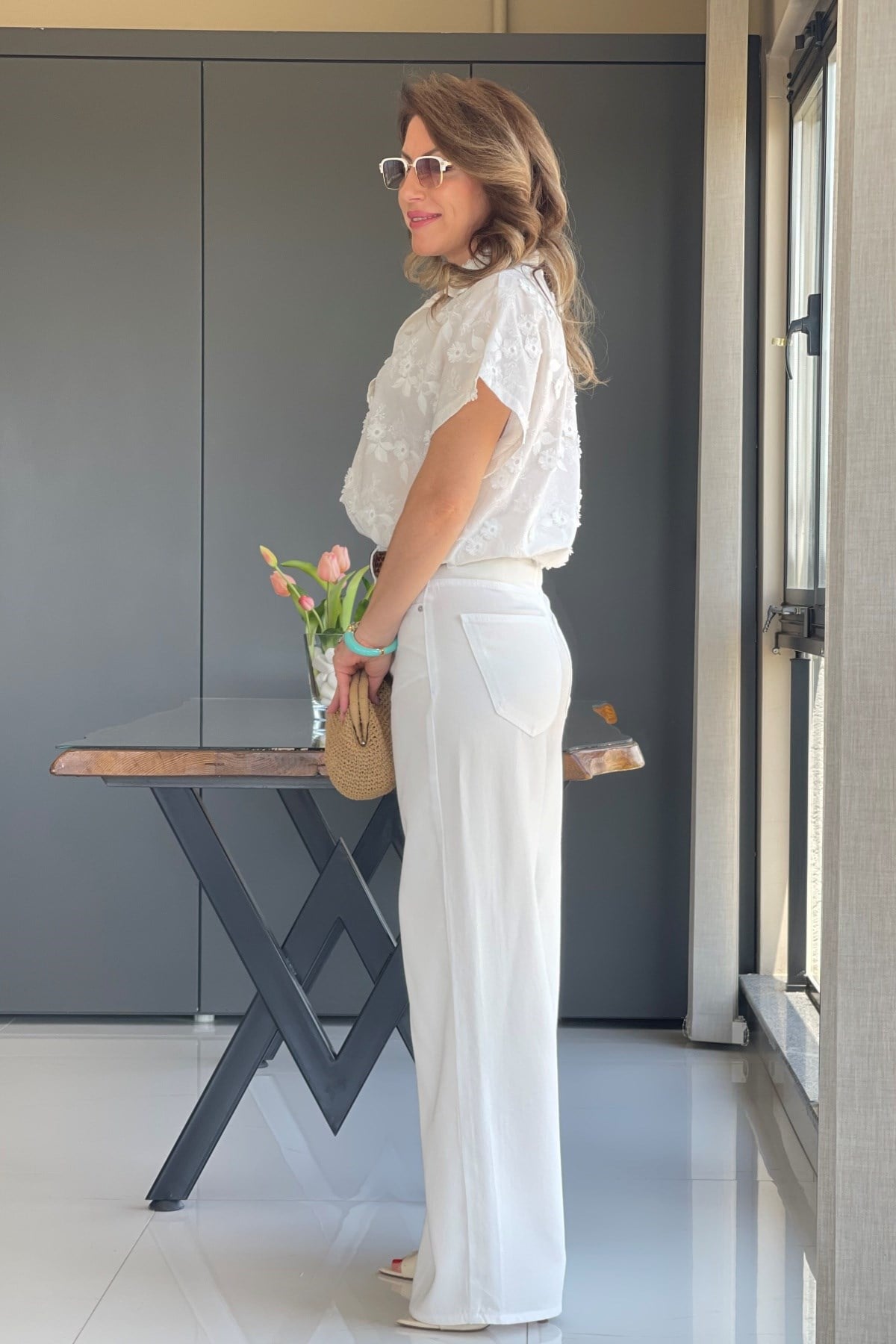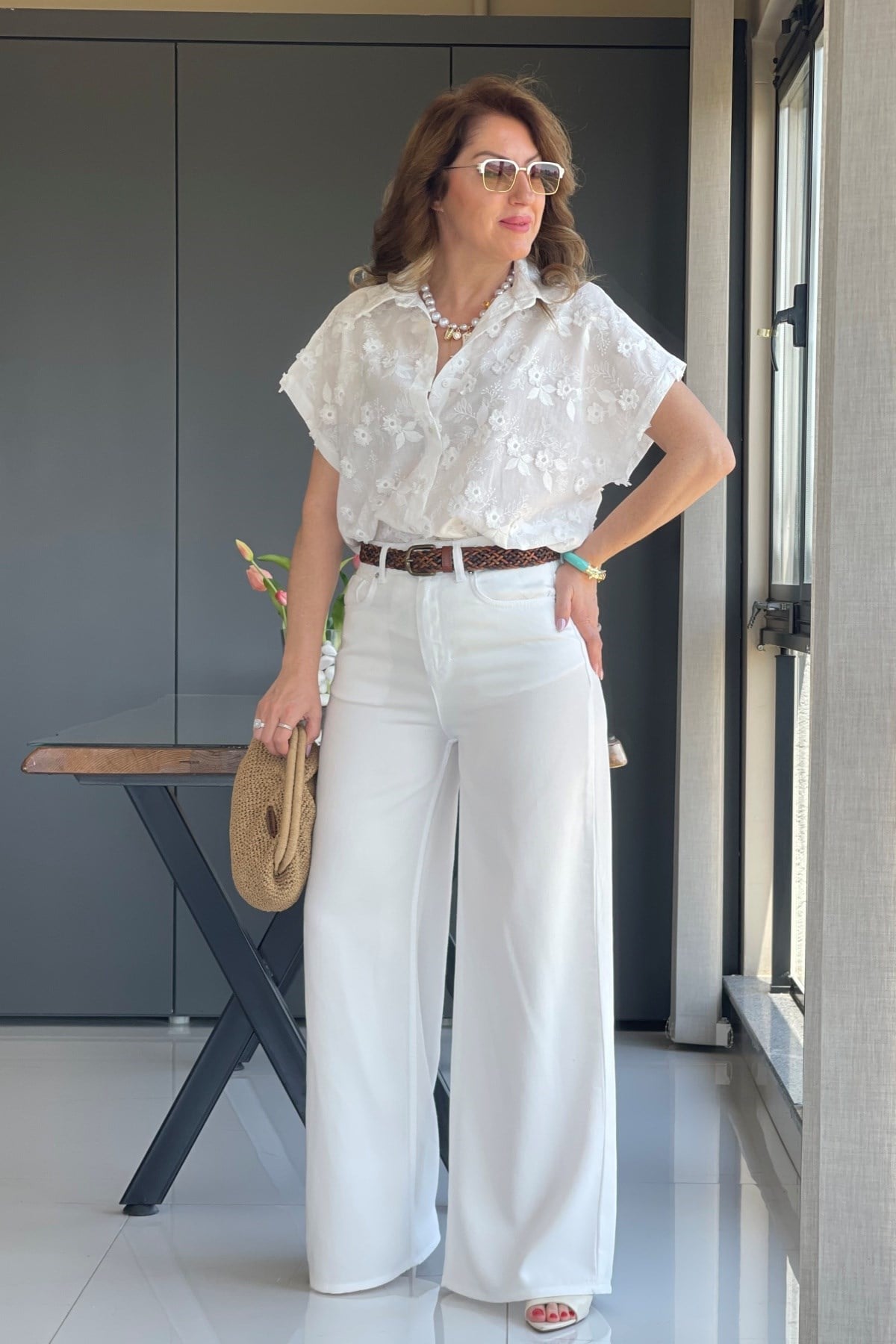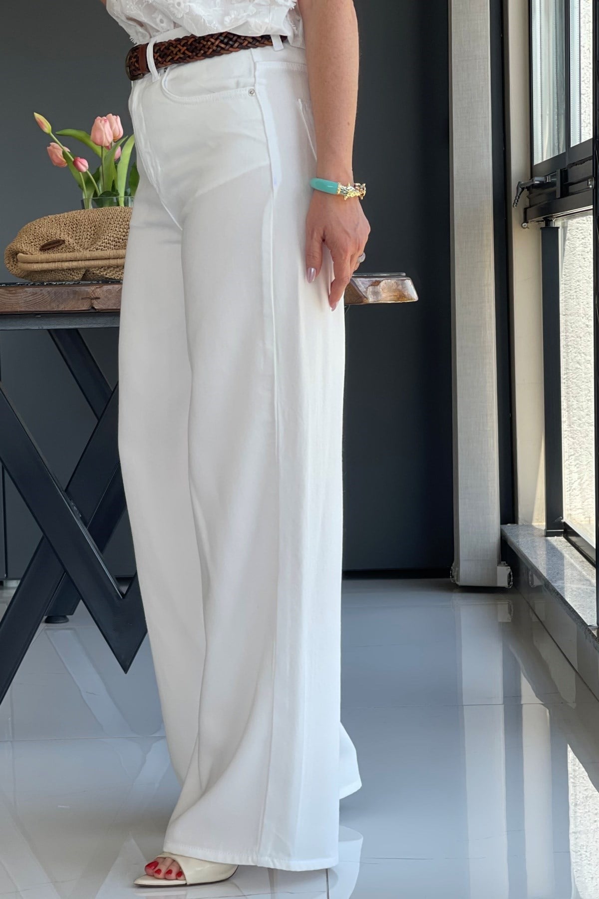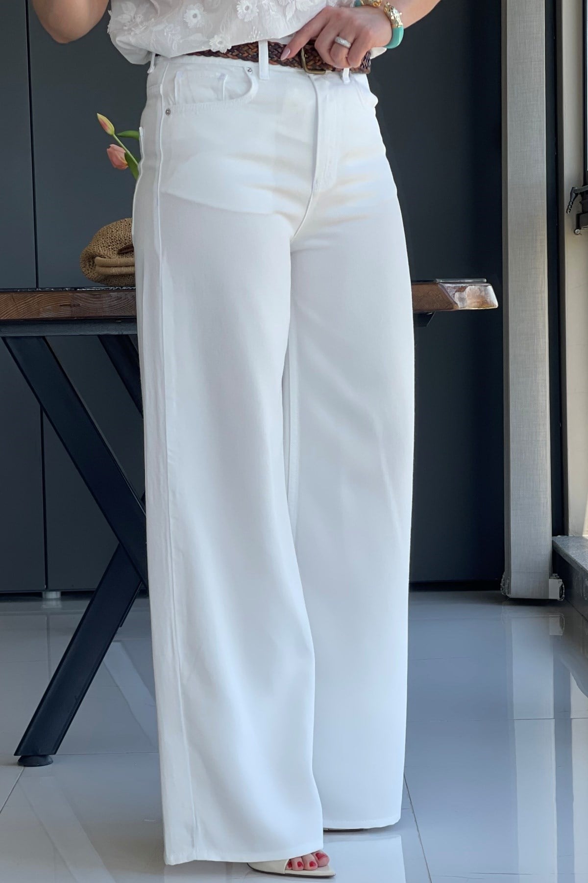 Manken üzerinde 36 beden kullanmıştır. Ürün likra yoktur. Kemer aksesuar olarak kullanılmıştır.