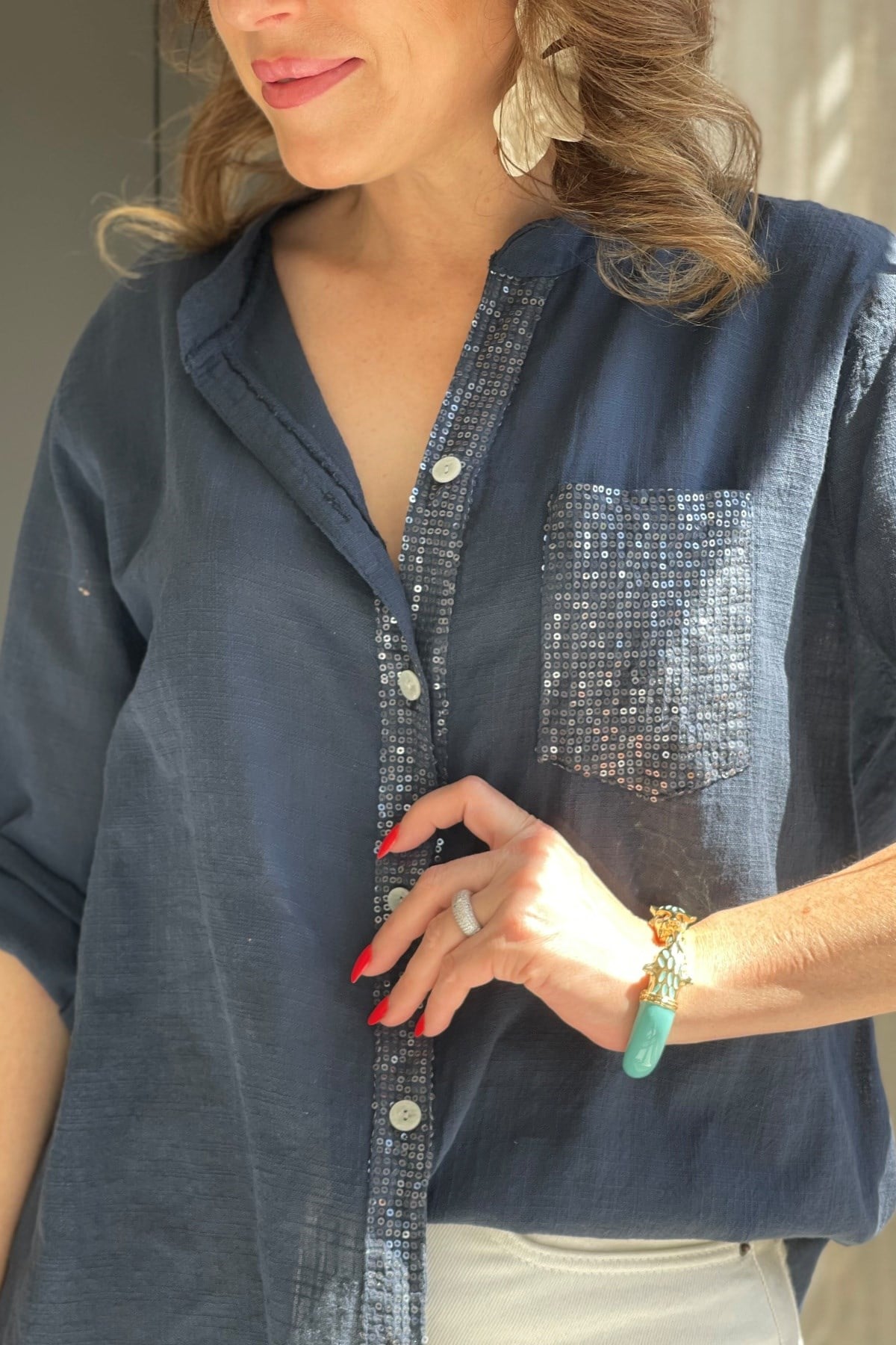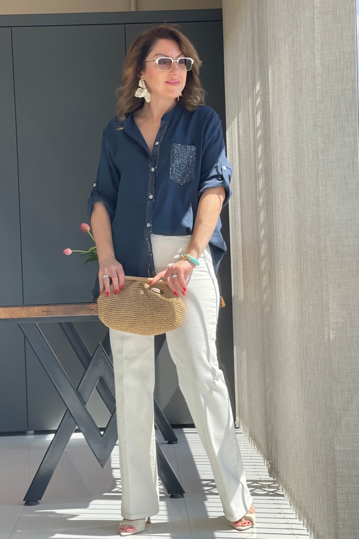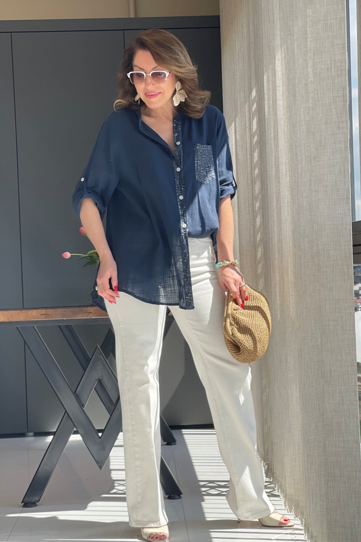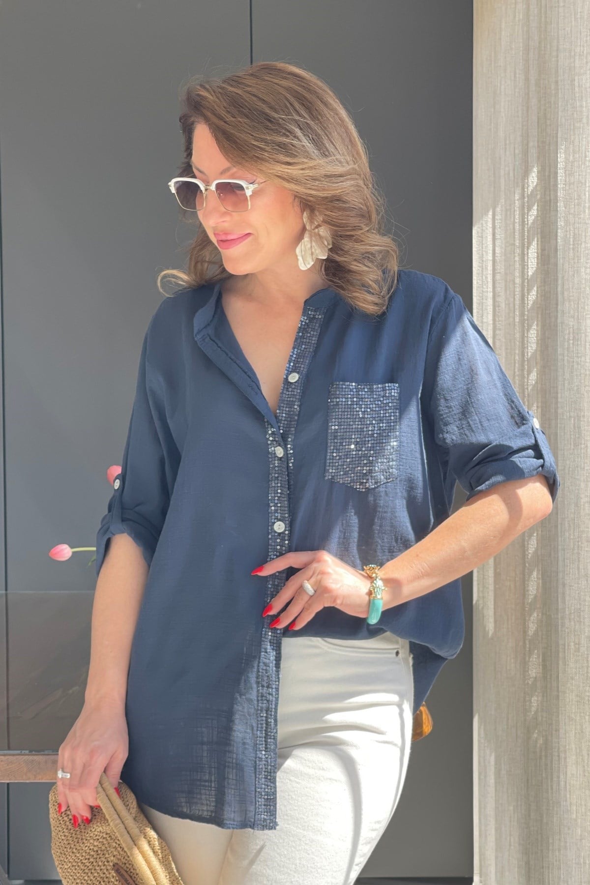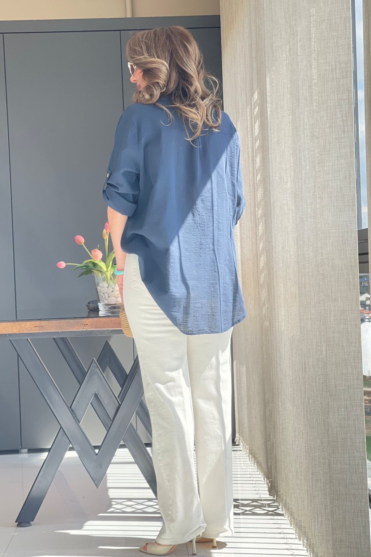 Cep Pul Detay İthal Lacivert Gömlek (Mislina-1866)