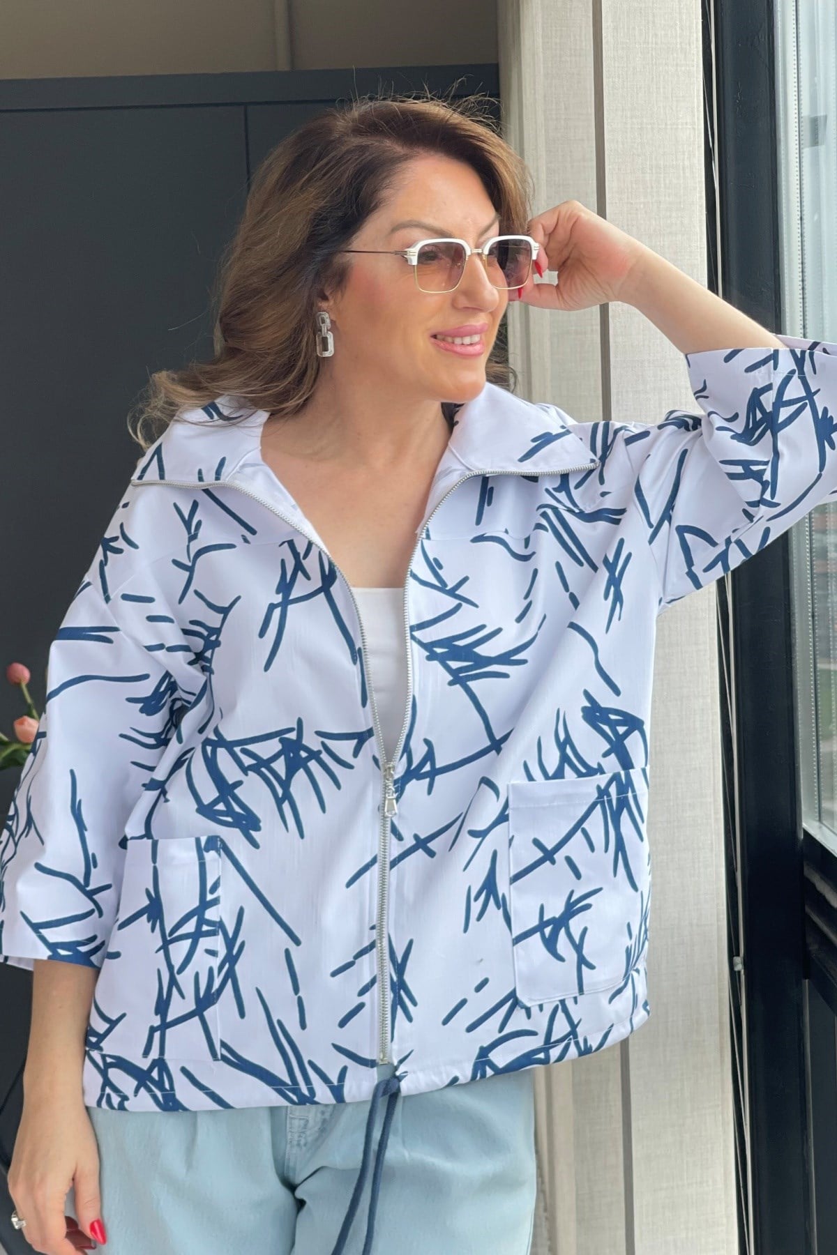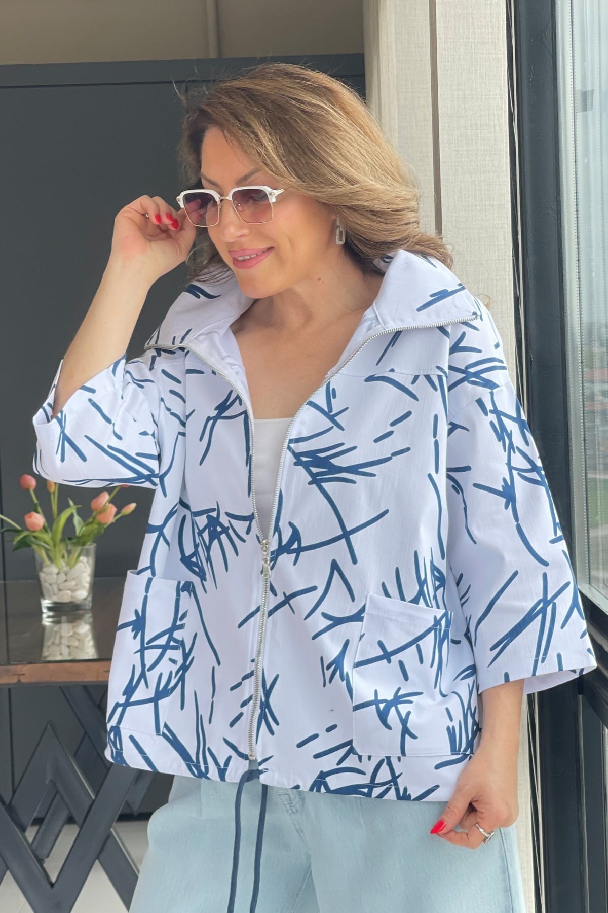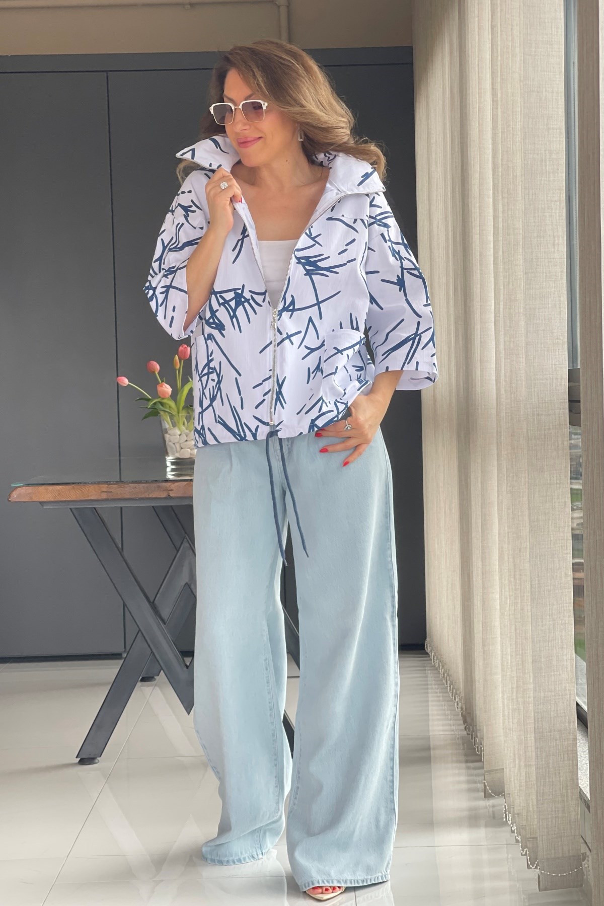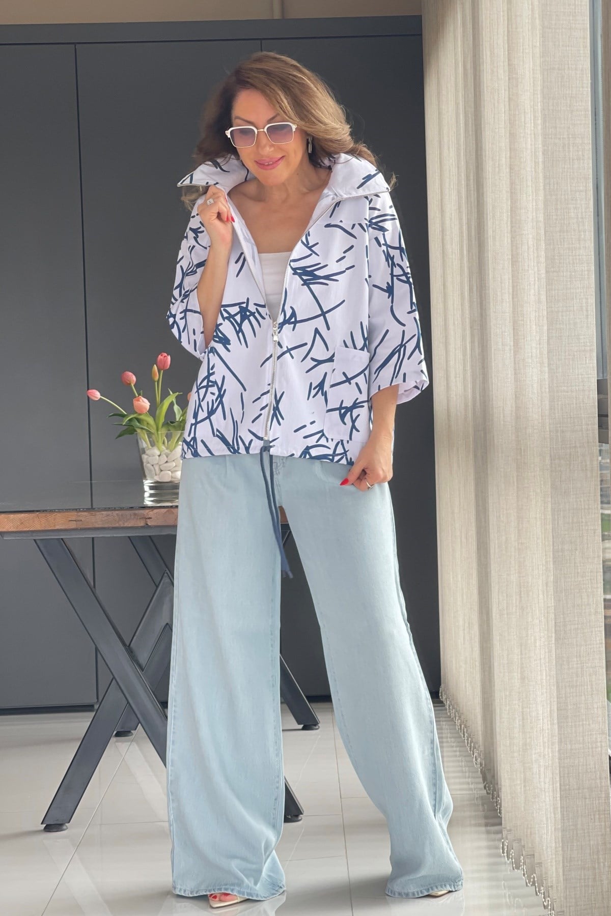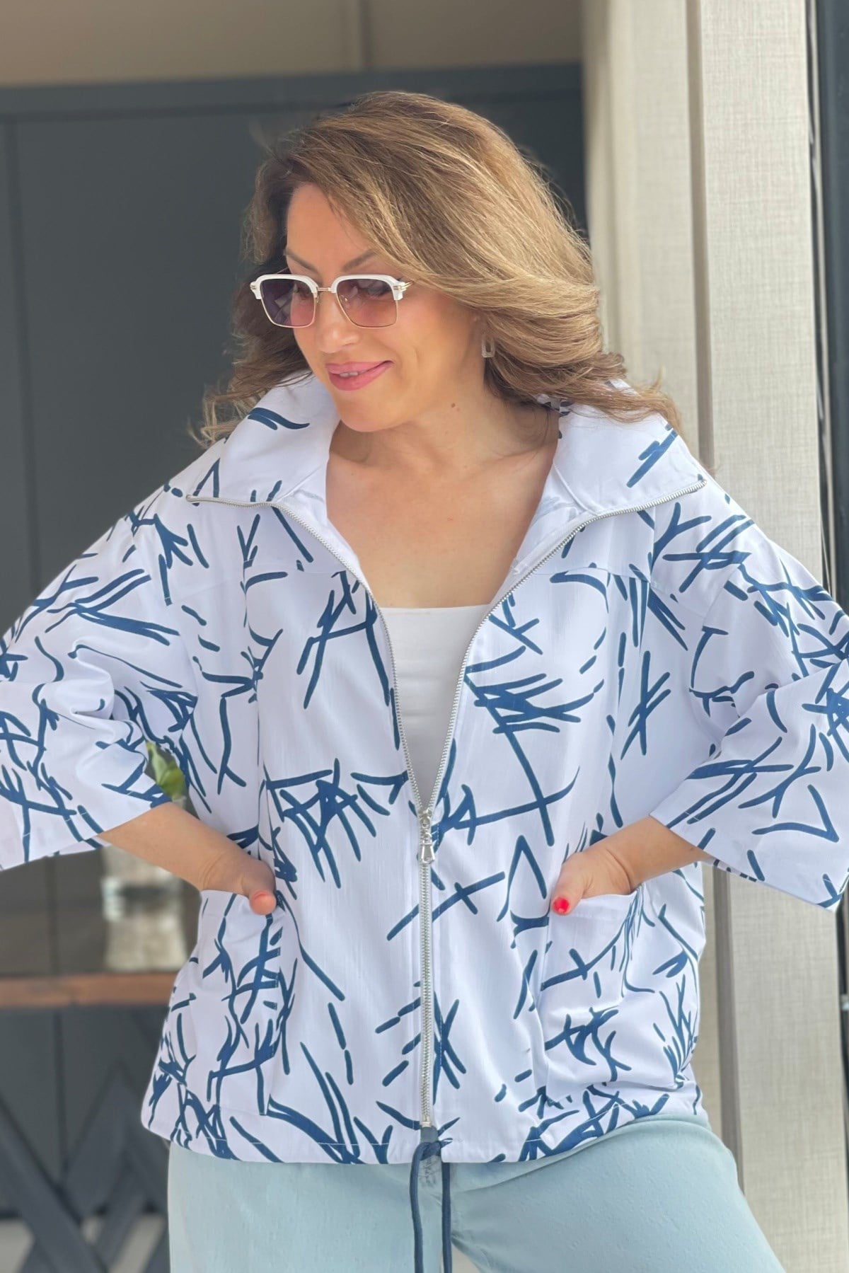 Çizgi Desen Beyaz Trenç (Mislina-1853)