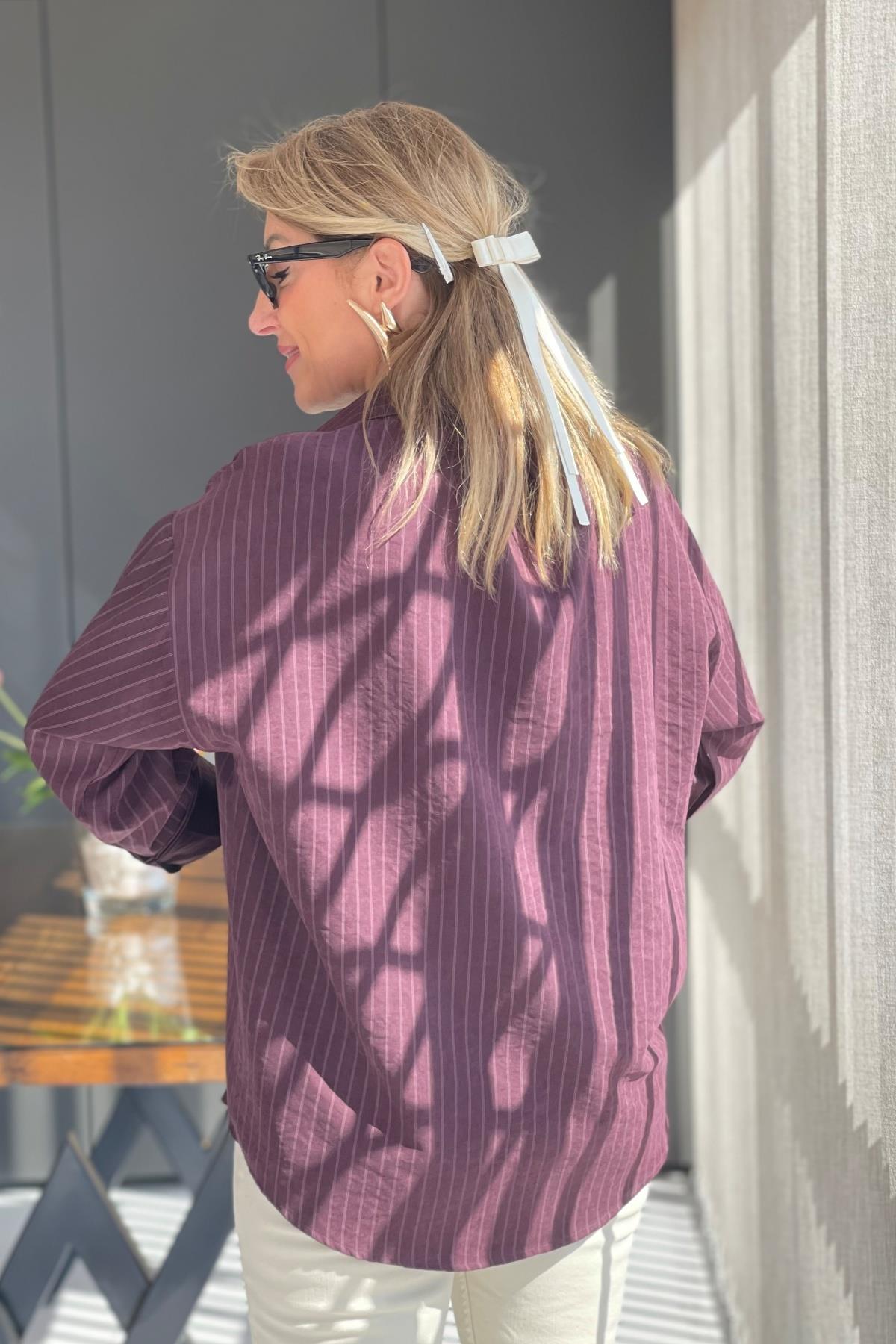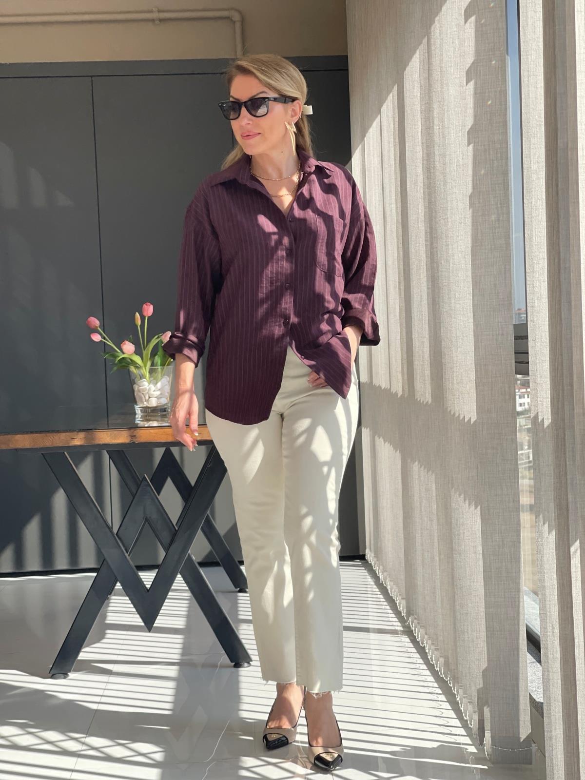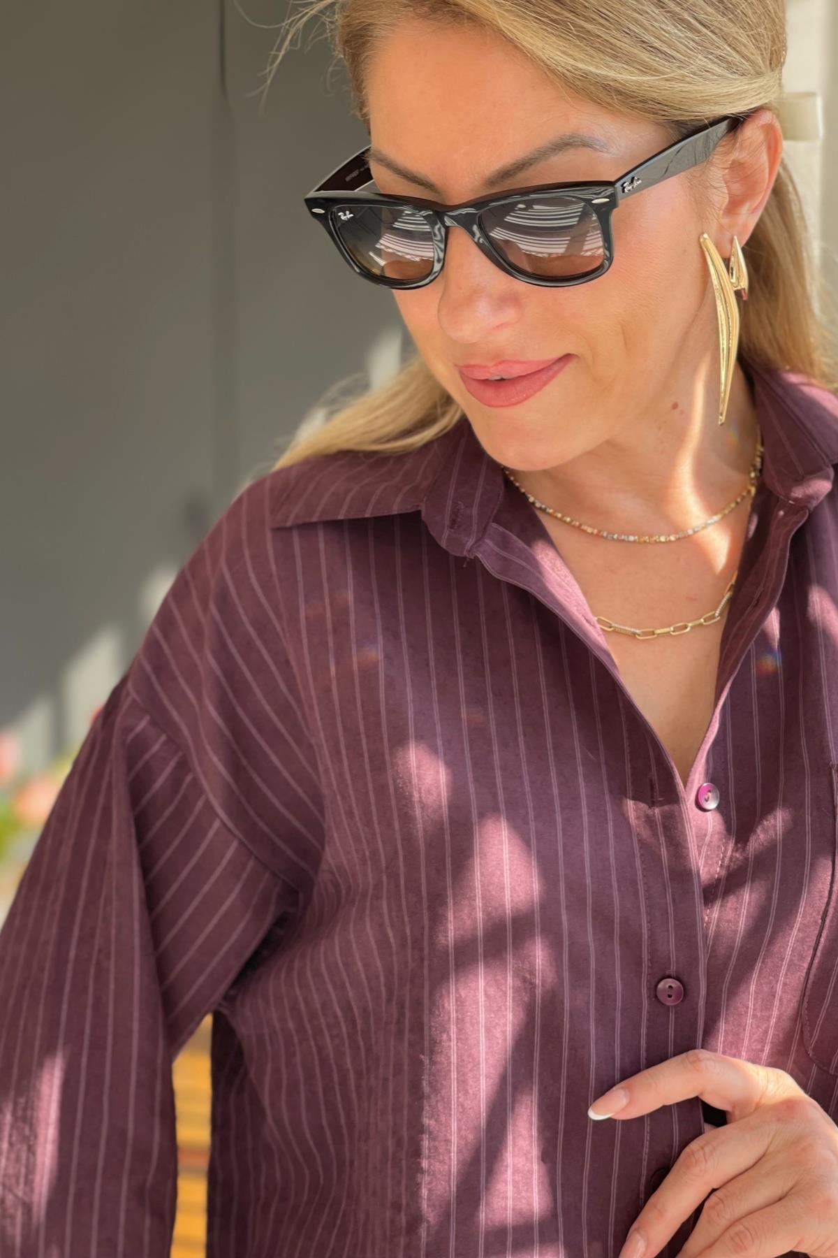 Çizgi Detay Bordo Gömlek (Mislina-1636)