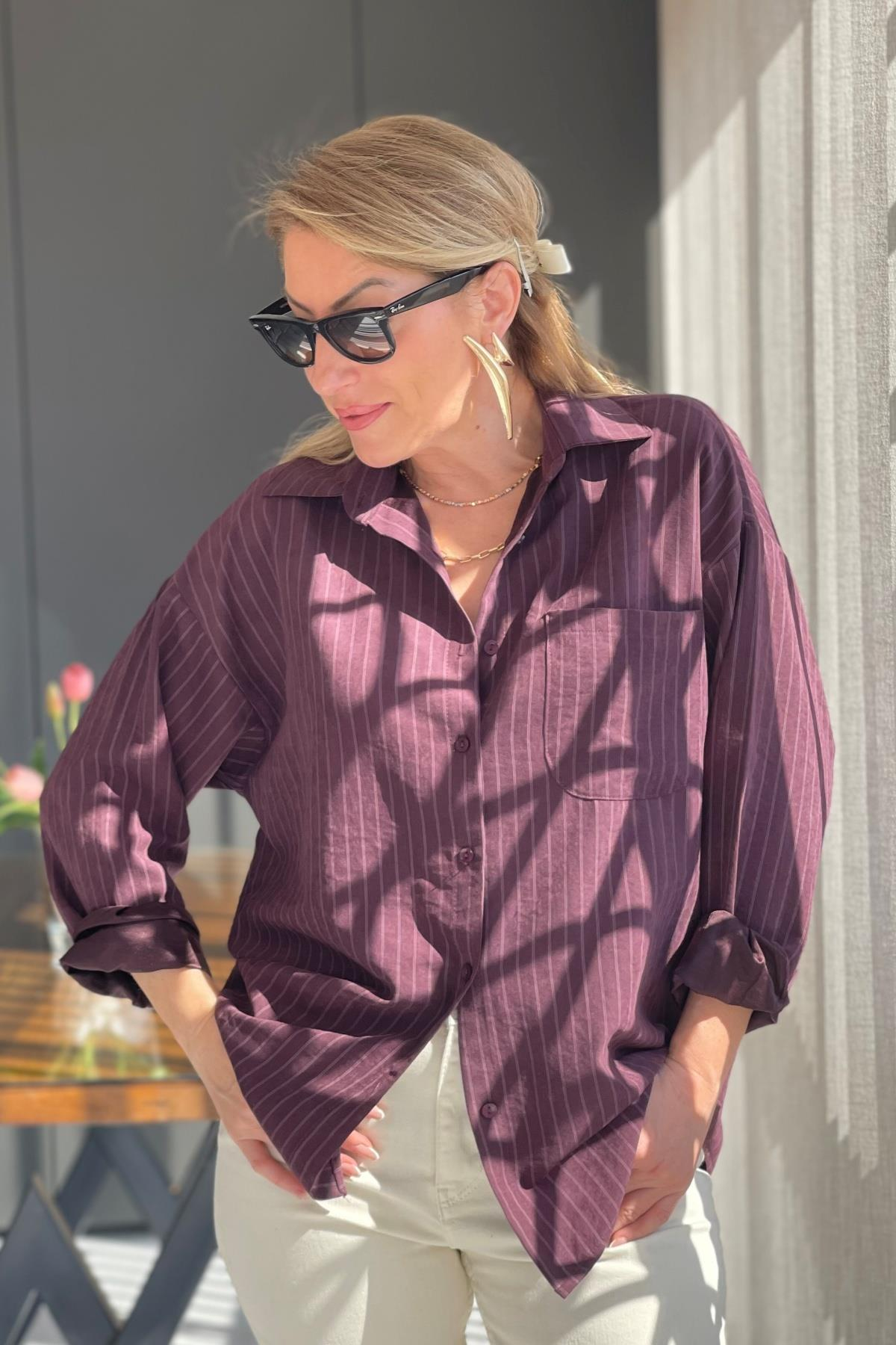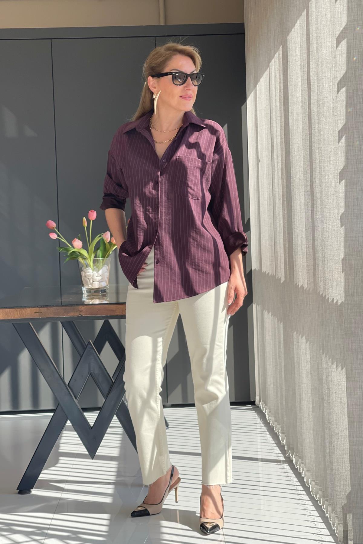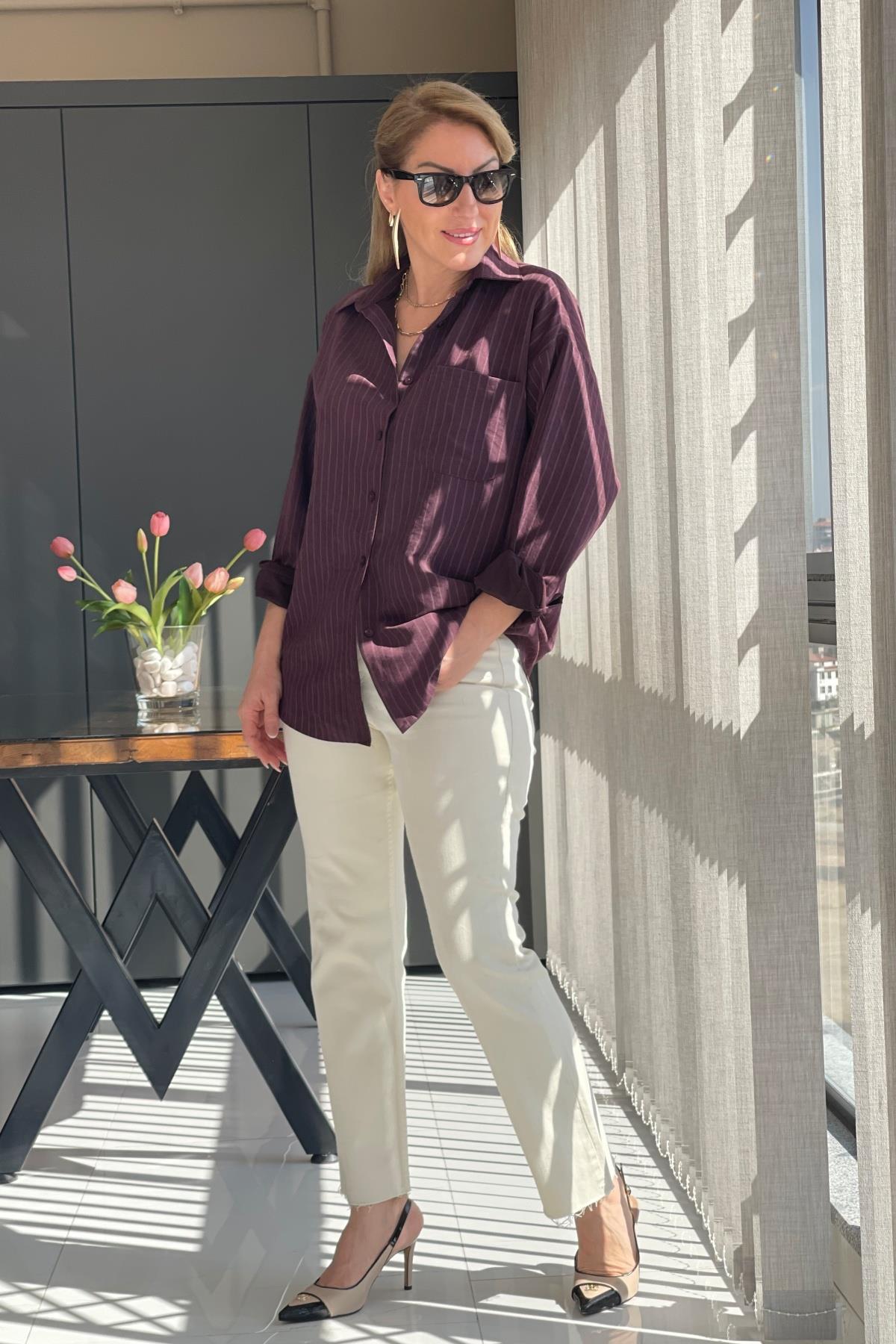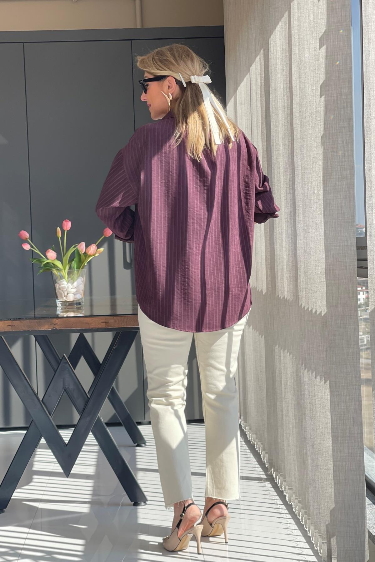 Çizgi Detay Bordo Gömlek (Mislina-1636)
