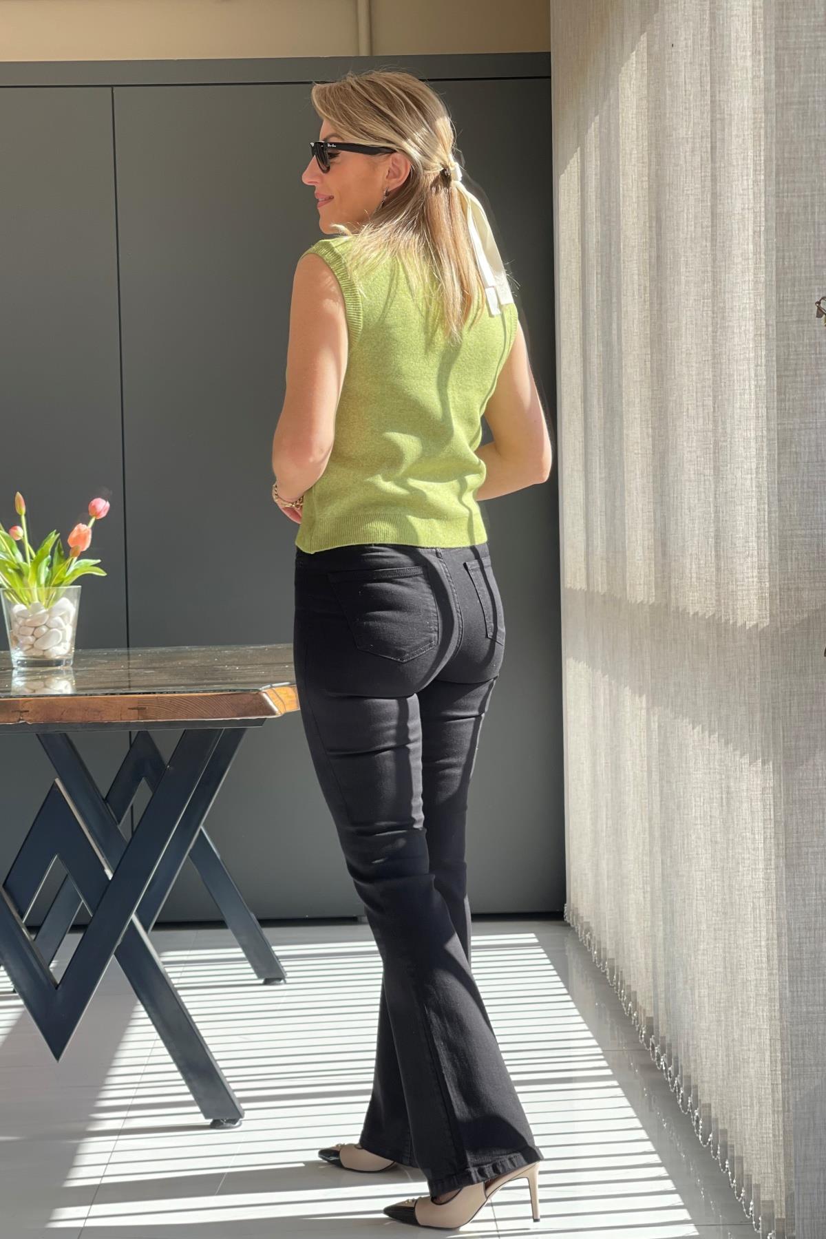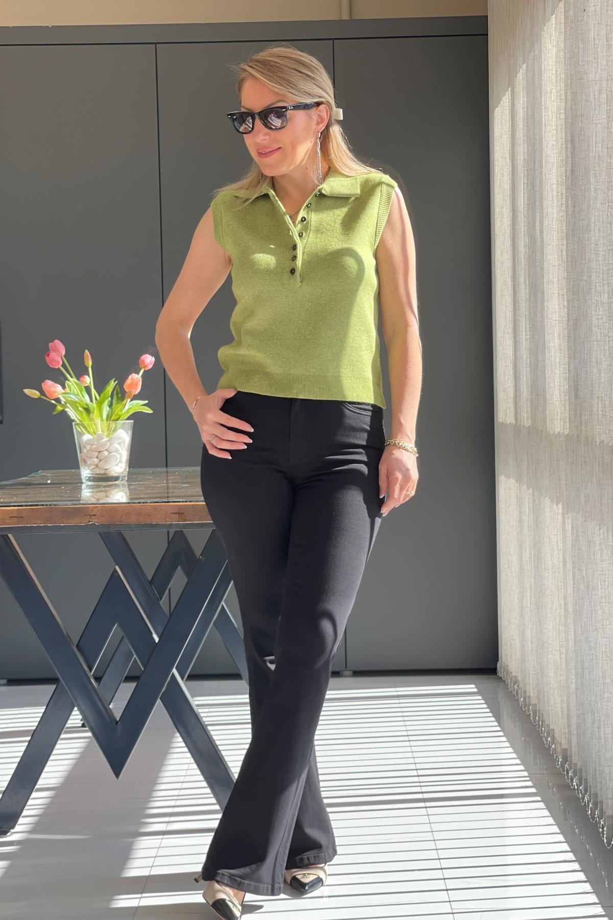 Düğme Detay Yeşil Kolsuz Kazak (Mislina-1574)