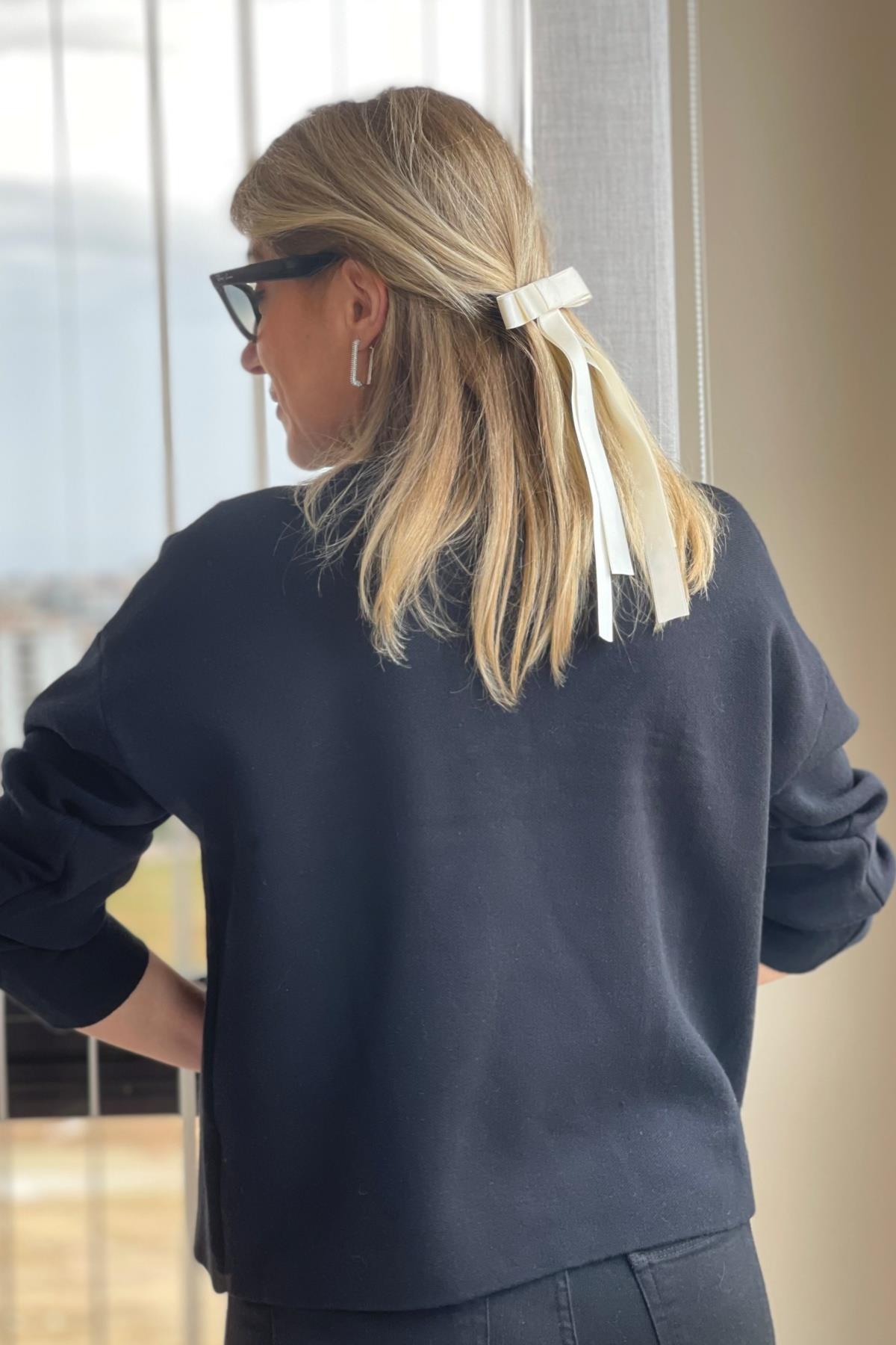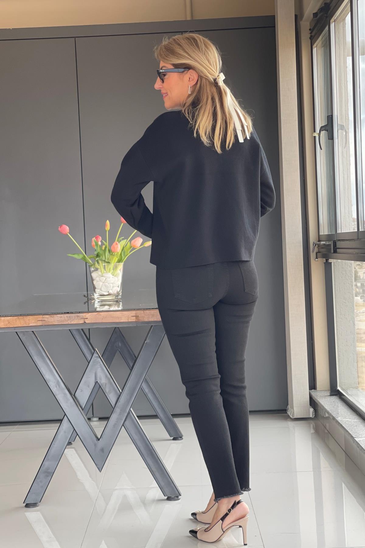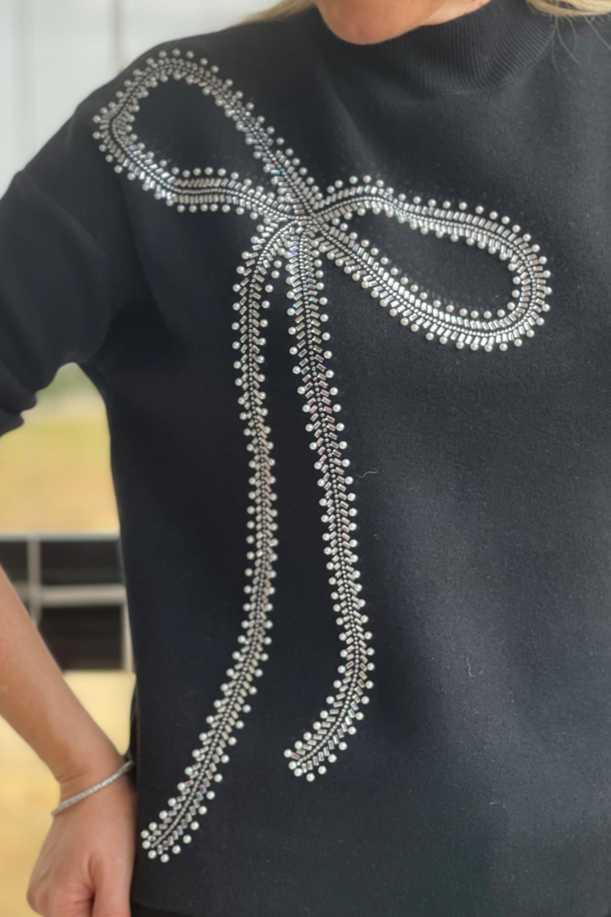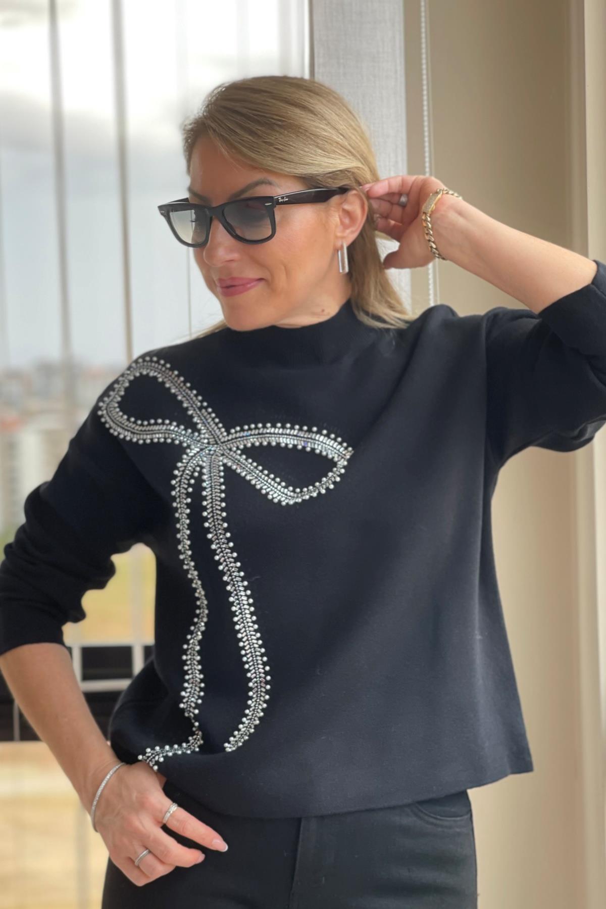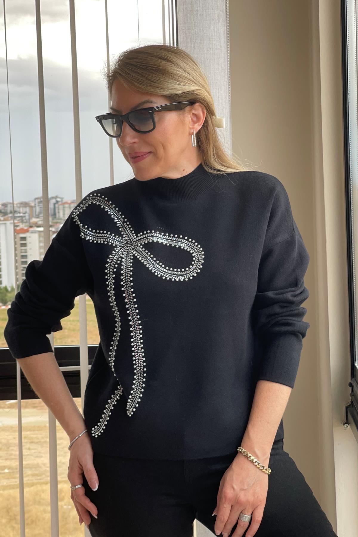Fiyonk Taş Detay Siyah Kazak (Mislina-1607)