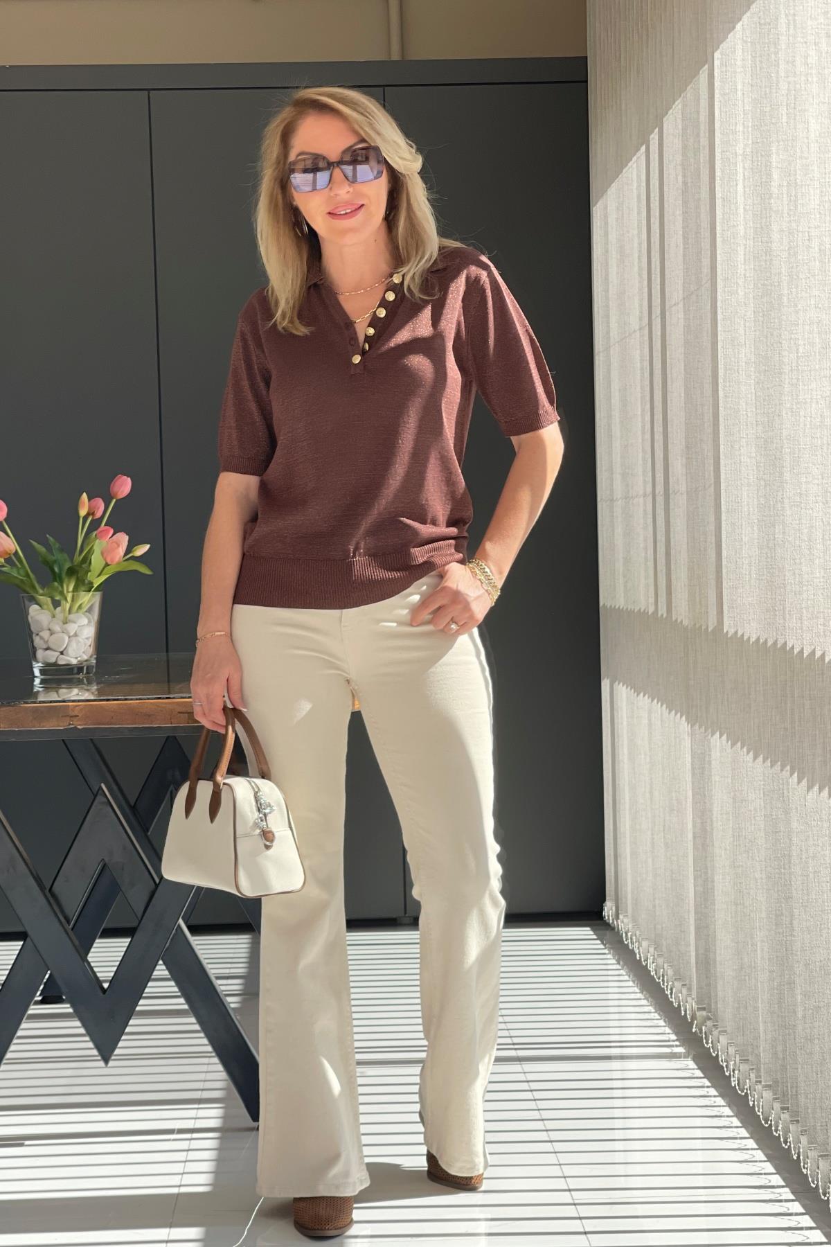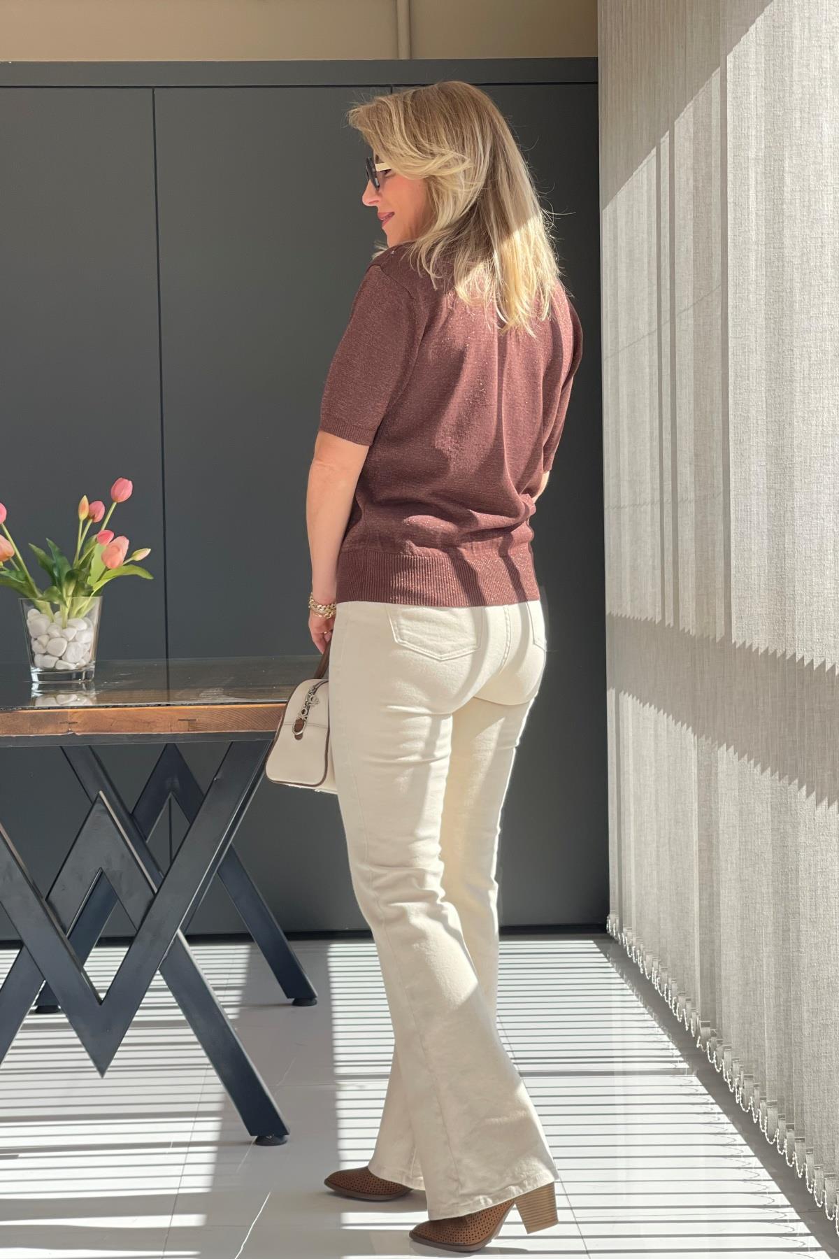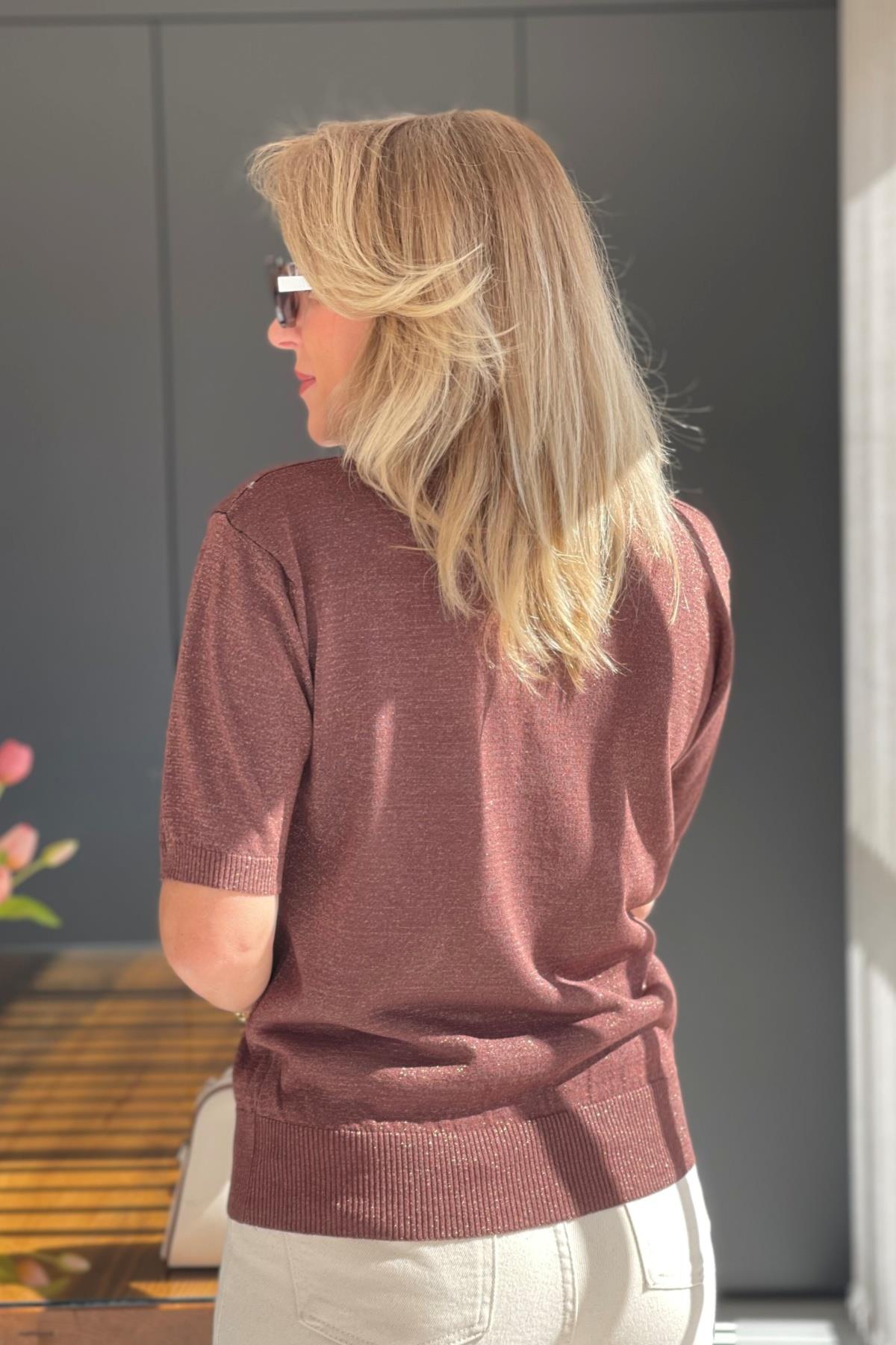 Gold Sim Yaka Detay Kahve Bluz (Mislina-1561)