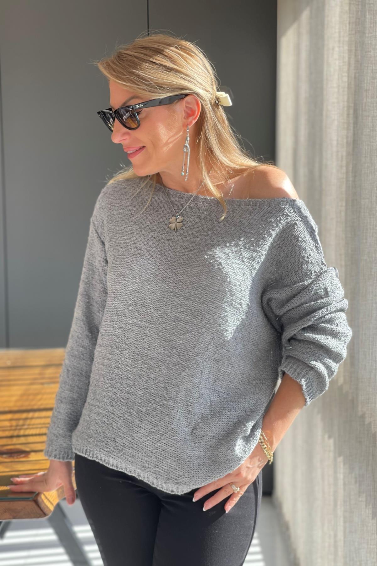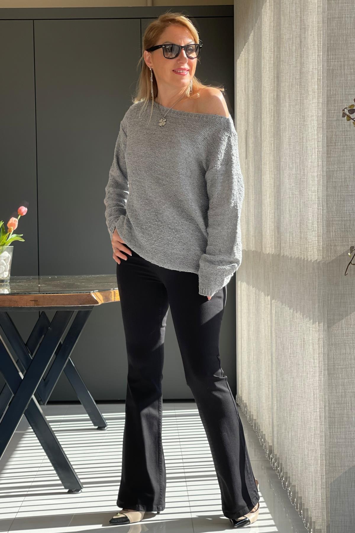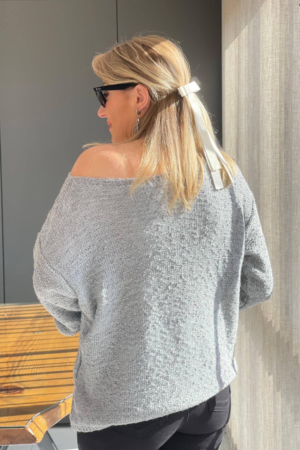 Gri Oversize Buklet Kazak (Mislina-1572)