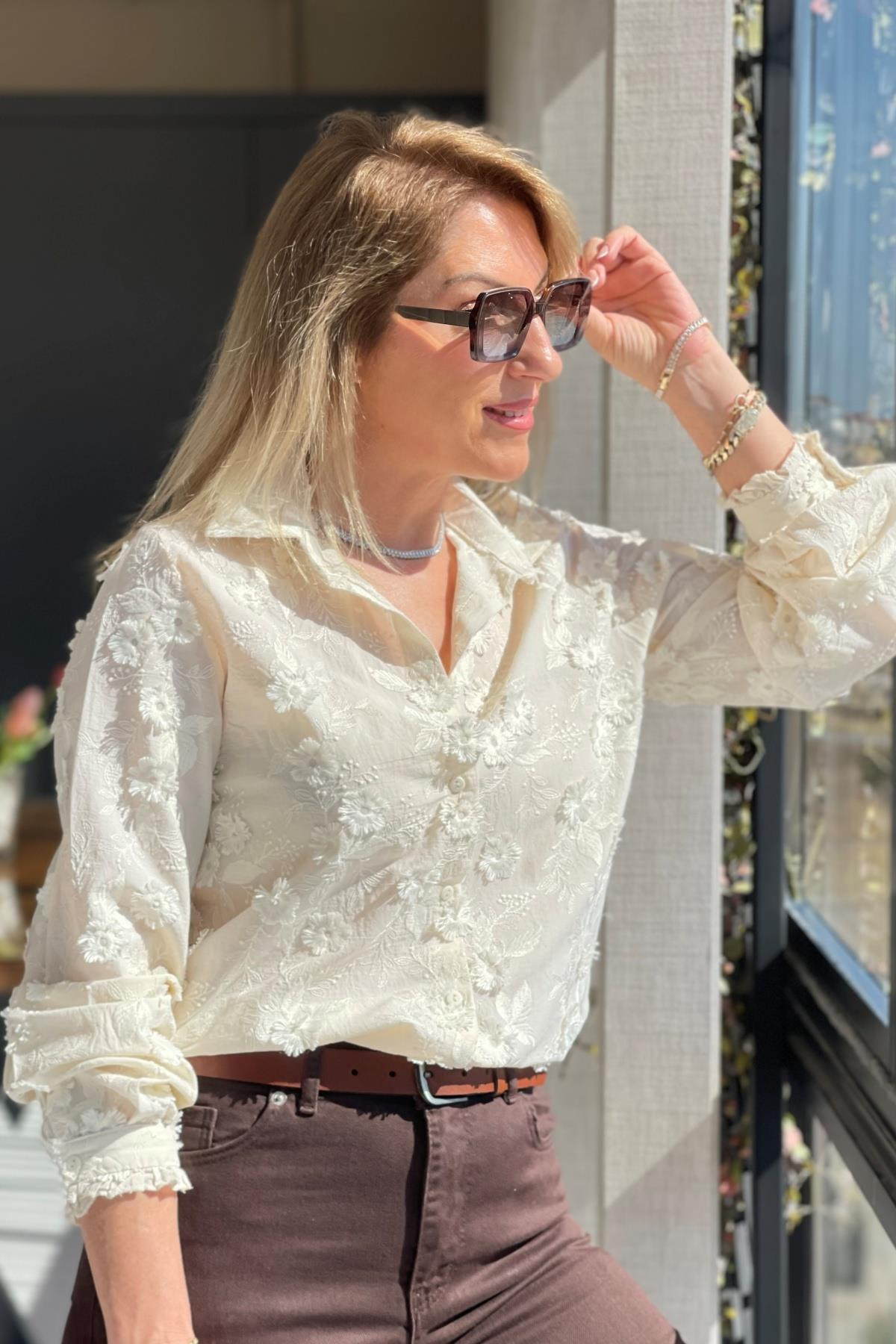 Manken üzerinde S beden kullanmıştır.