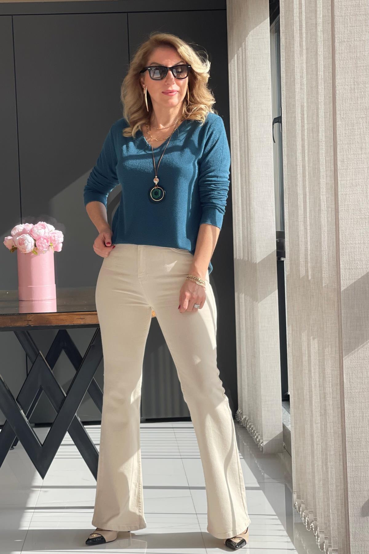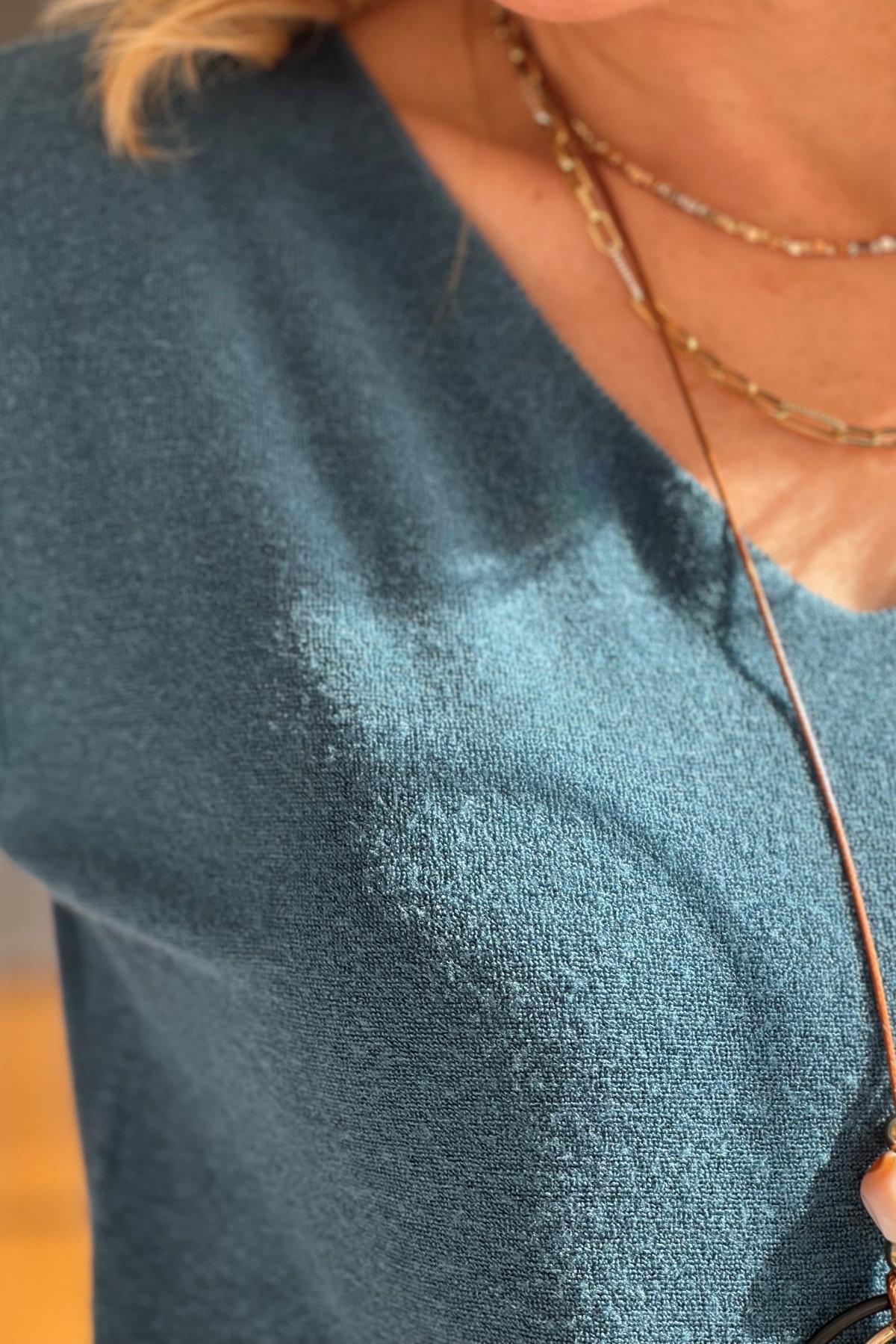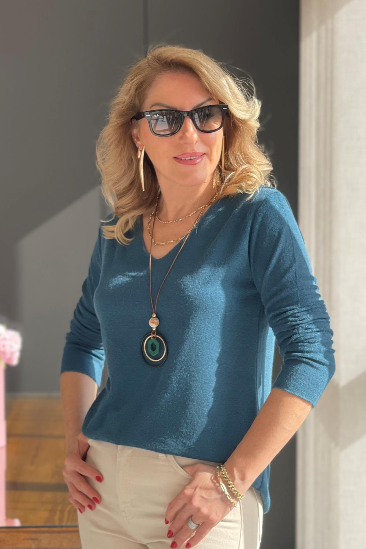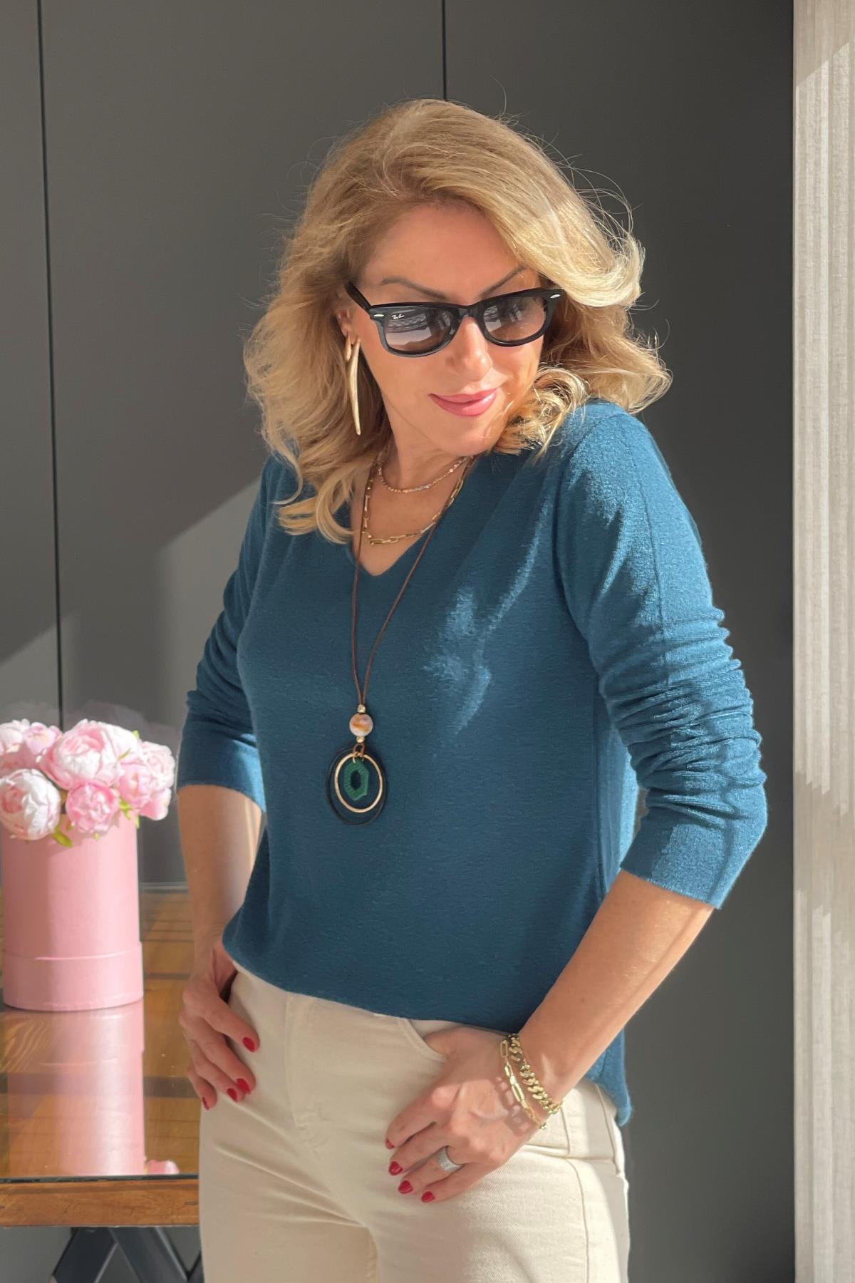 Kolye Detay Angora Petrol Mavisi Bluz (Mislina-1650)