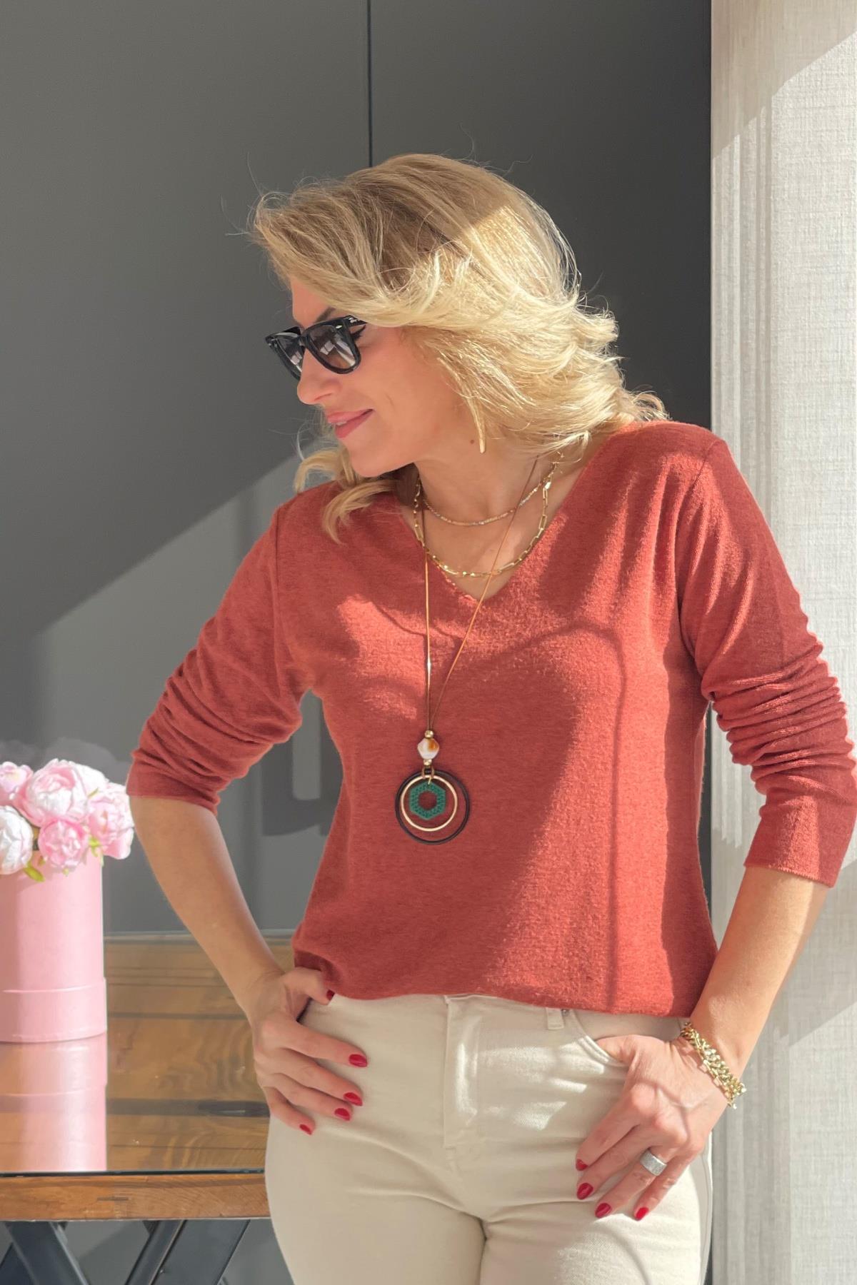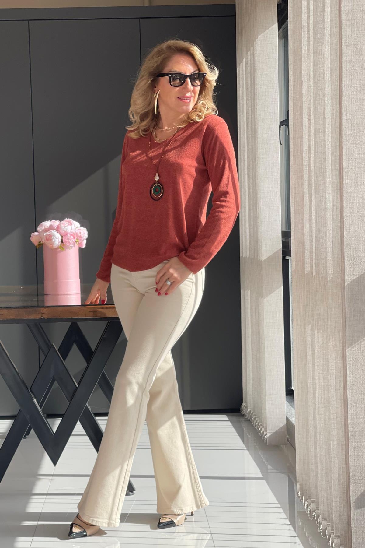 Kolye Detay Angora Tarçın Bluz (Mislina-1650)