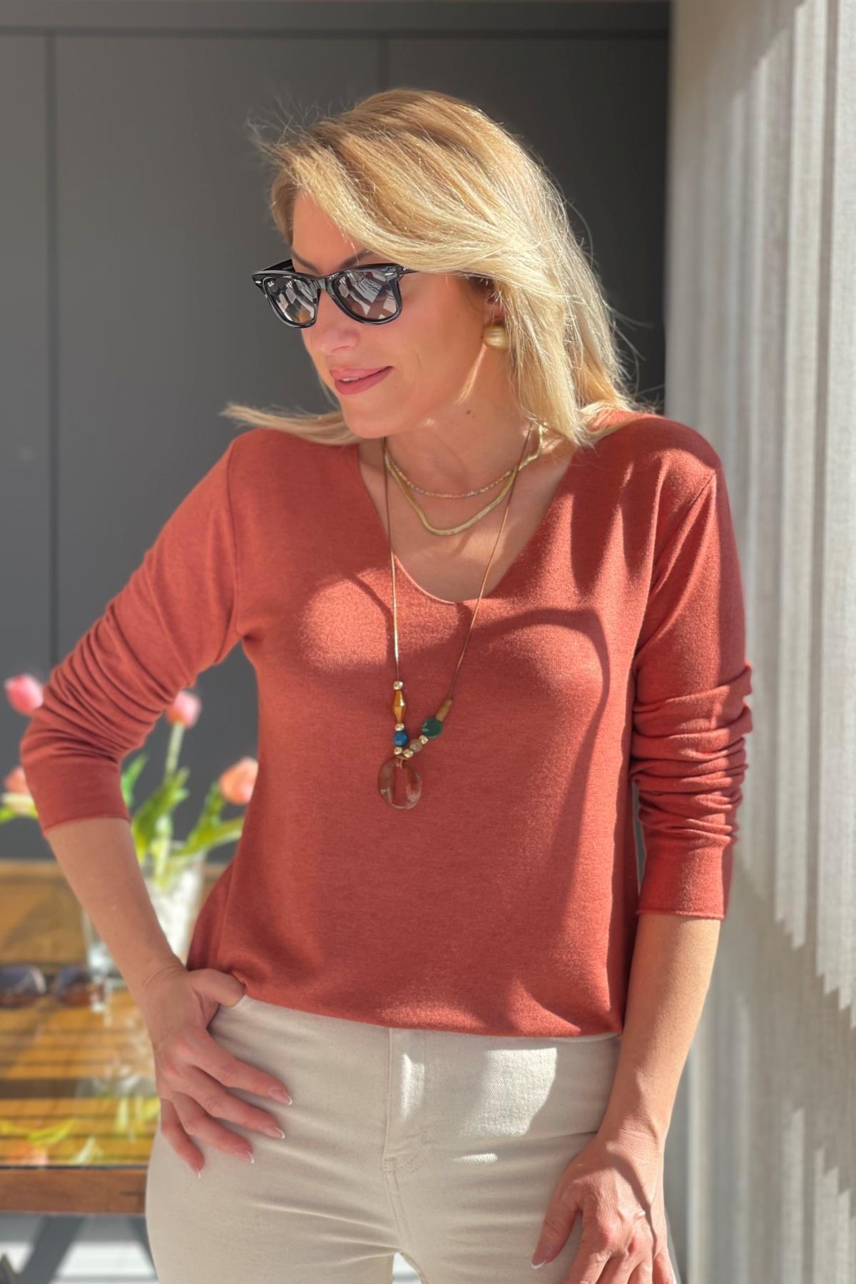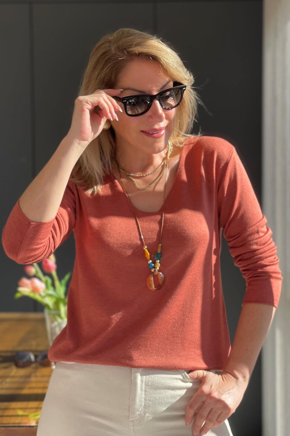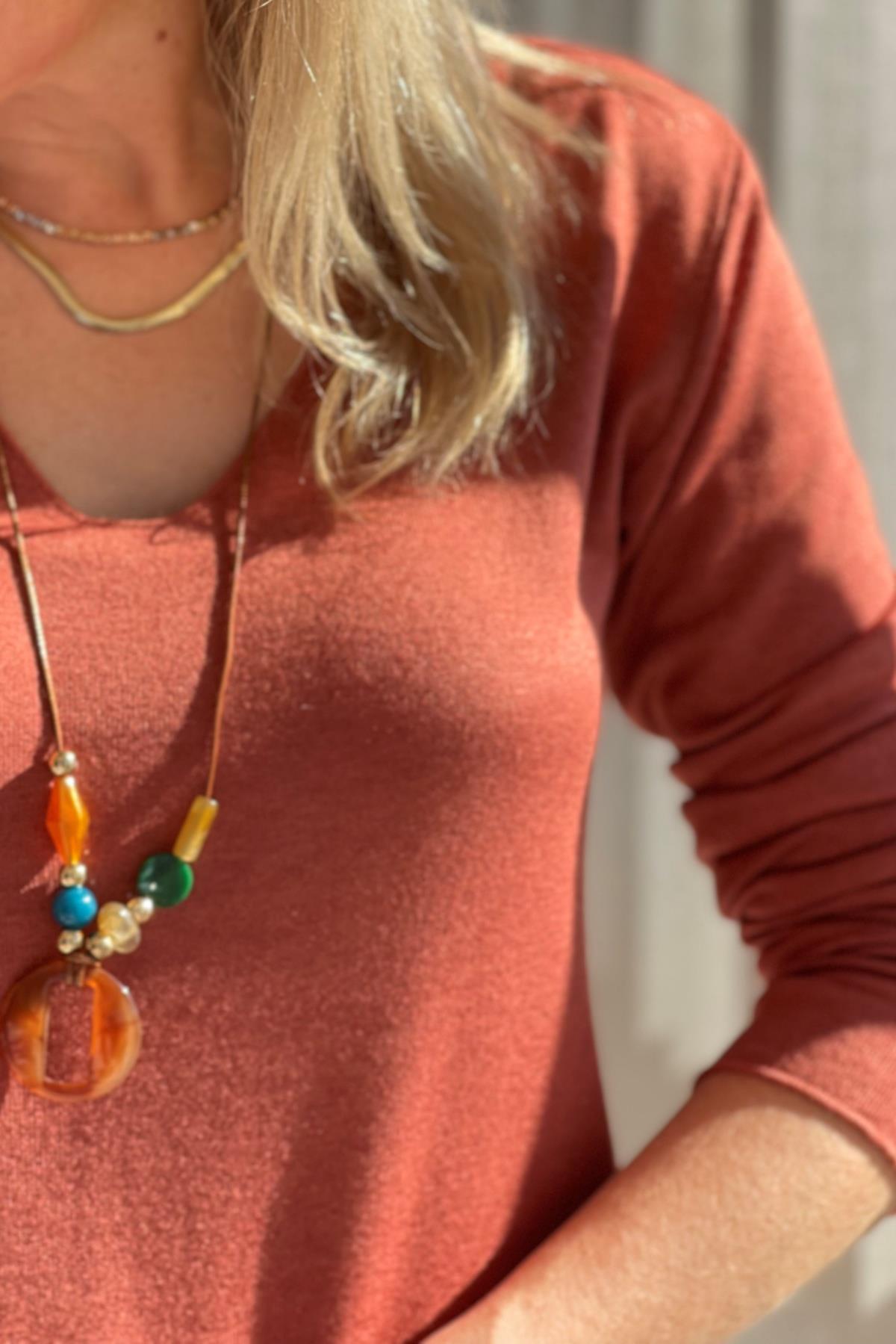 Kolye Detay Kiremit Bluz (Mislina-1623)
