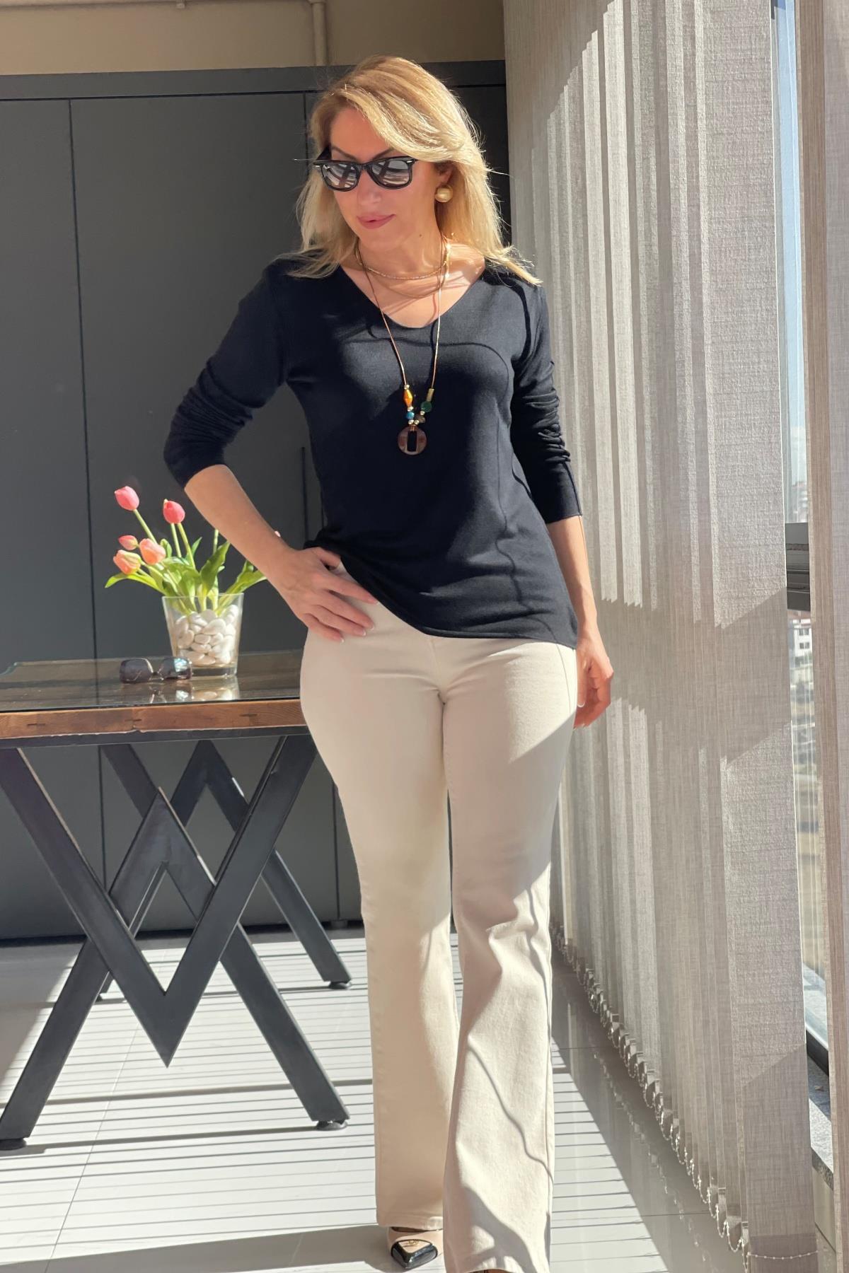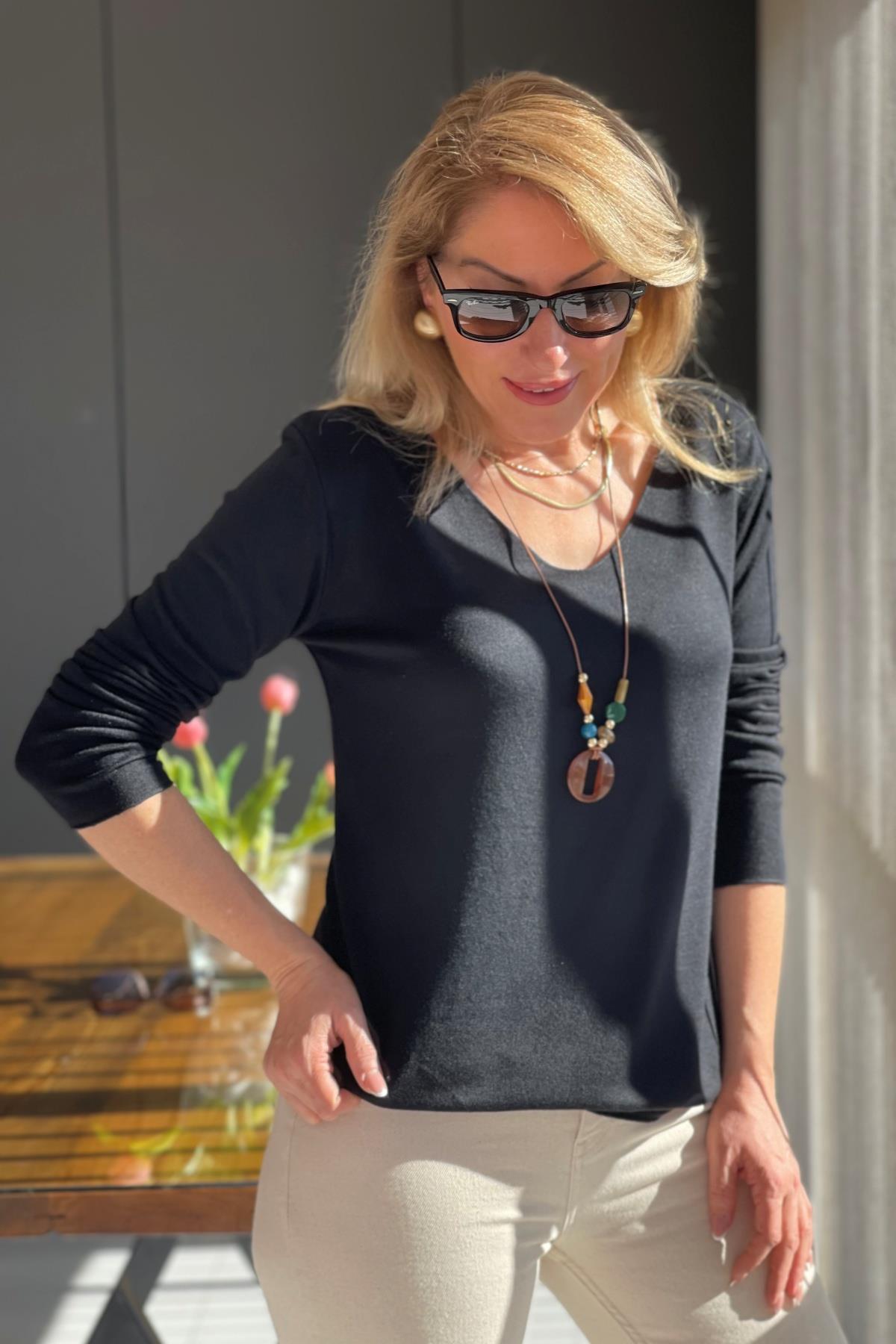 Kolye Detay Siyah Bluz (Mislina-1623)