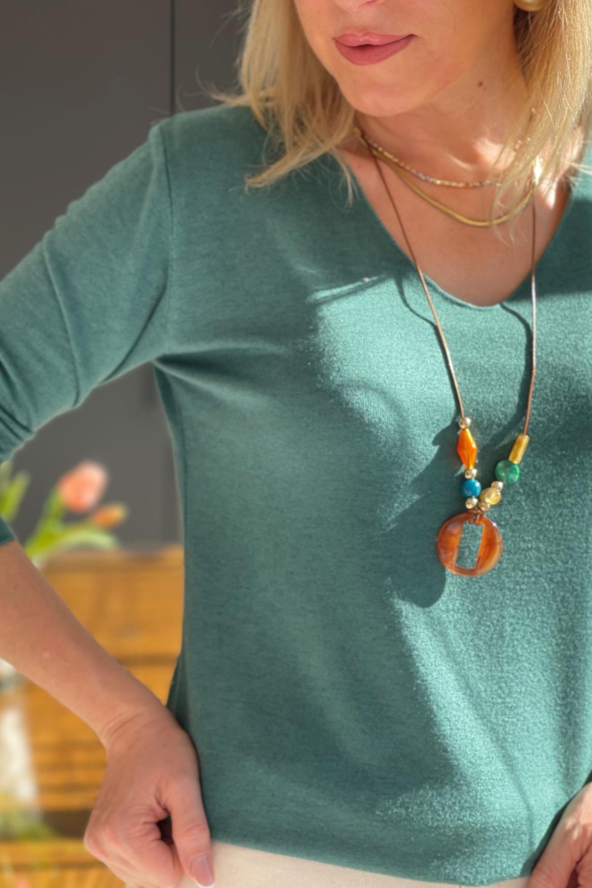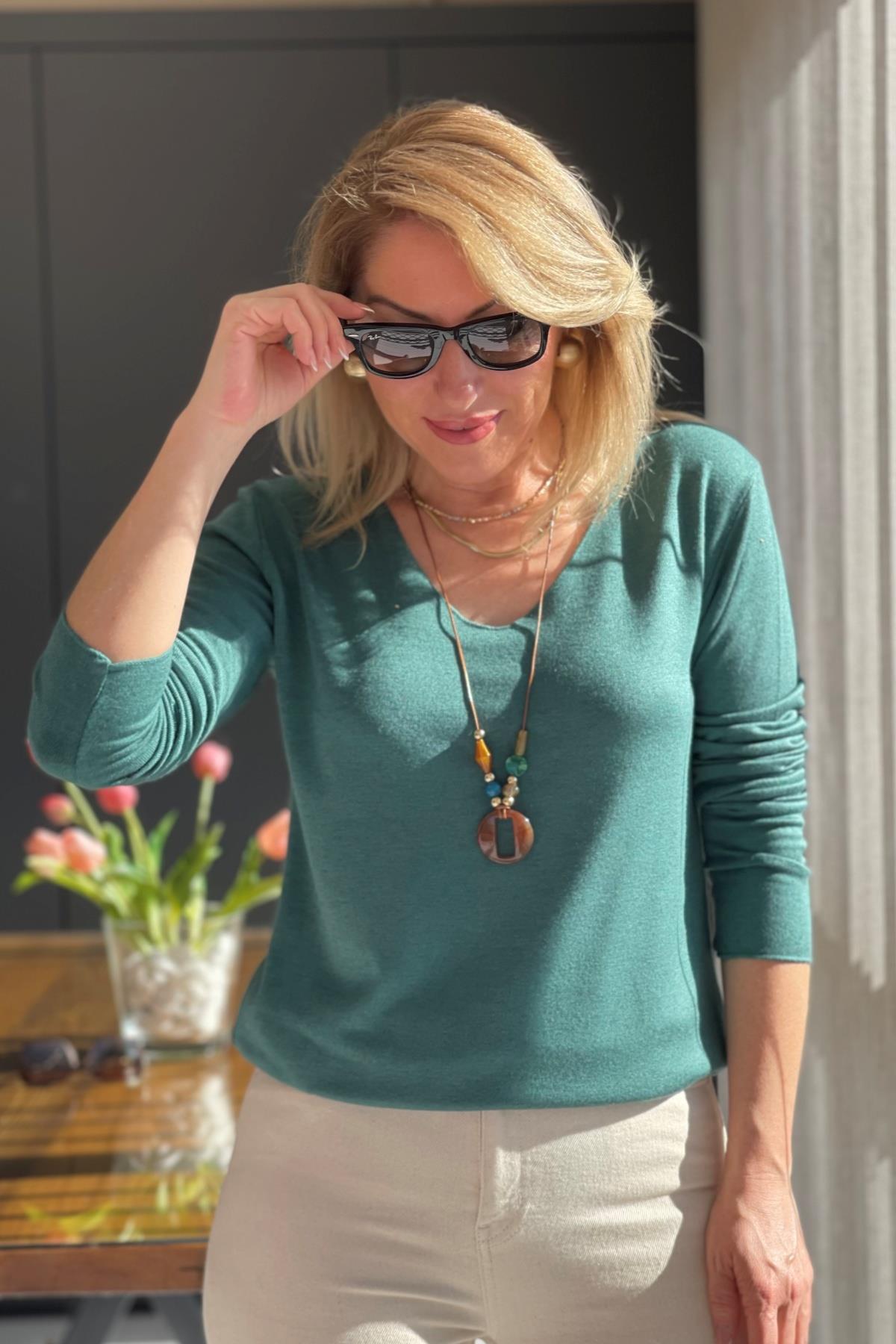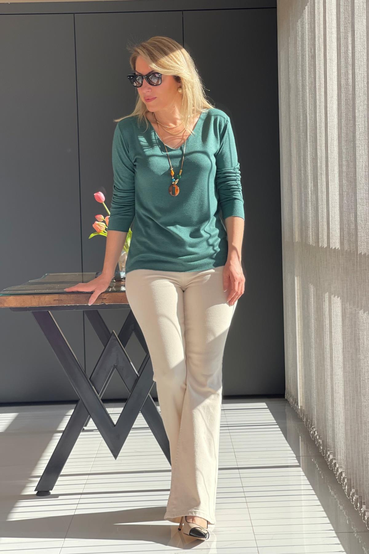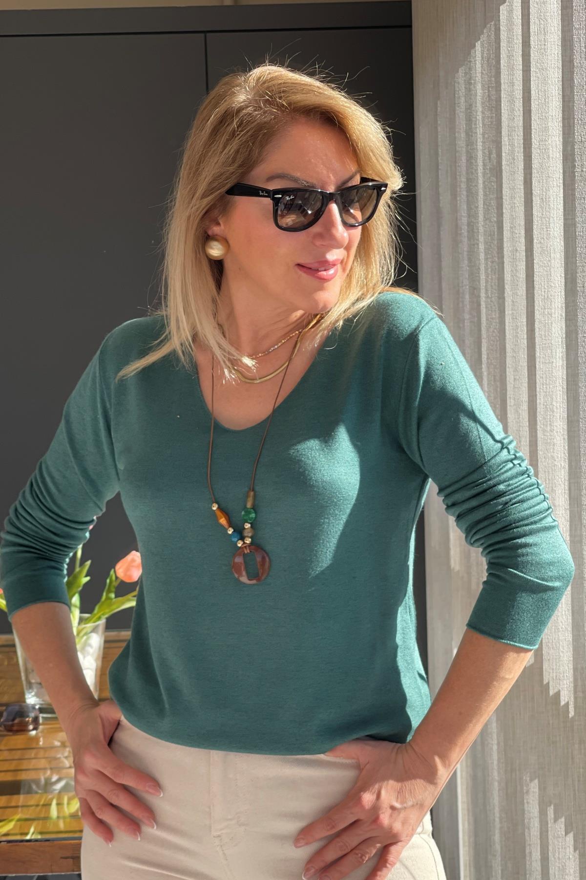 Kolye Detay Zümrüt Bluz (Mislina-1623)