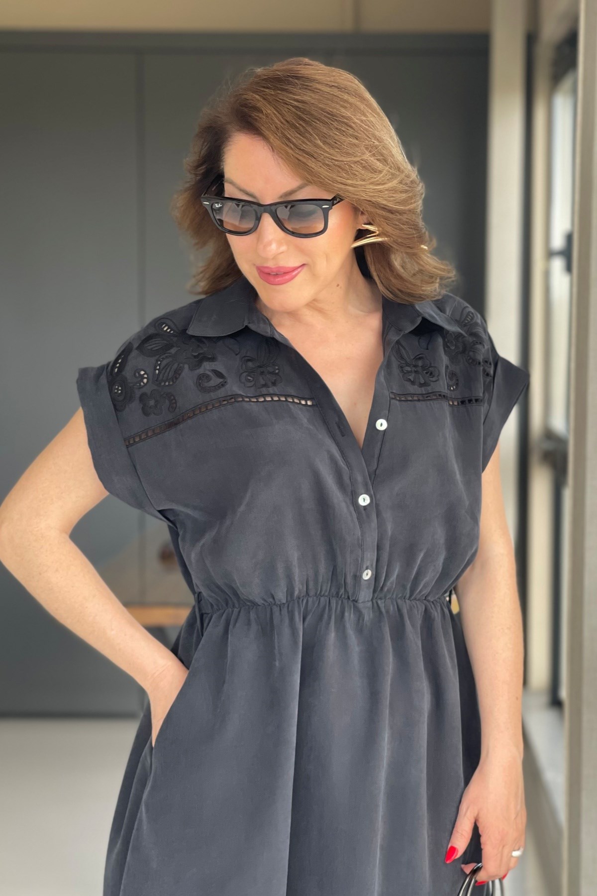 Manken üzerinde S beden kullanmıştır.