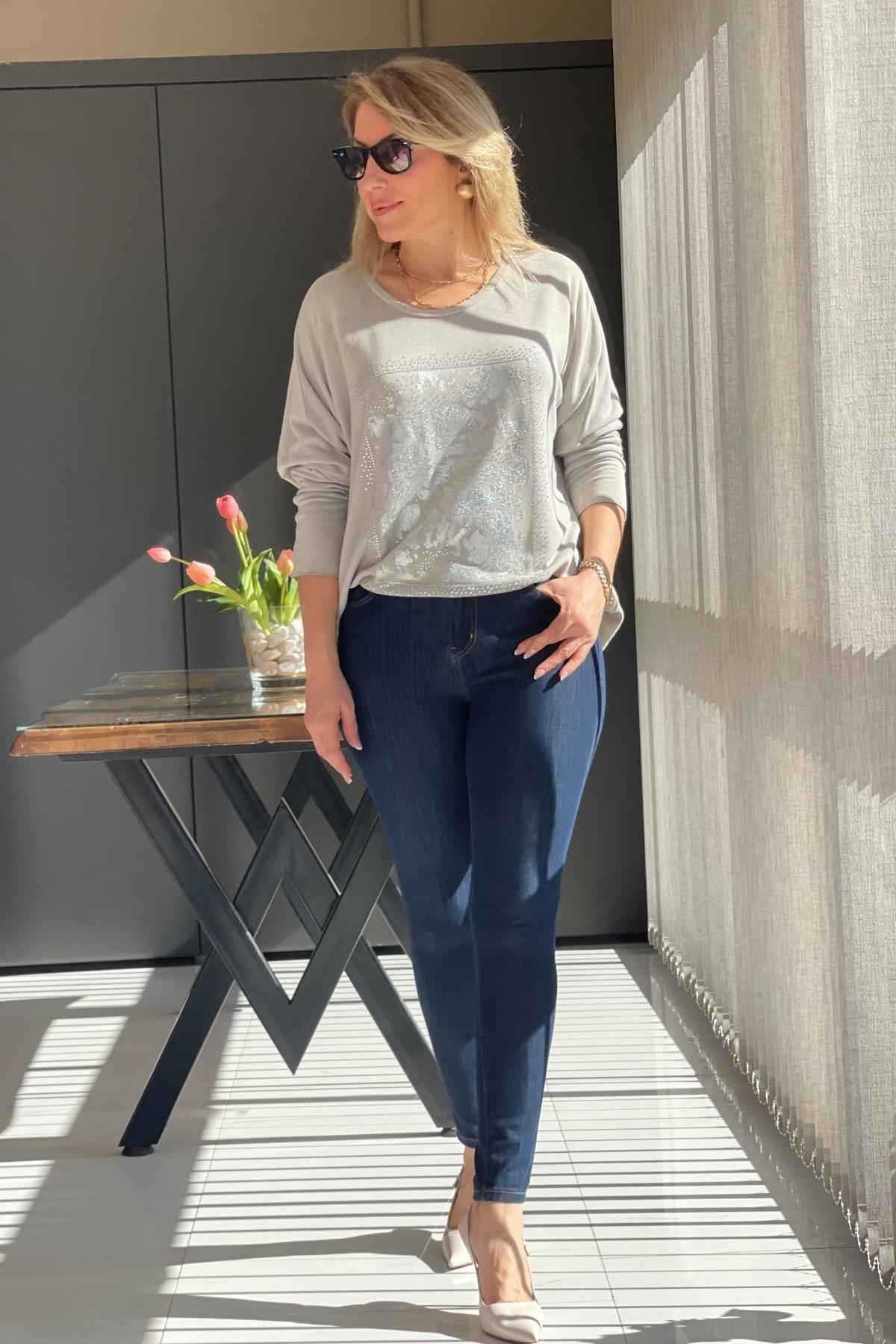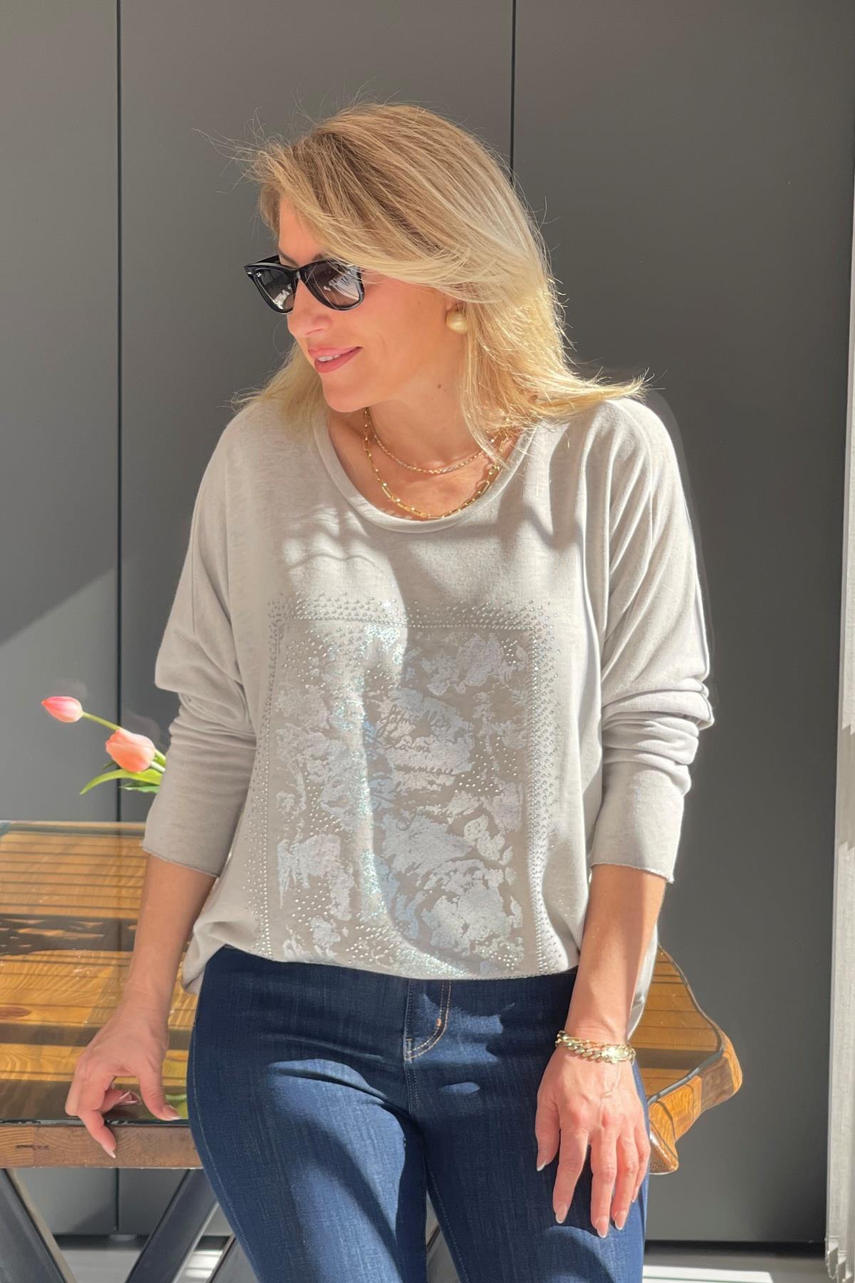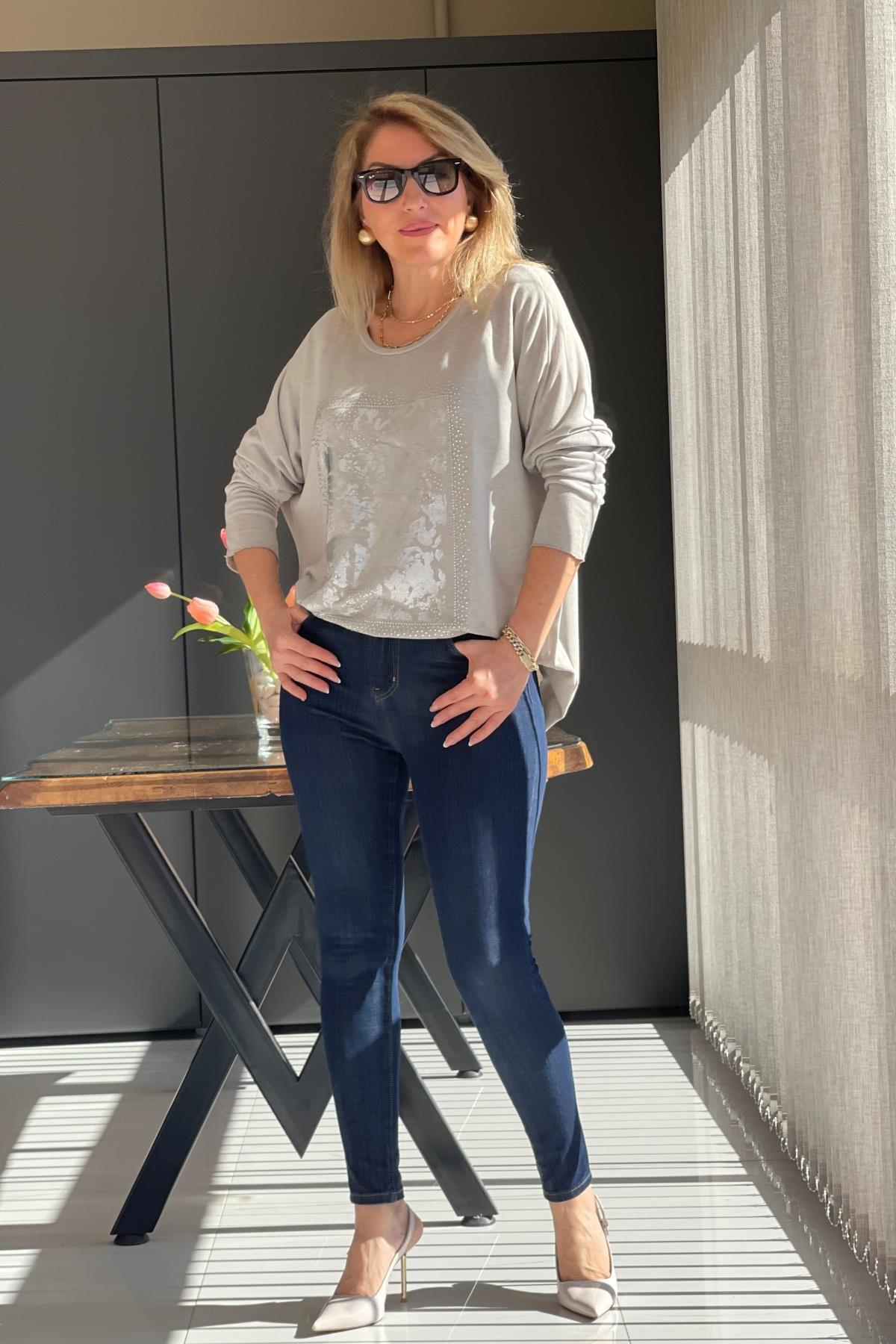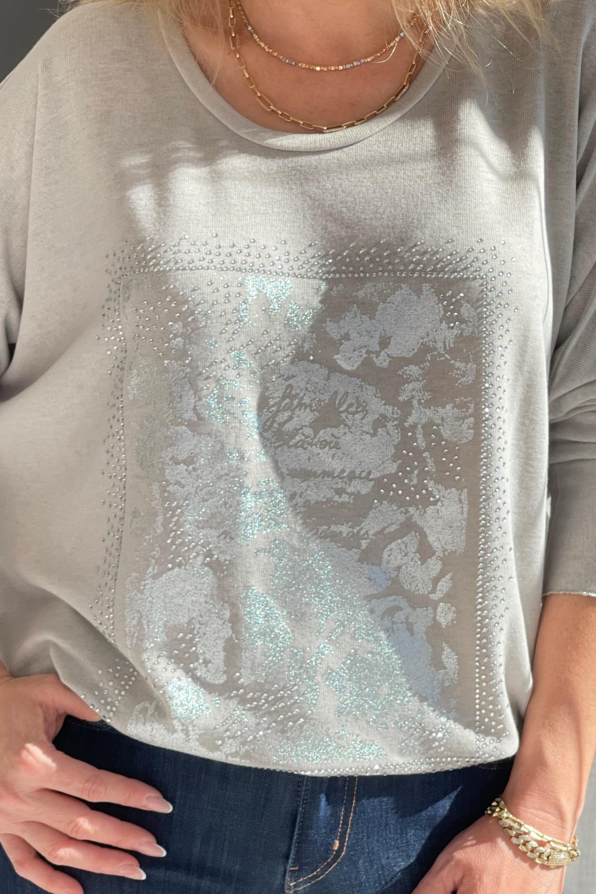 Lak Baskı Taş Detay Haki Bluz Lak Baskı Taş Detay Gri Bluz