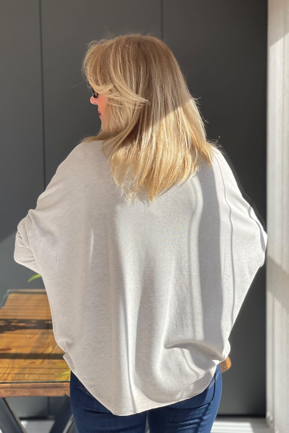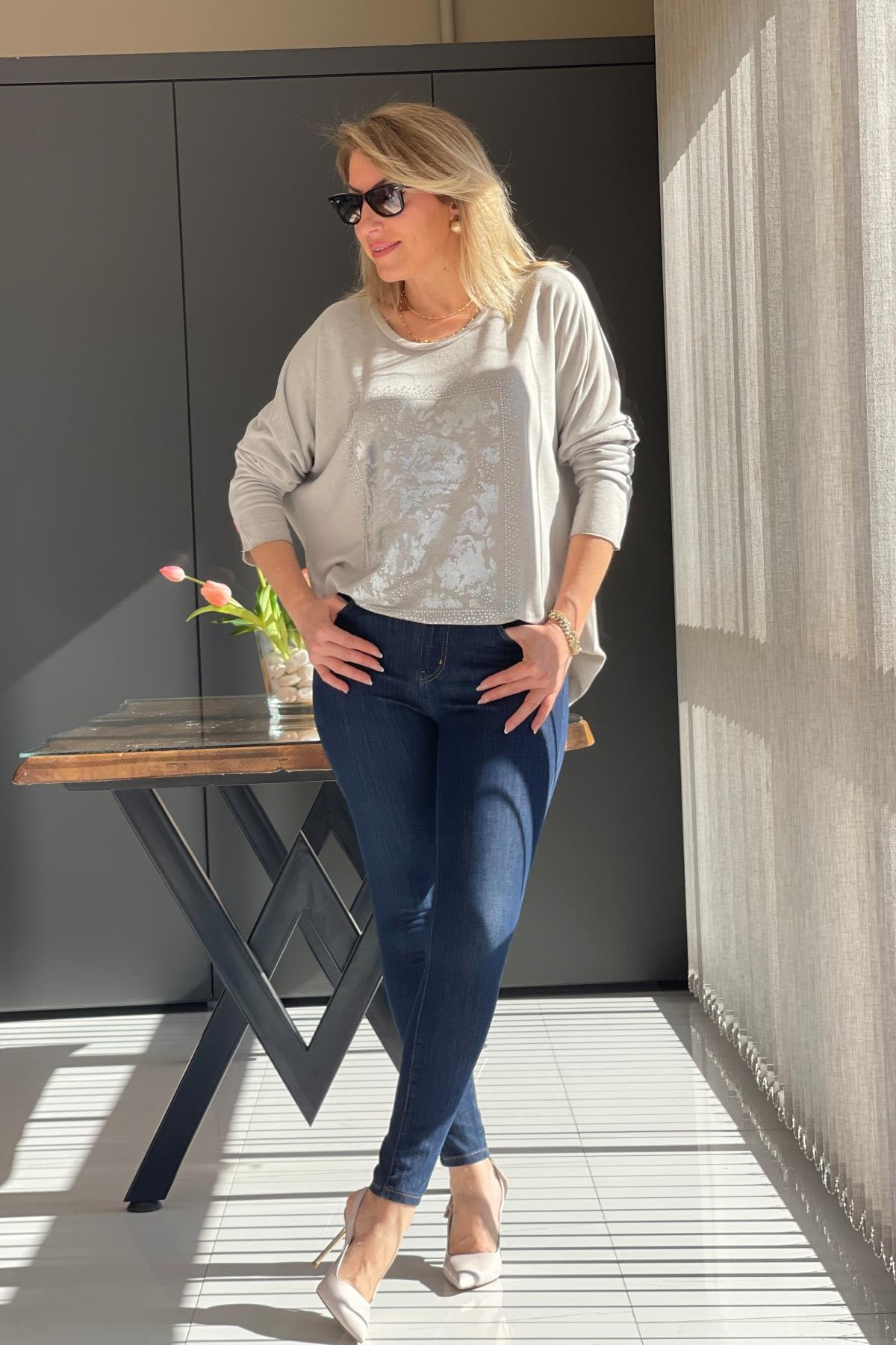 Lak Baskı Taş Detay Bej Bluz (Mislina-1631)
