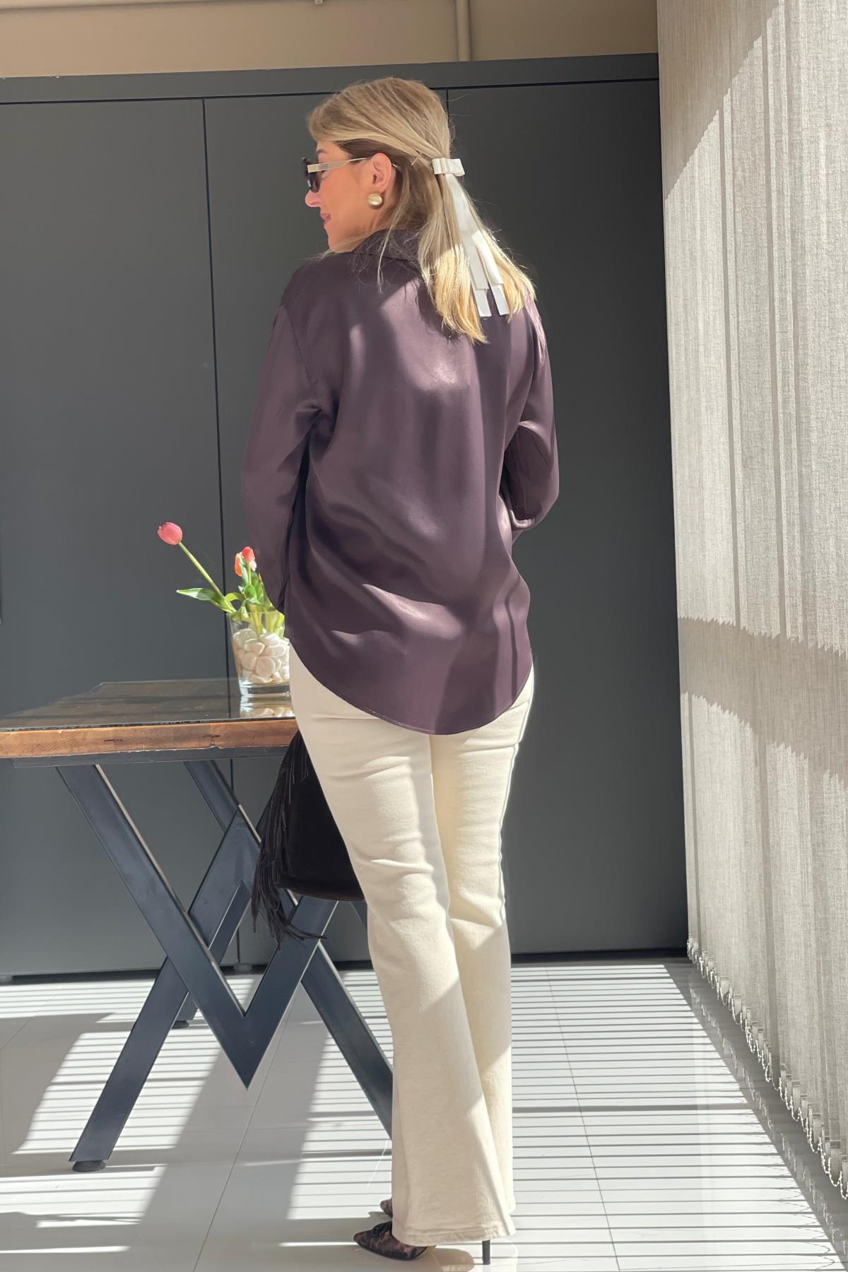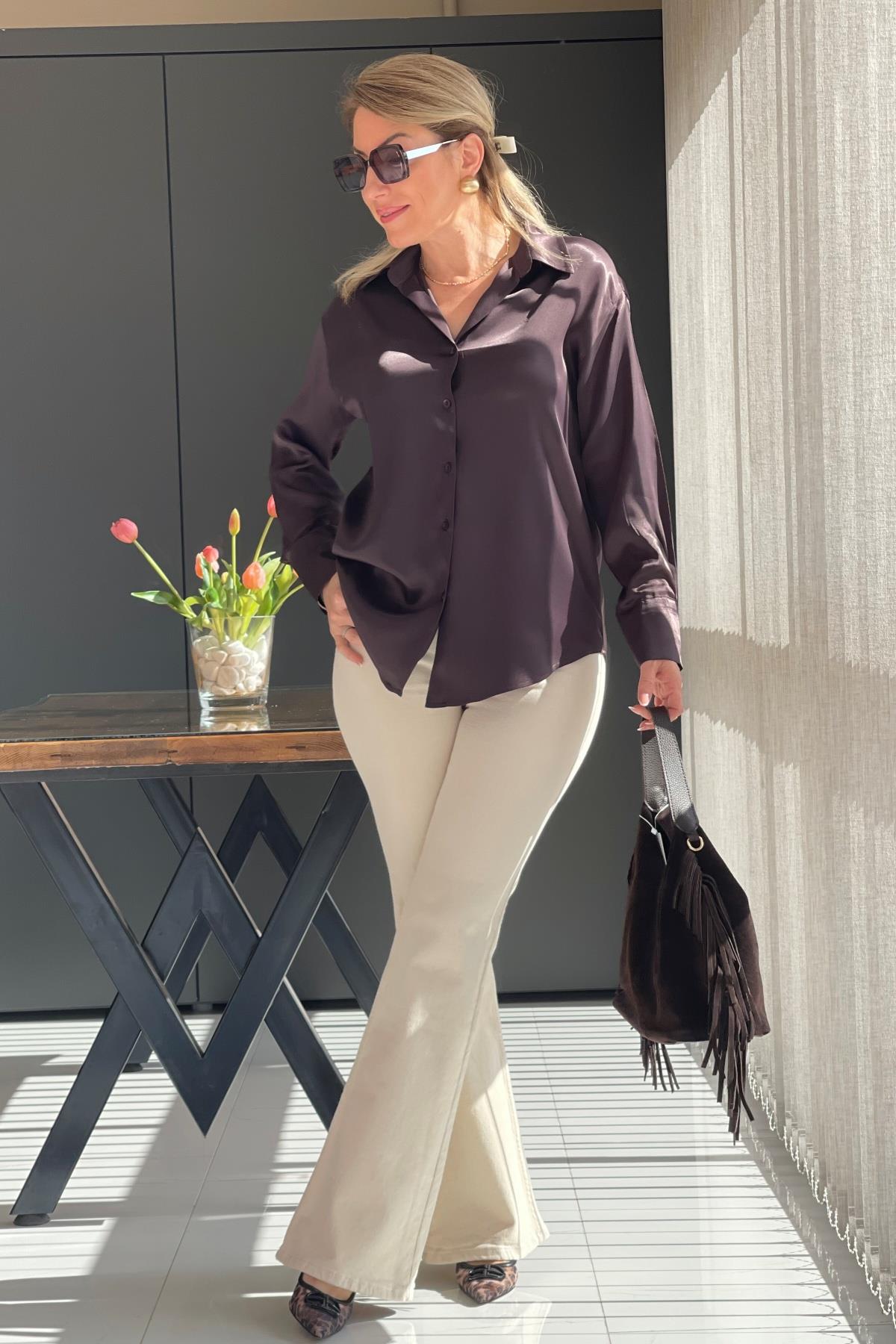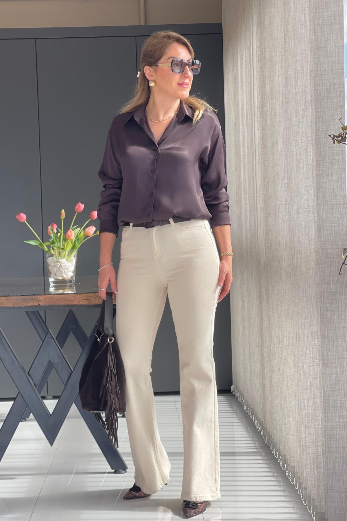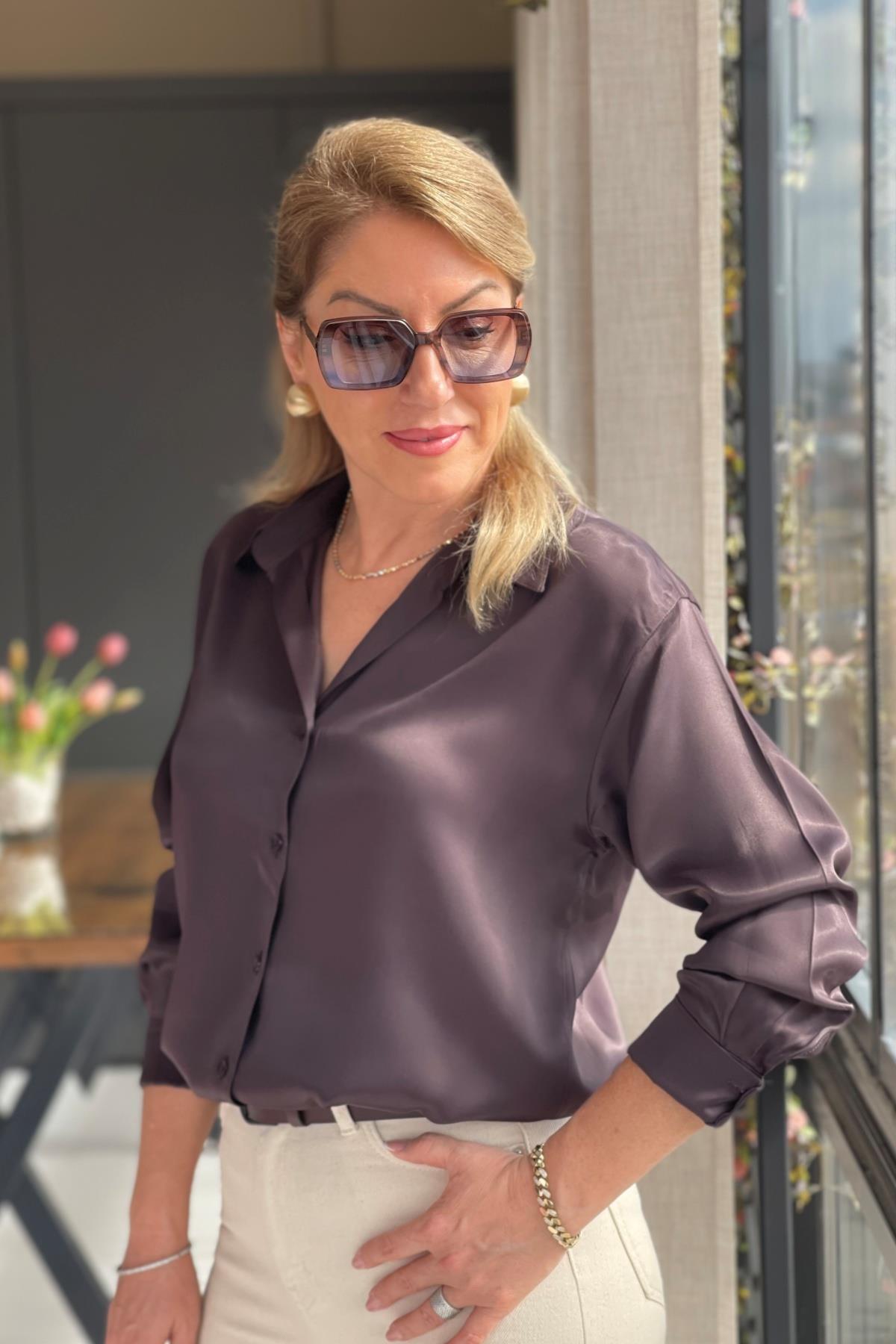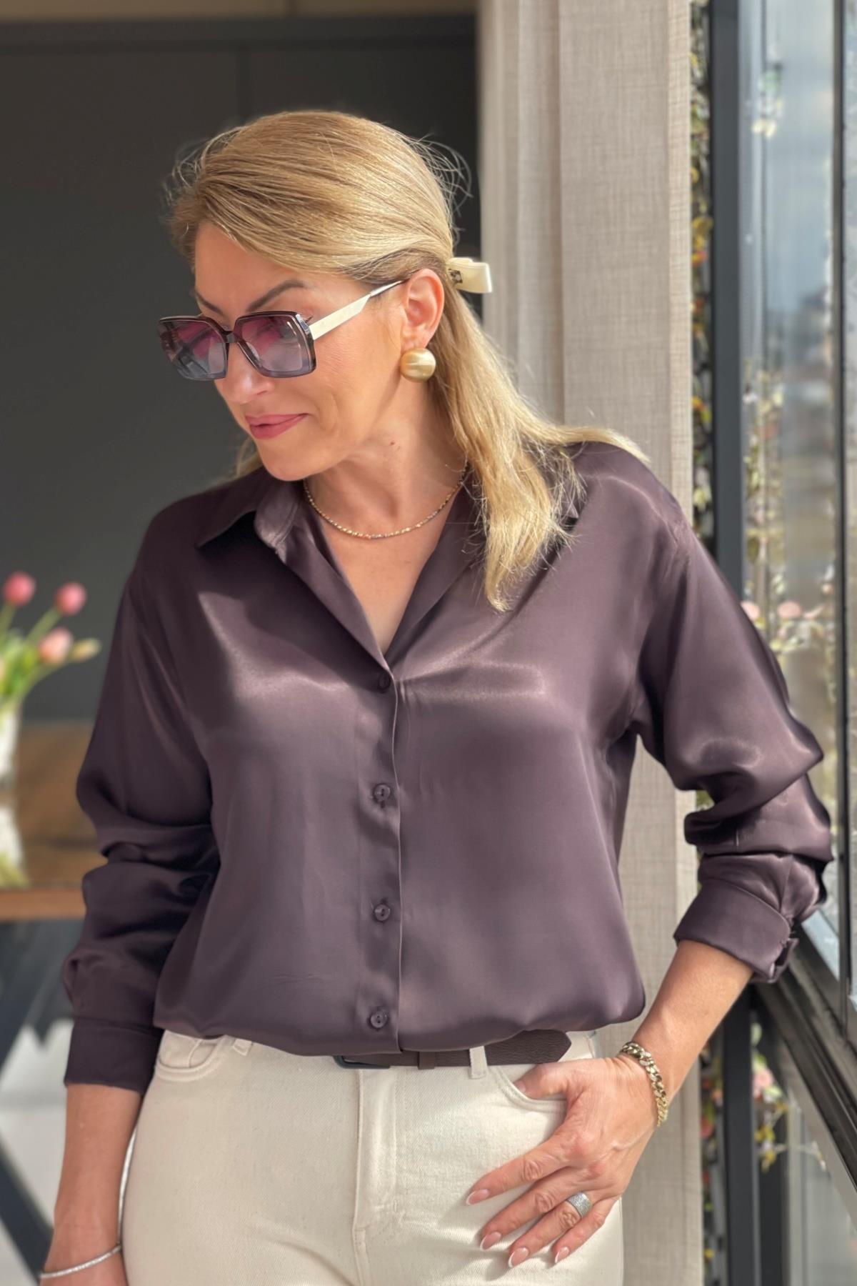 Manşet Kol Acı Kahve Gömlek (Mislina-1605)