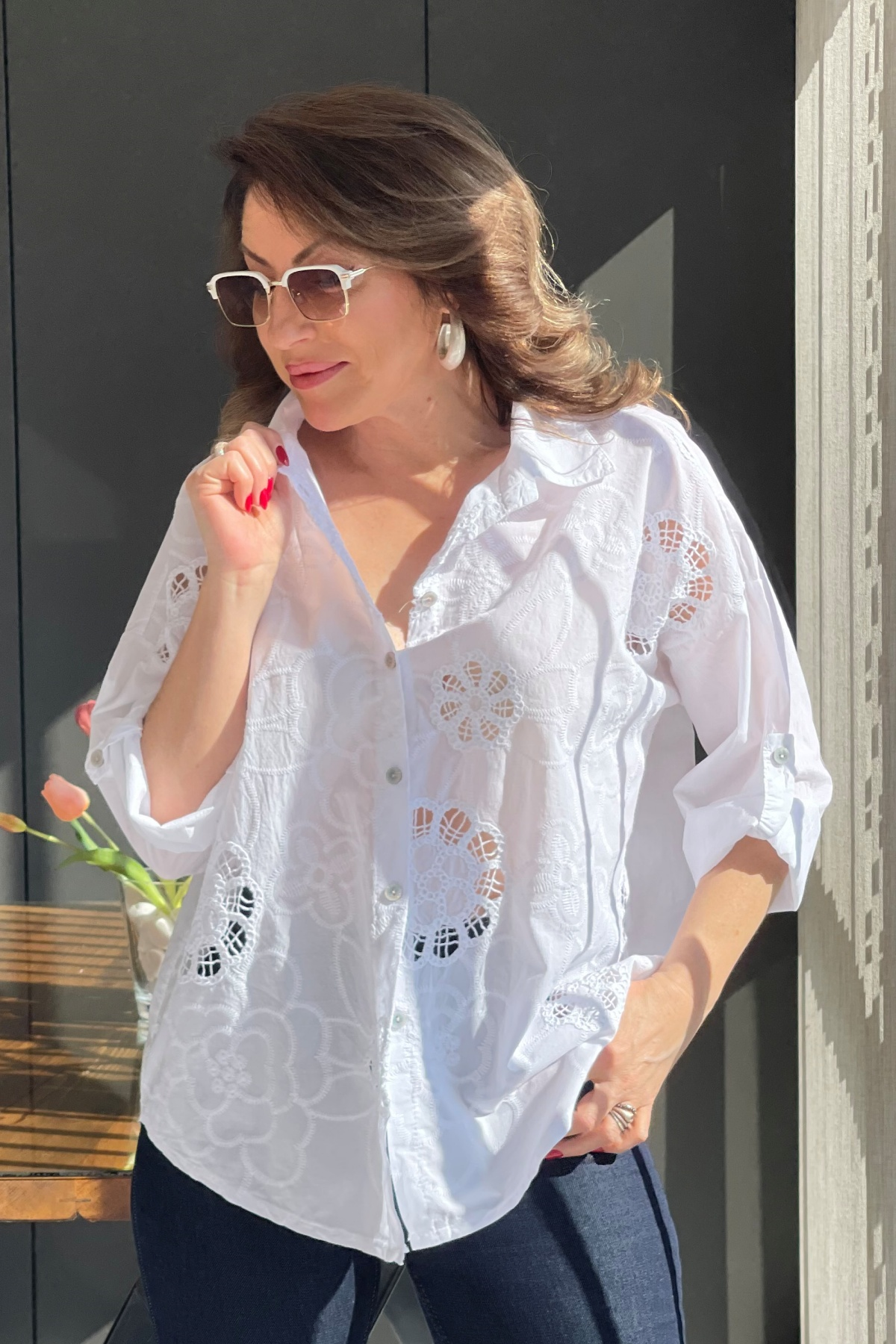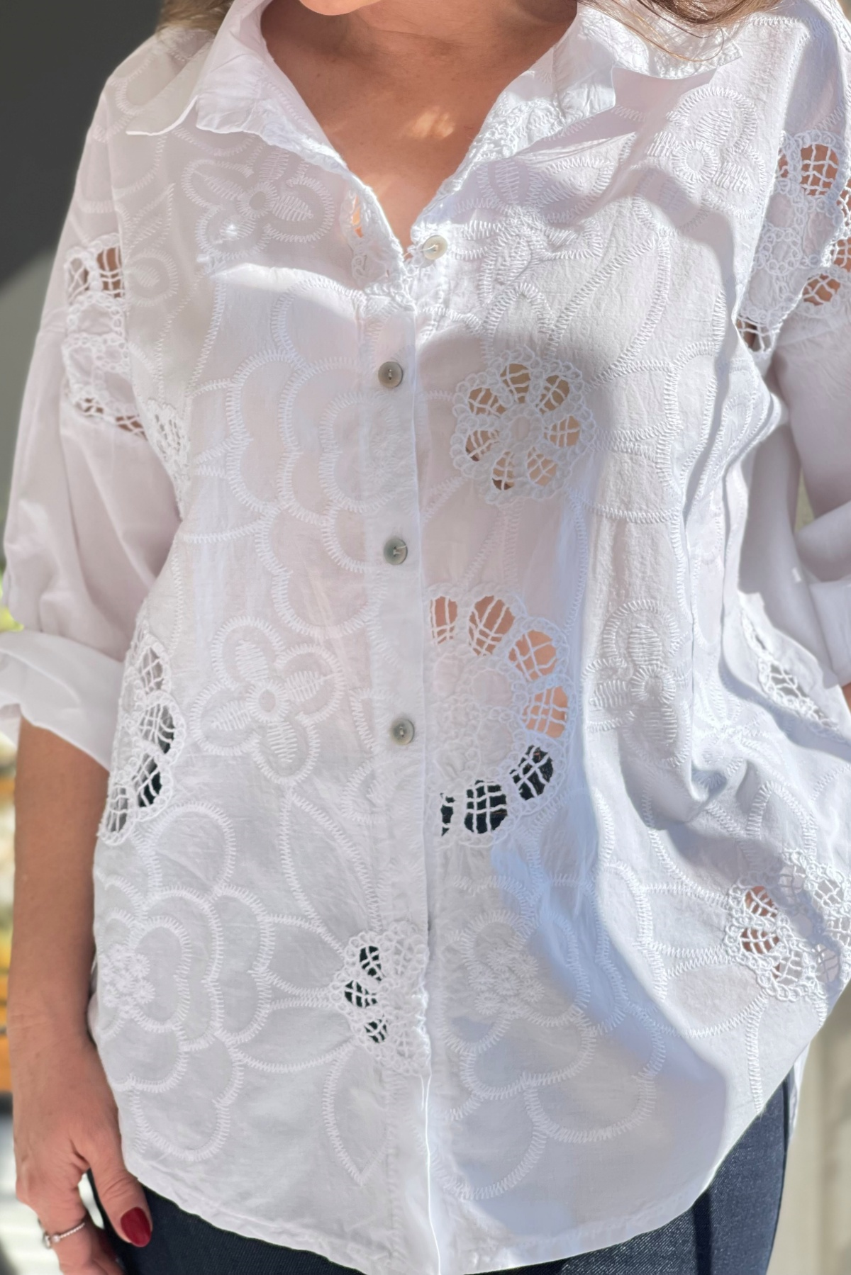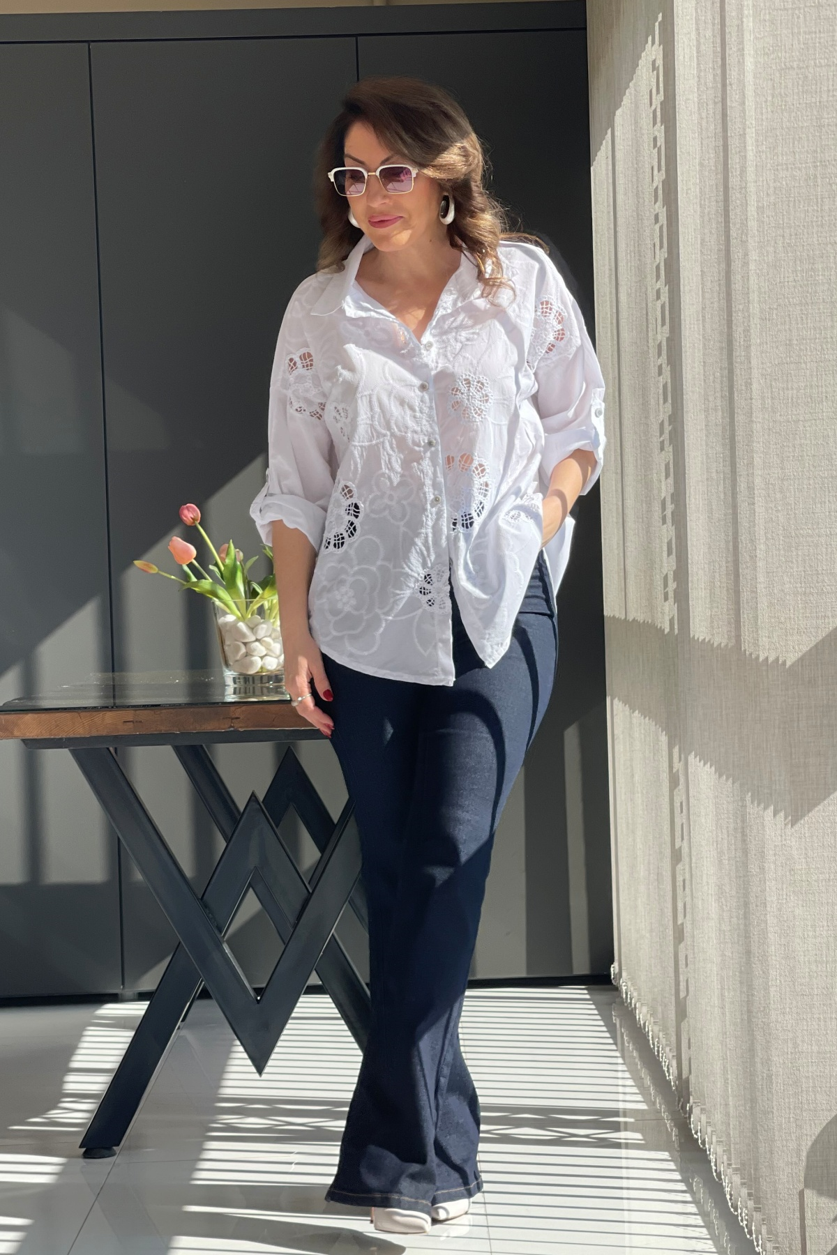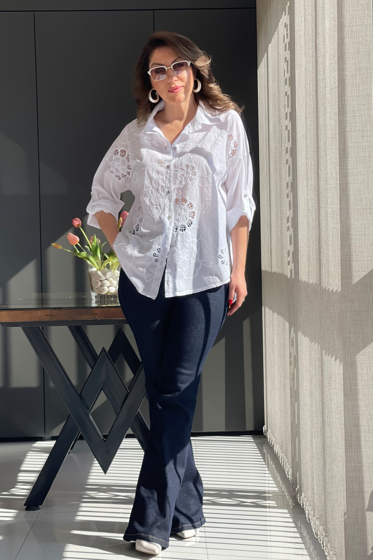 Nakış Çiçek Desen Beyaz Gömlek (Mislina-1800)