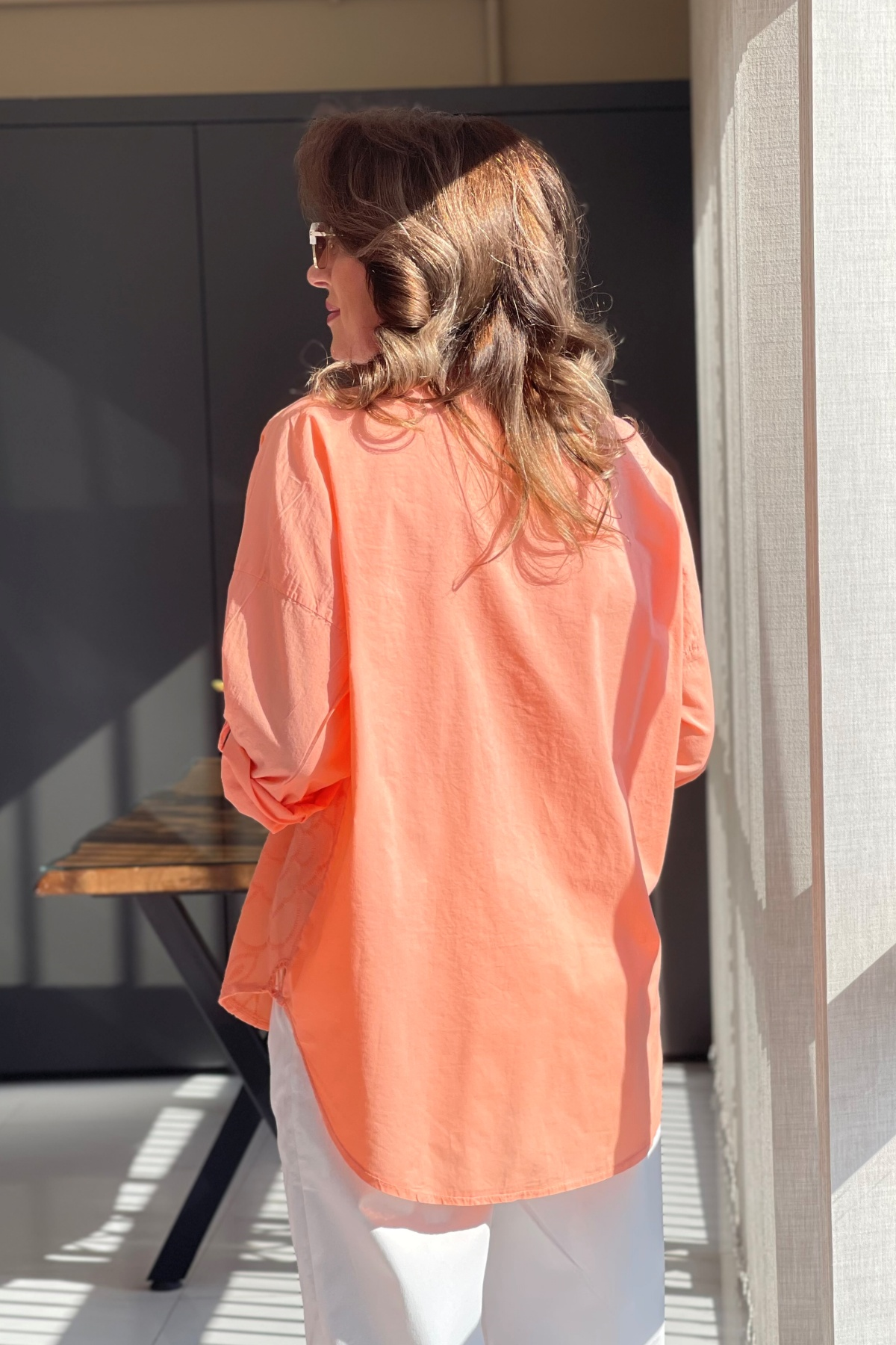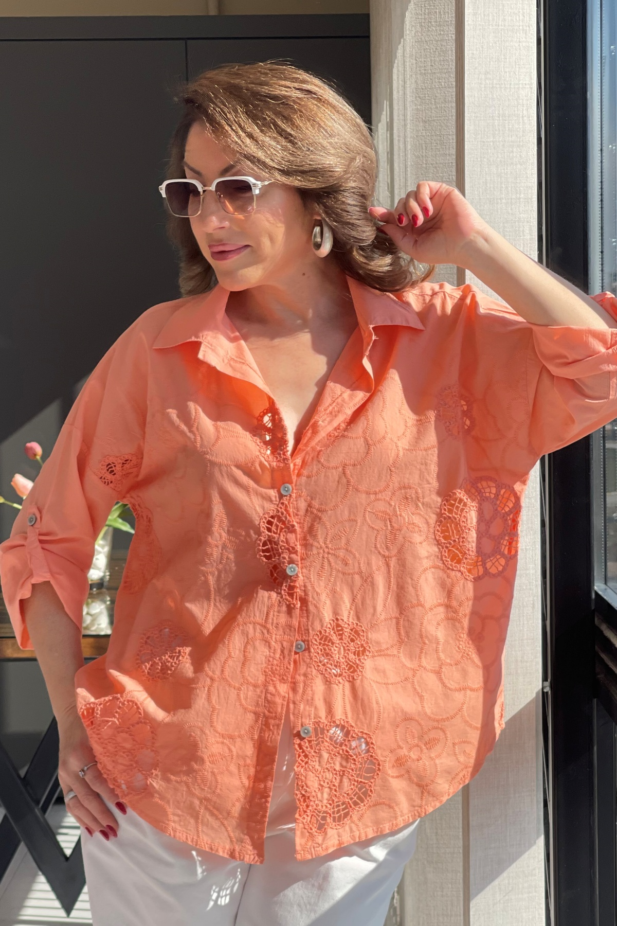 Nakış Çiçek Desen Orange Gömlek (Mislina-1800)