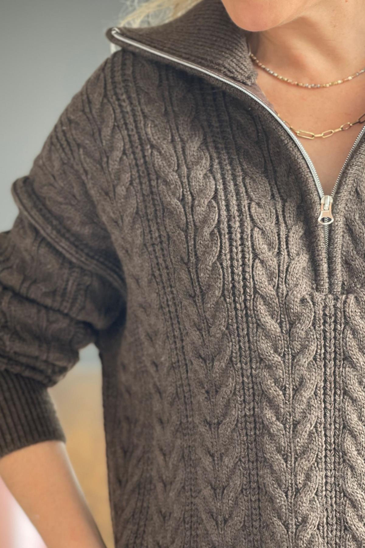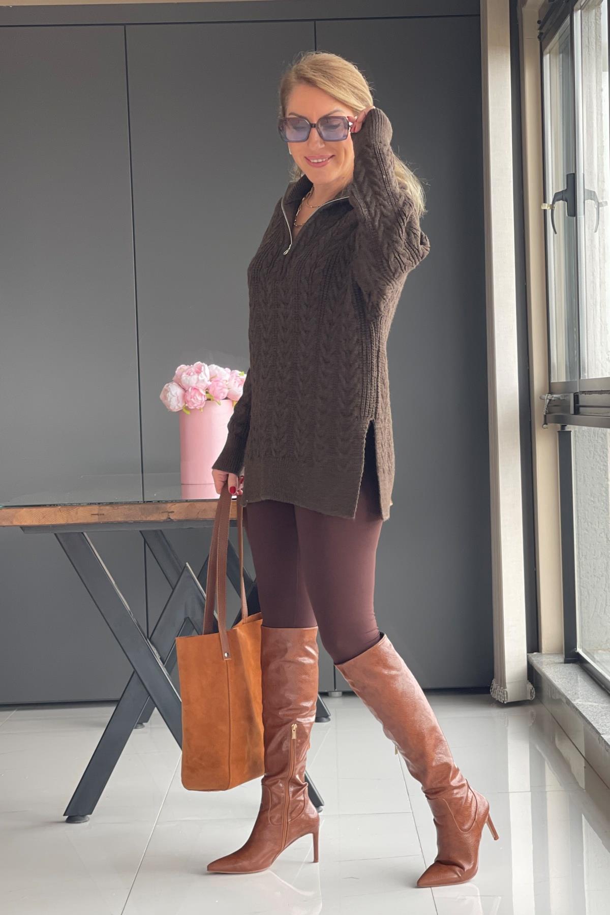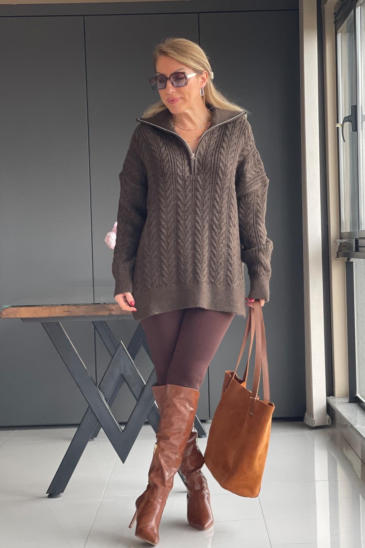 Örgü Detay Kahve Tunik Kazak (Mislina-1654)
