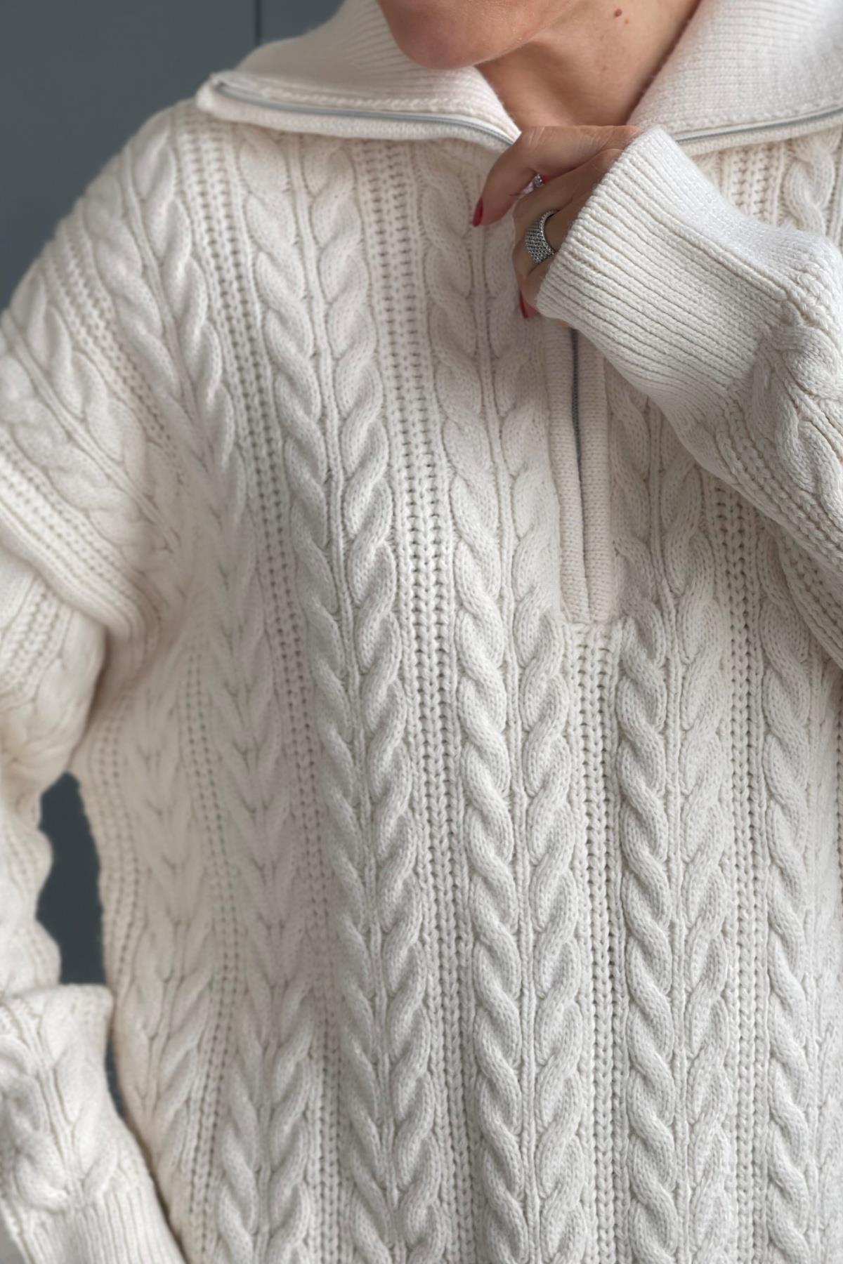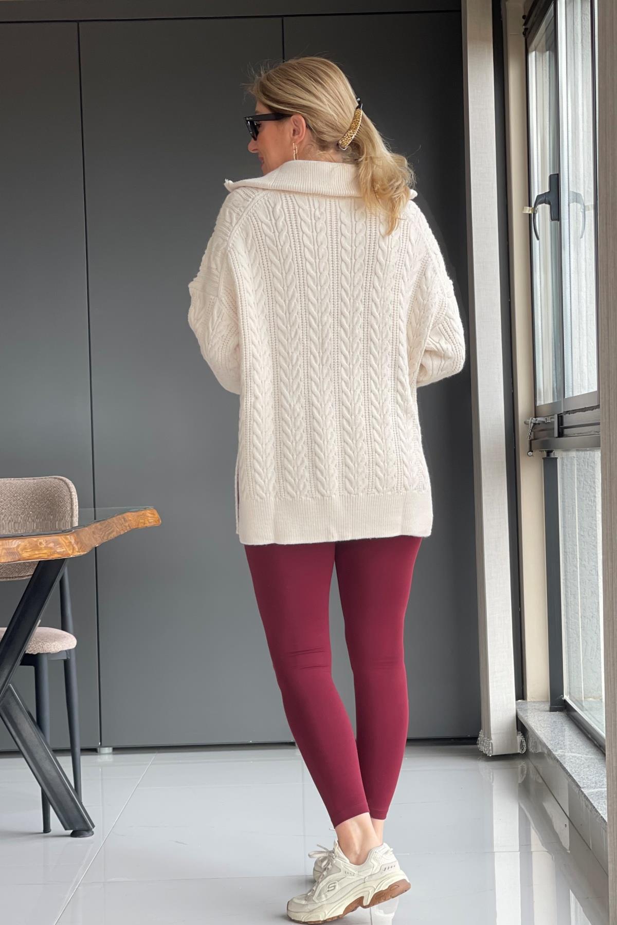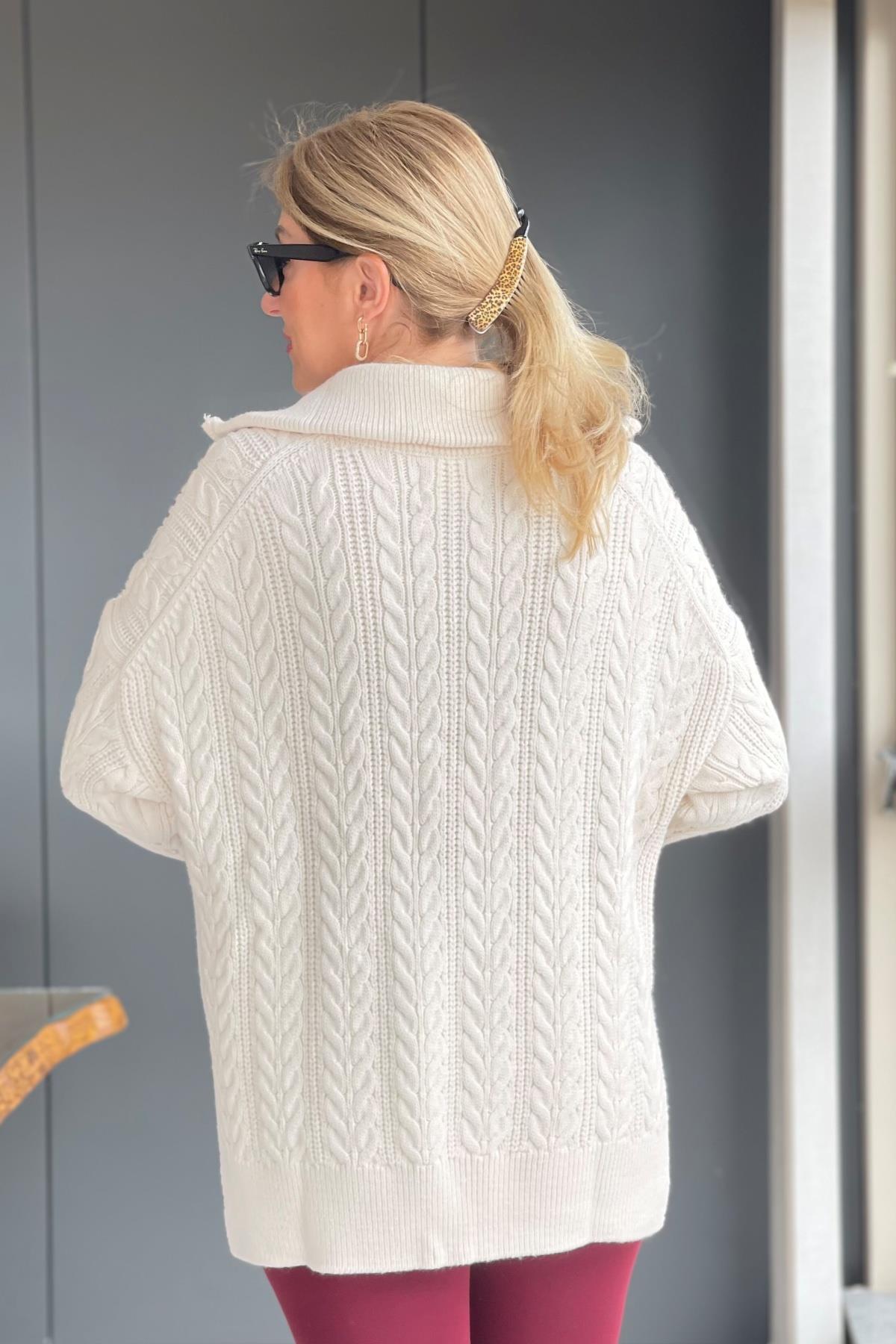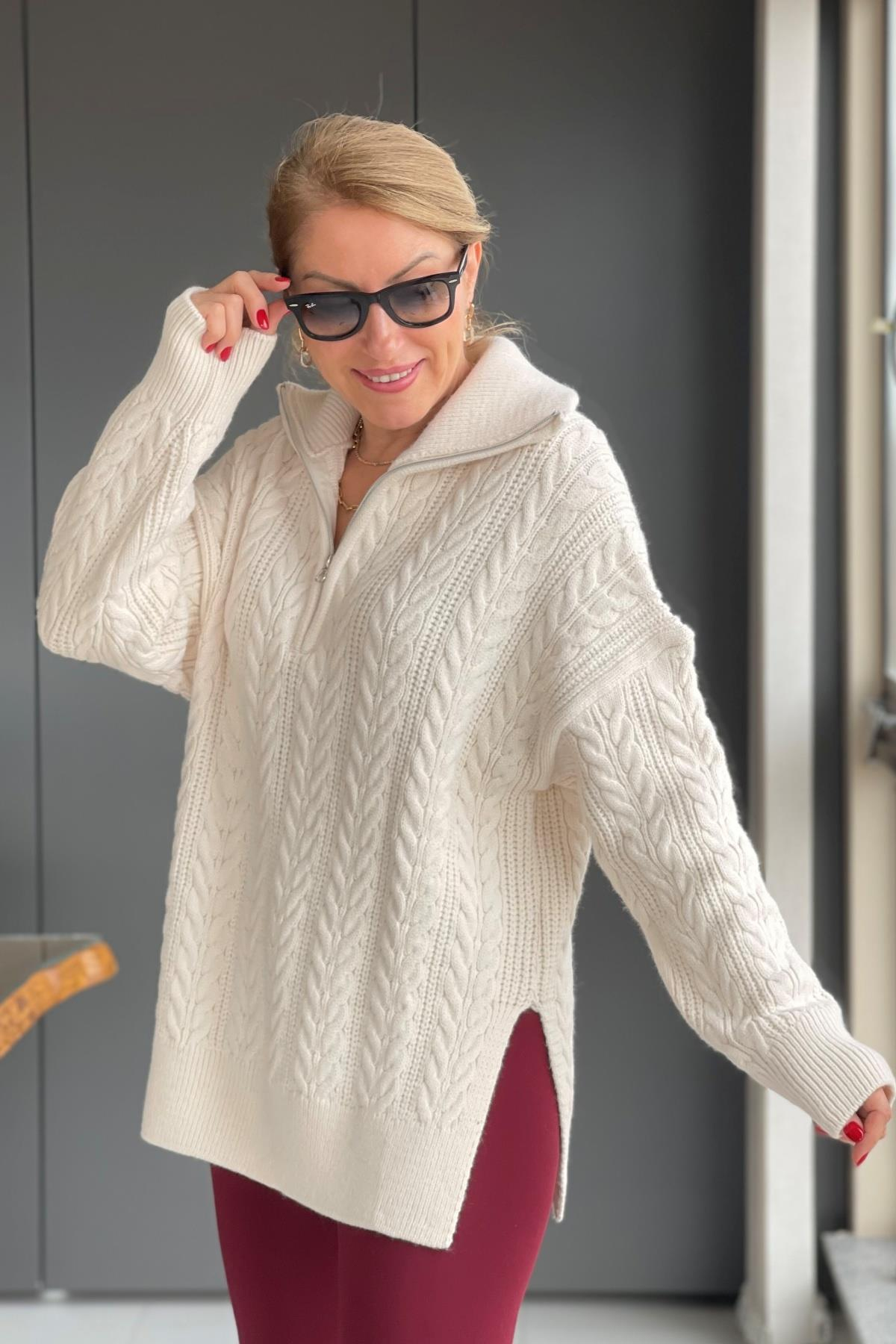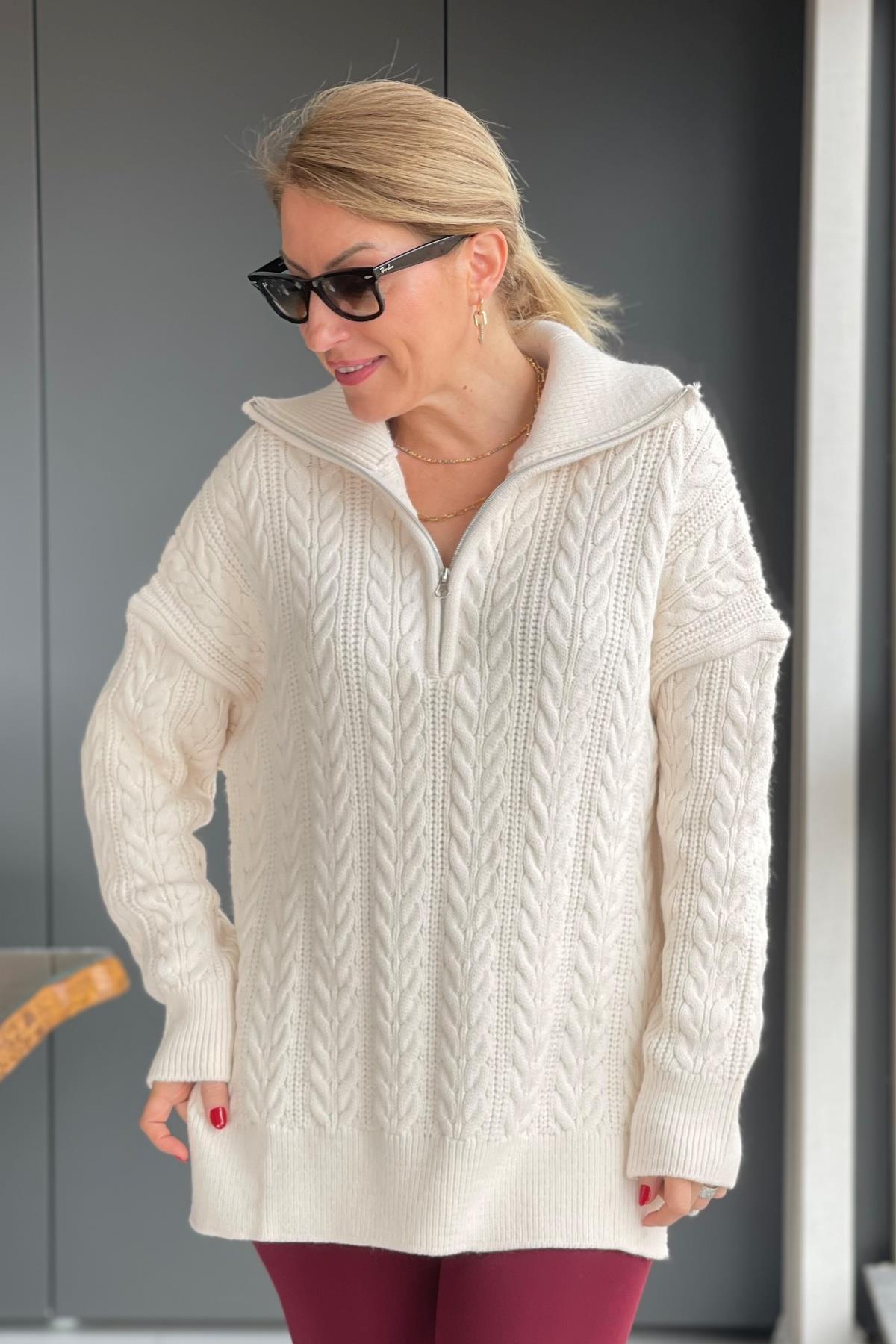 Örgü Detay Krem Tunik Kazak (Mislina-1654)