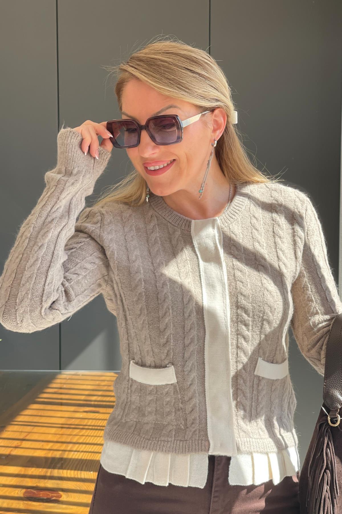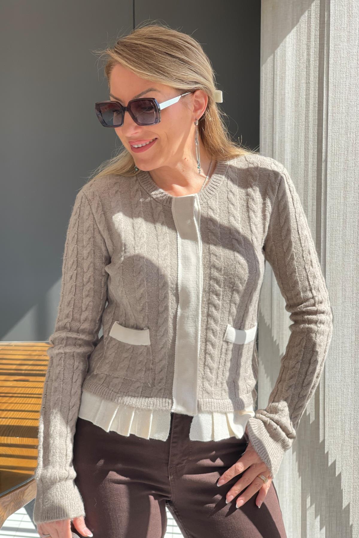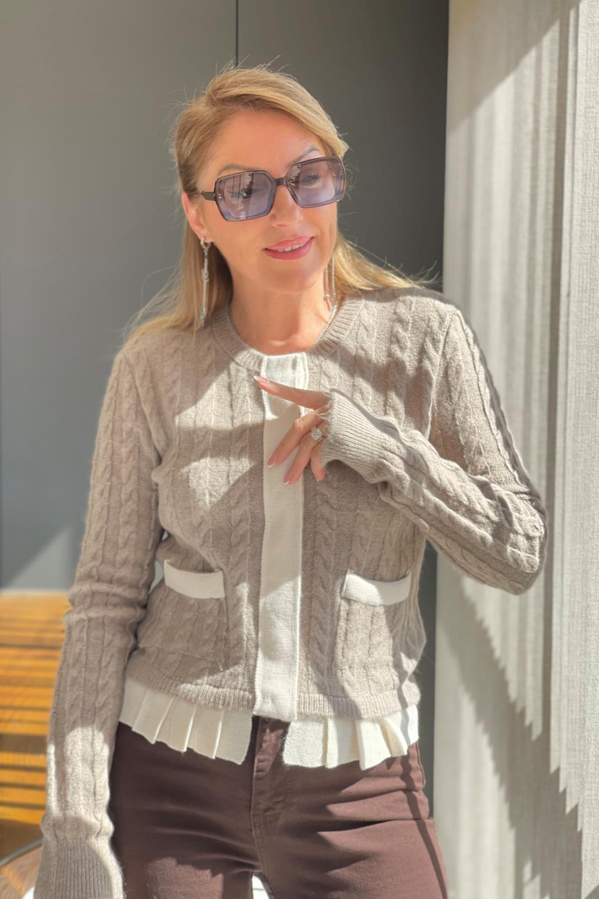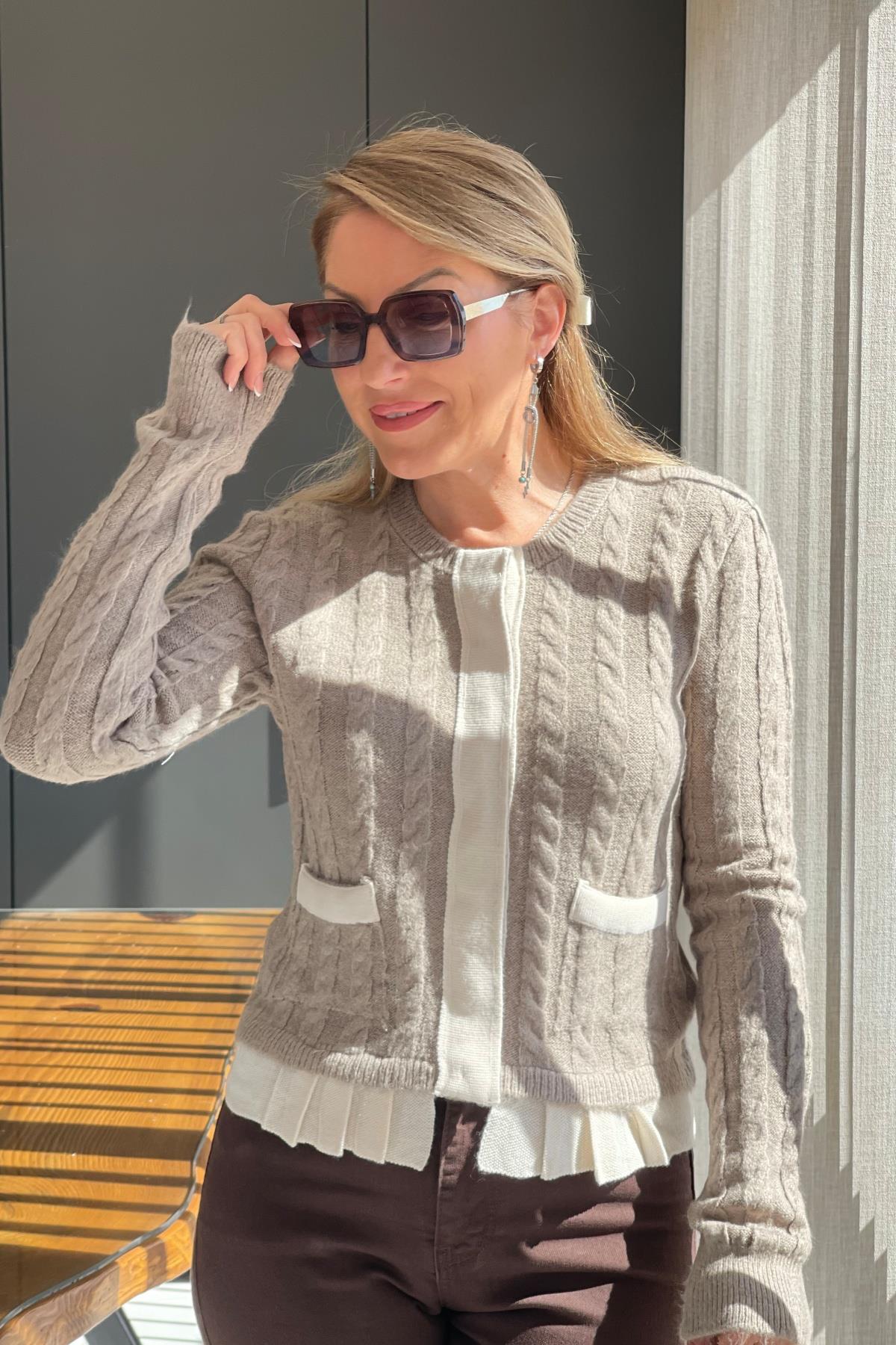 Pile Detay Taş Rengi Hırka (Mislina-1576)