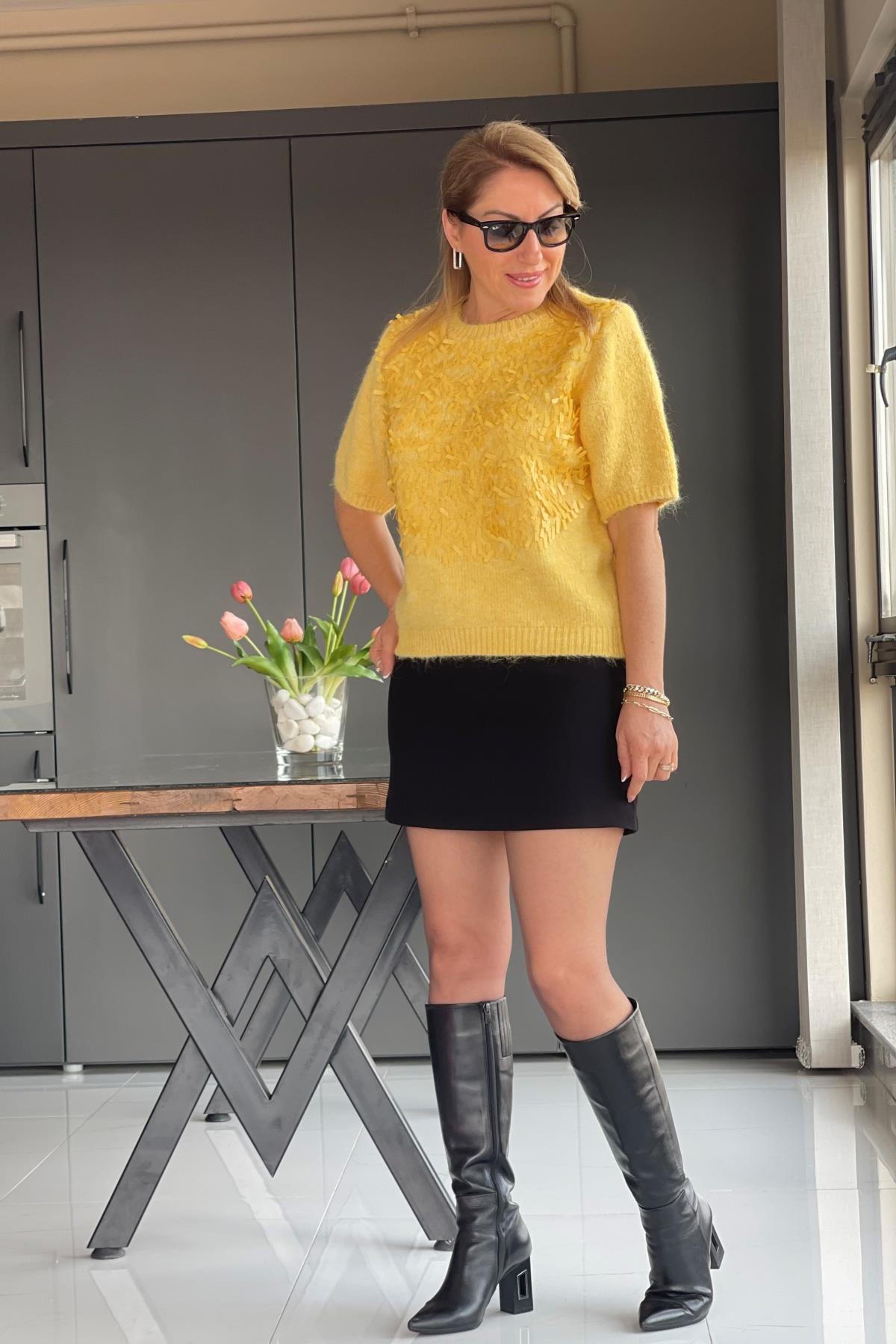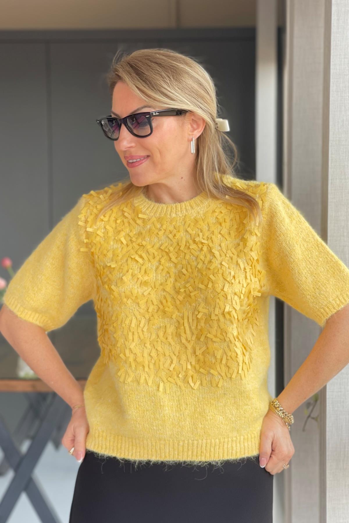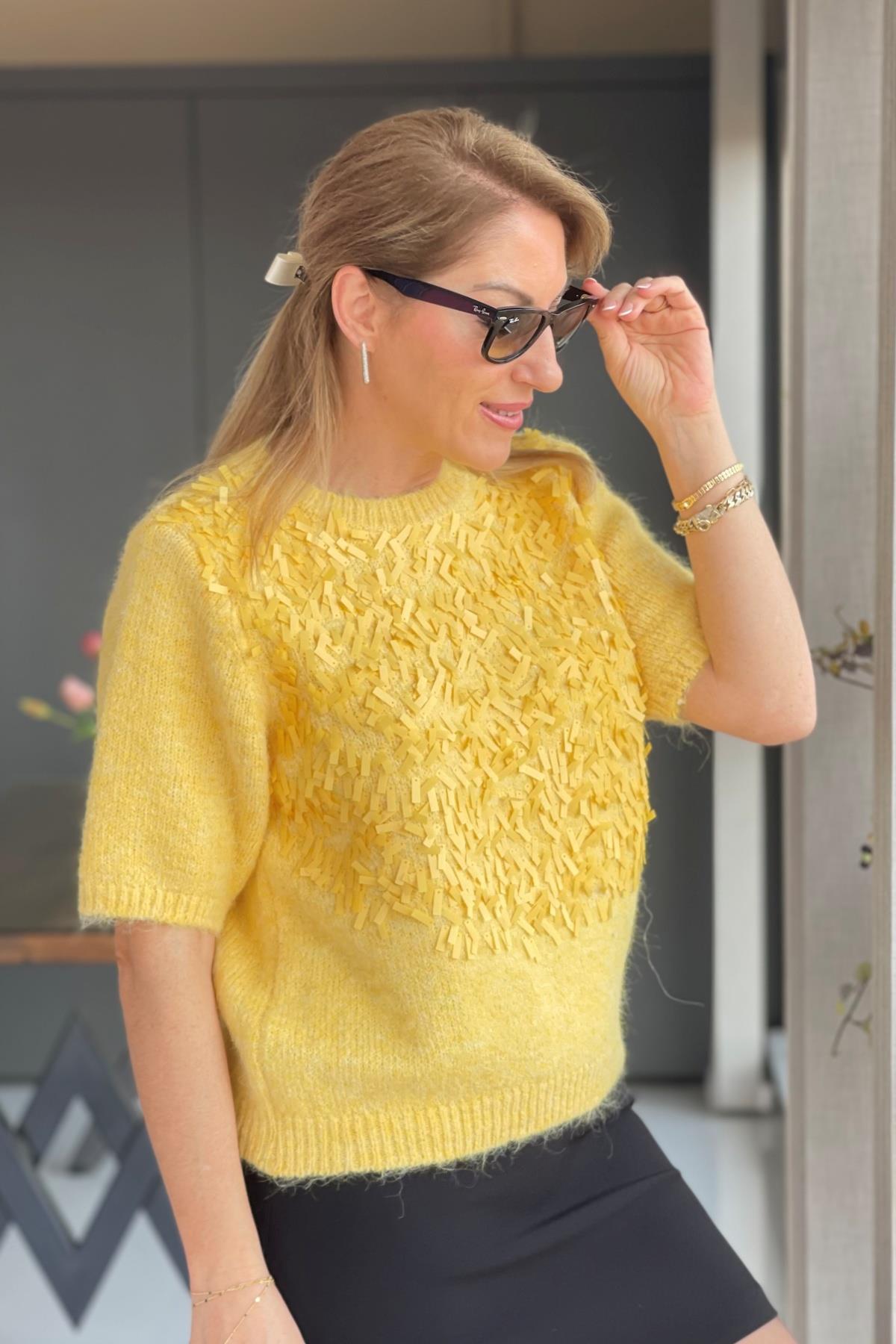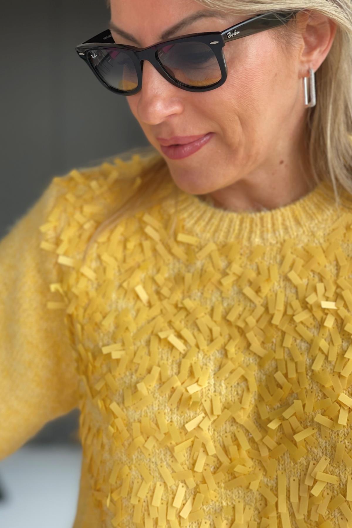 Pul Payetli Sarı Yün Kazak (Mislina-1595)