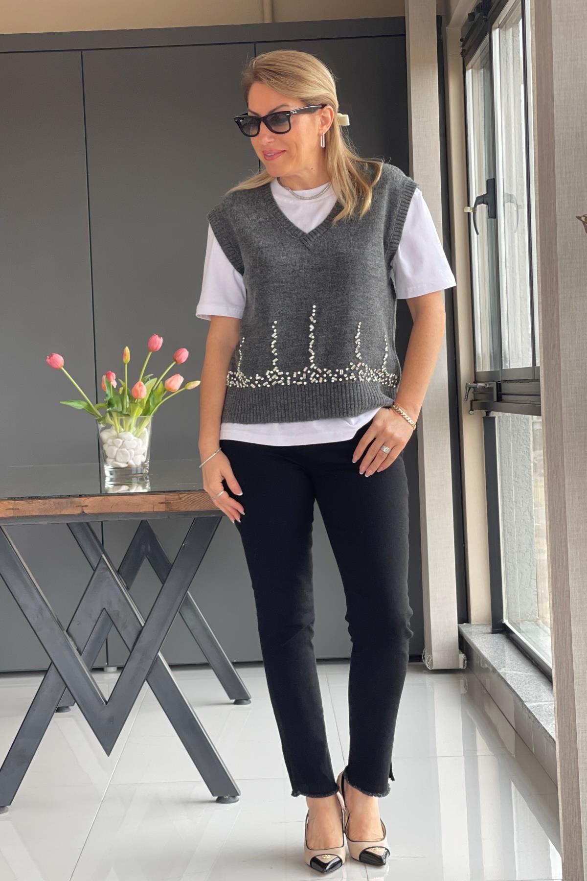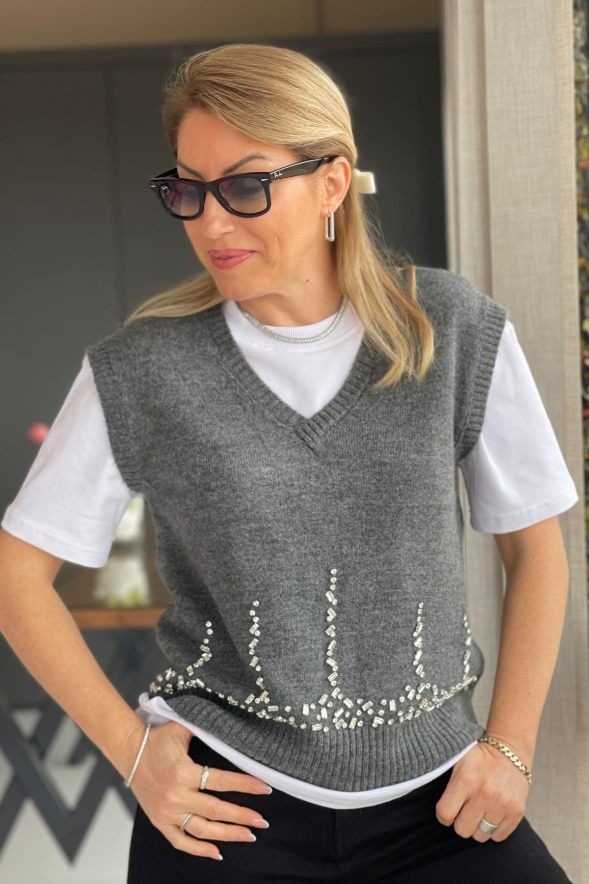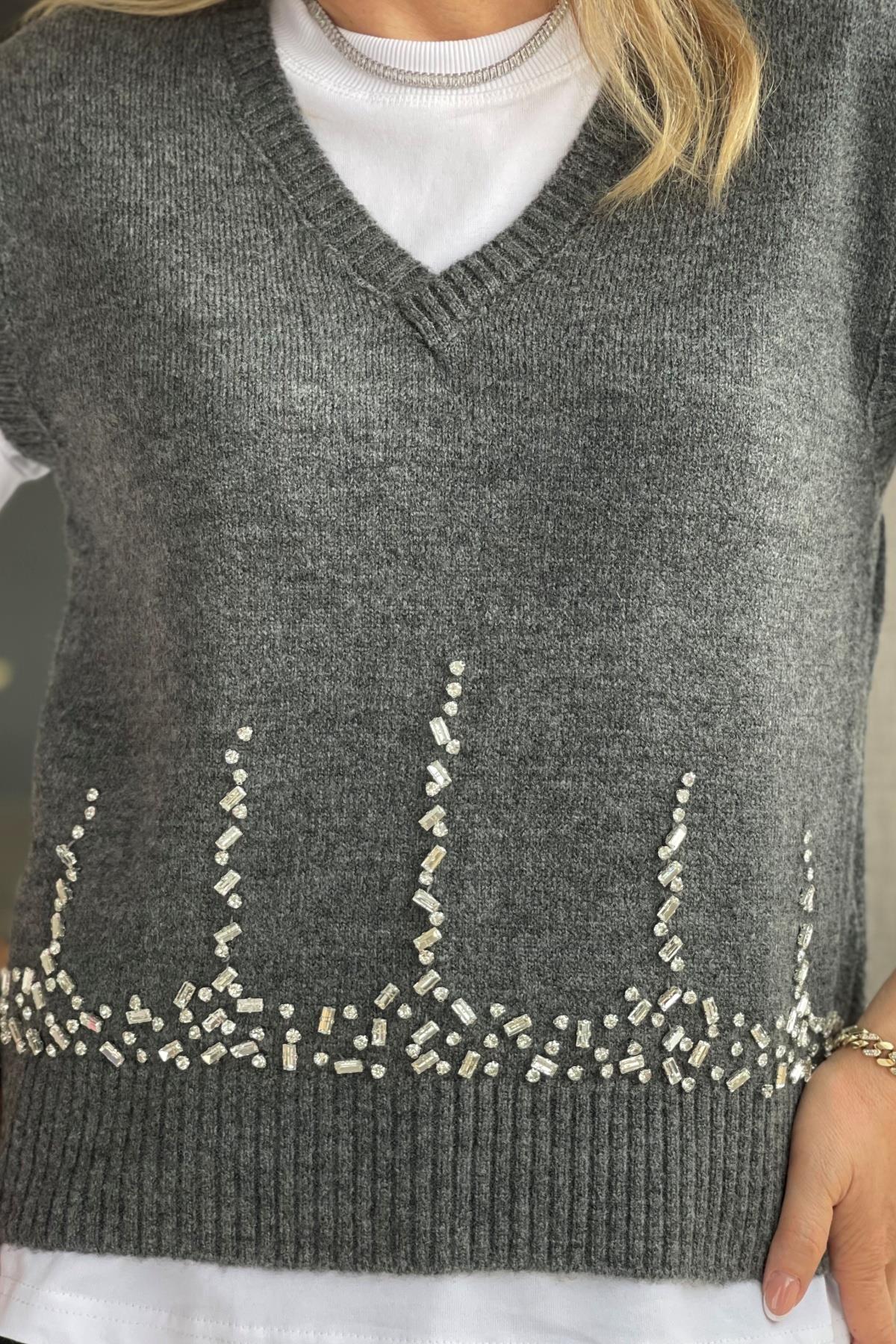 Taş Detay Bej Kazak Taş Detay Siyah Kazak Taş Detay Kahve Kazak