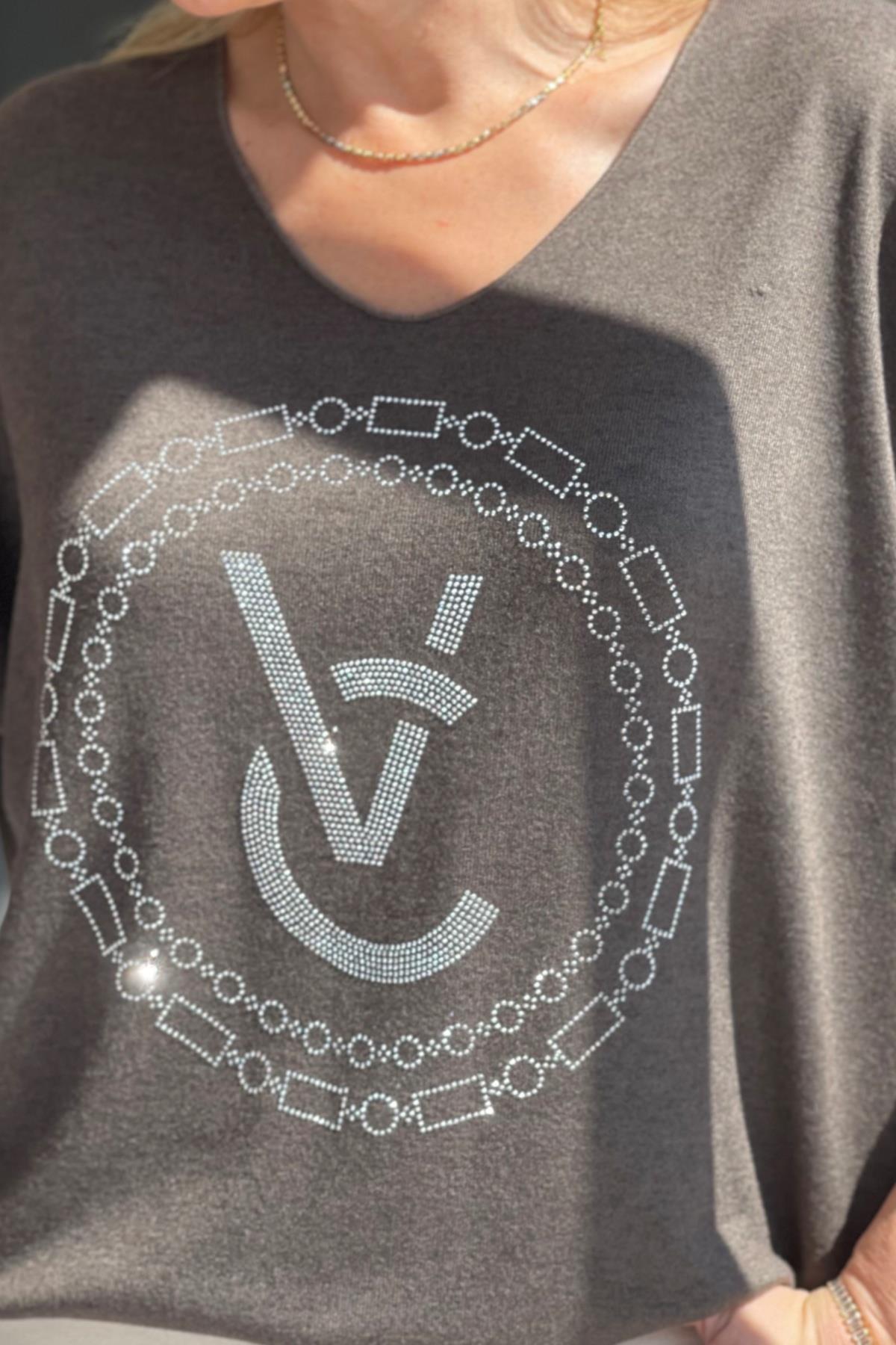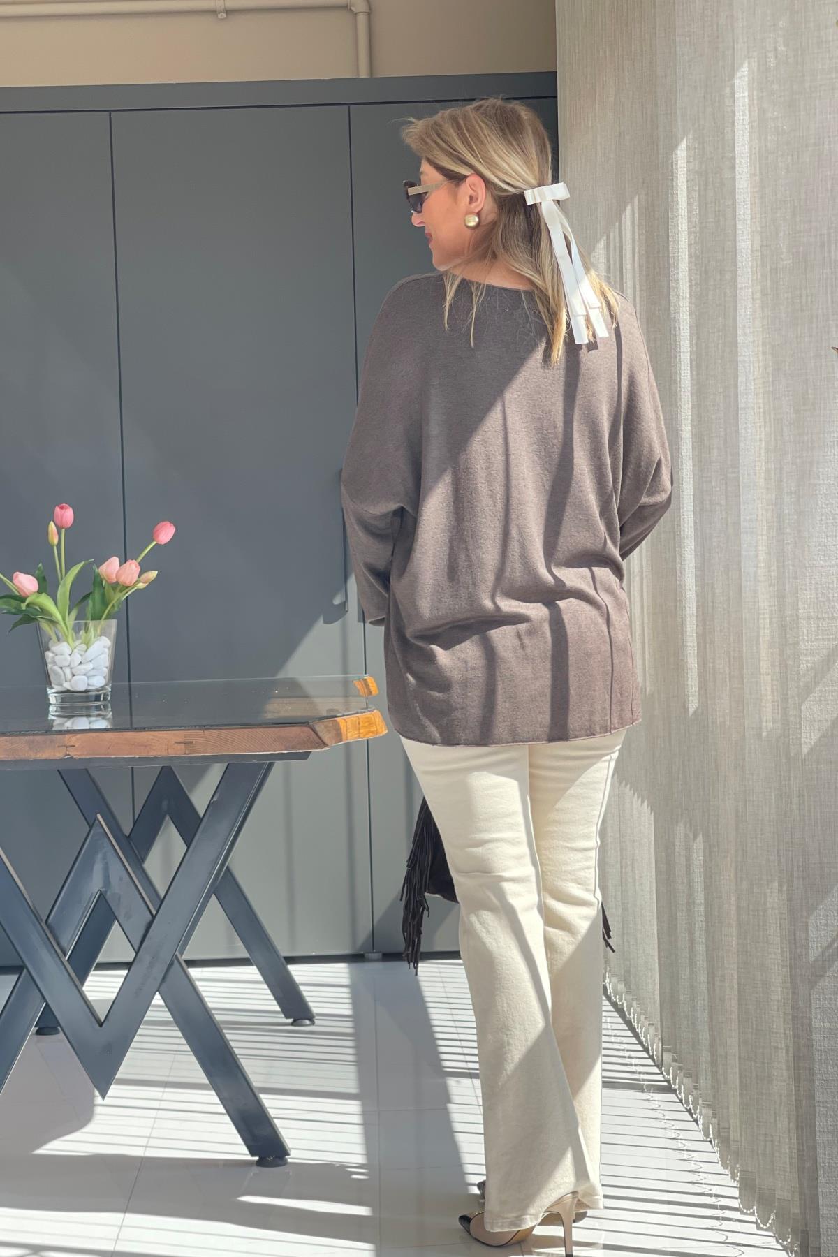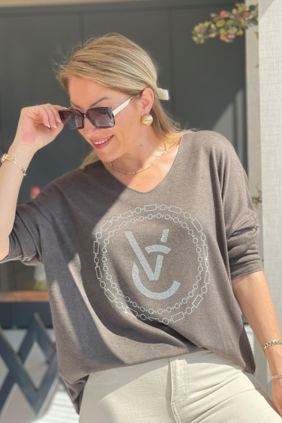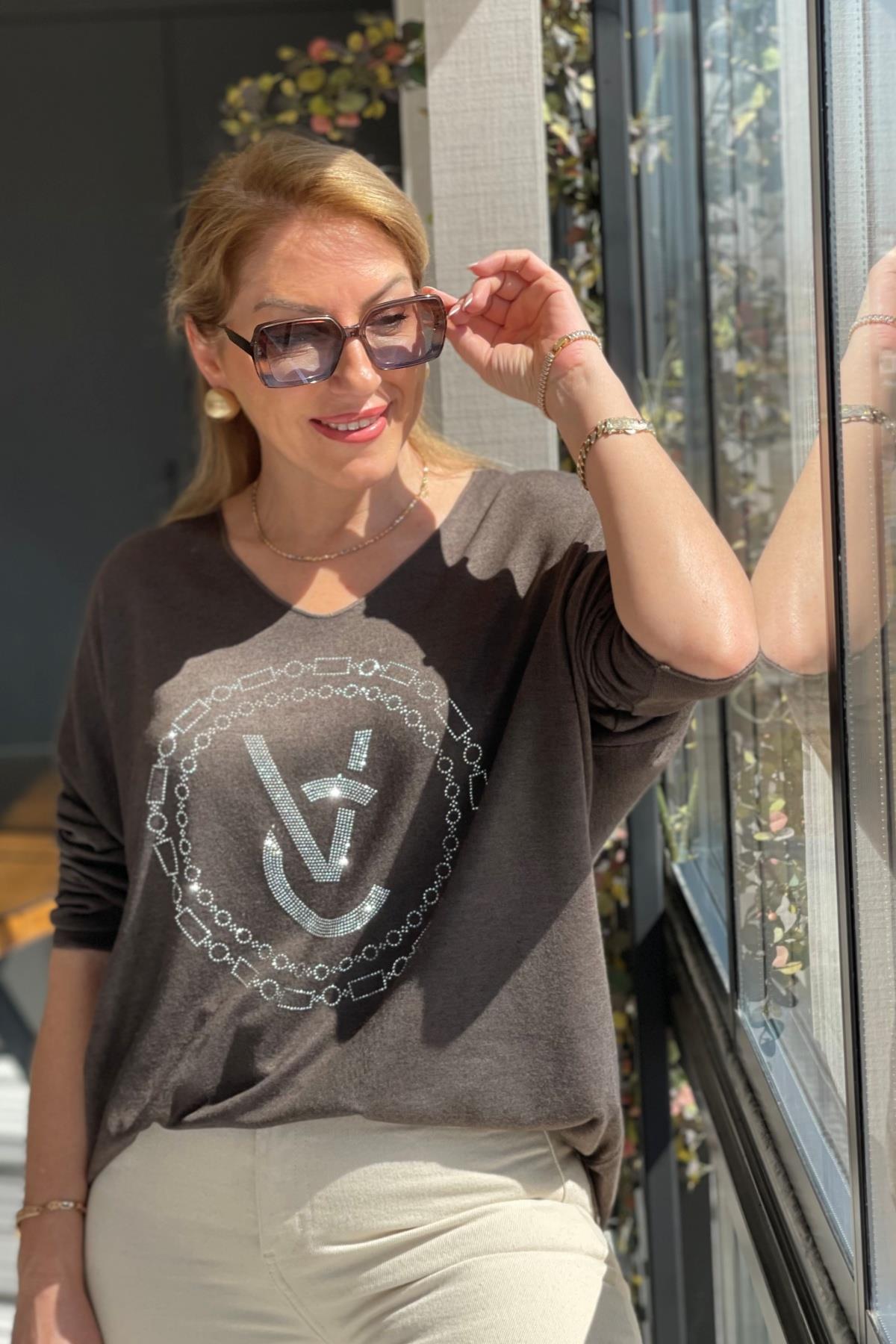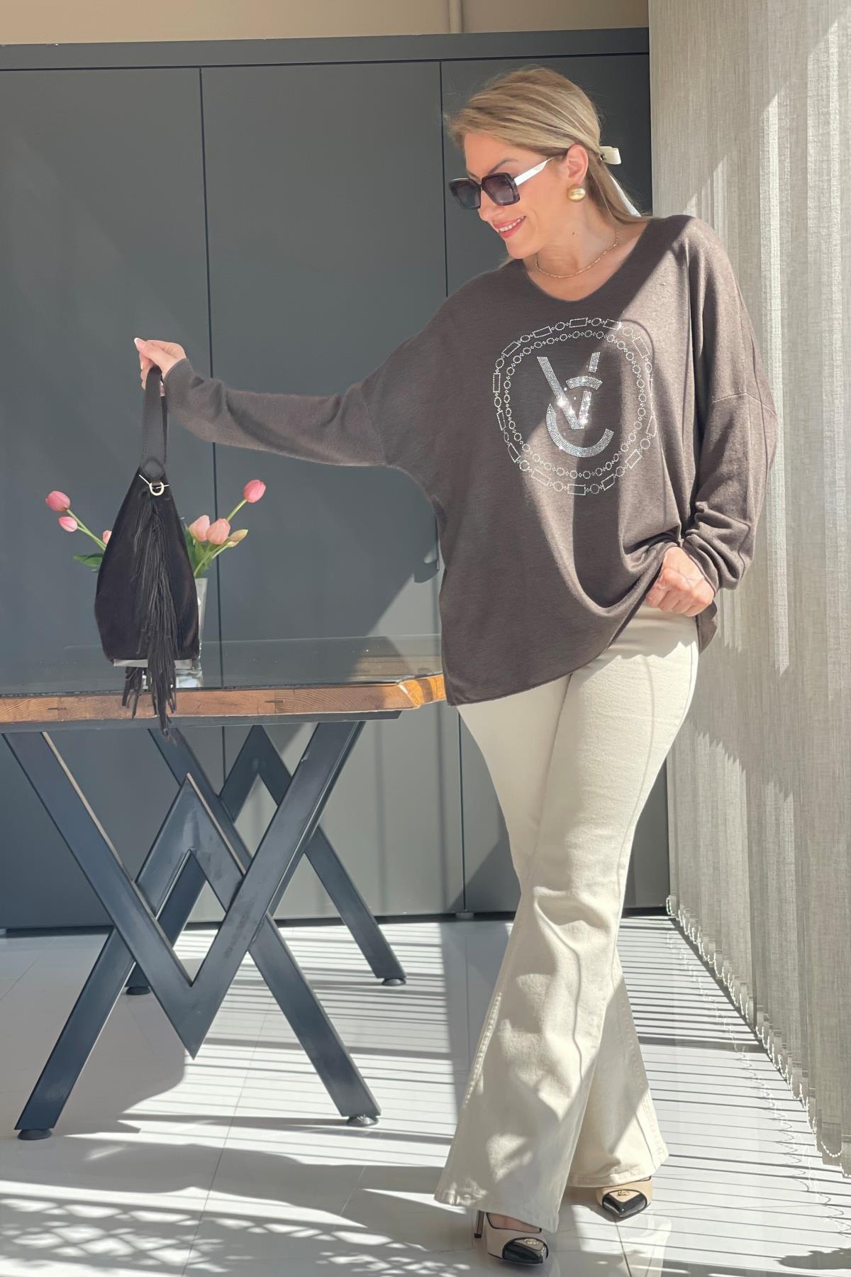 Taş Detay Kahve Bluz (Mislina-1567)