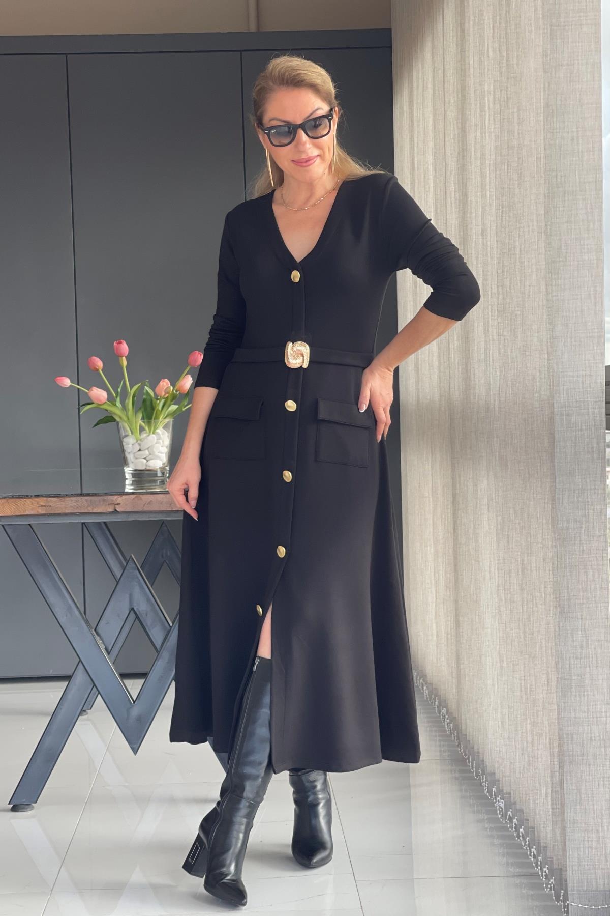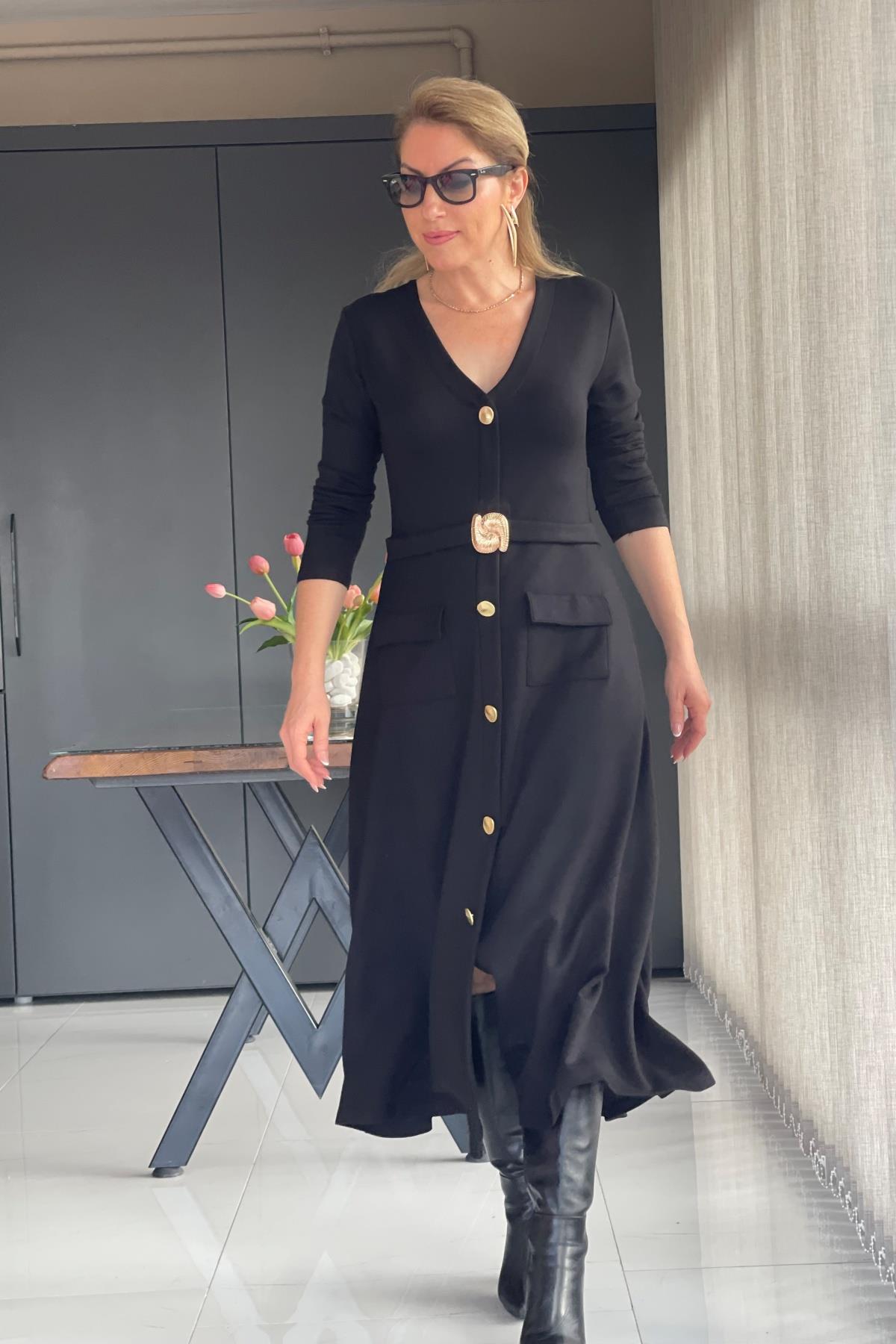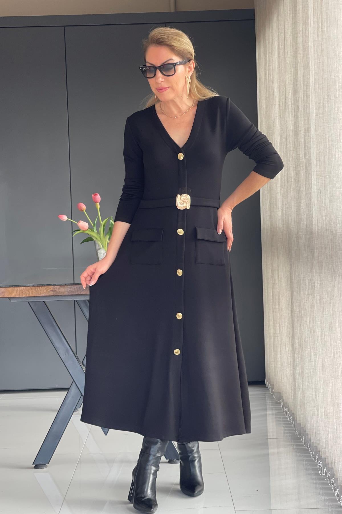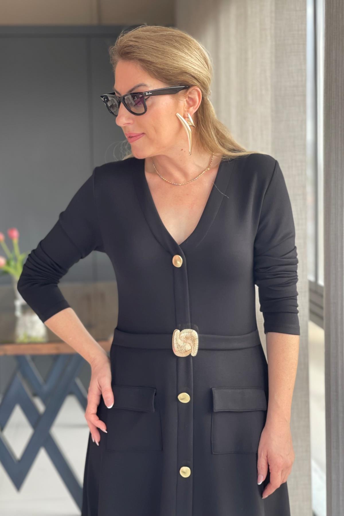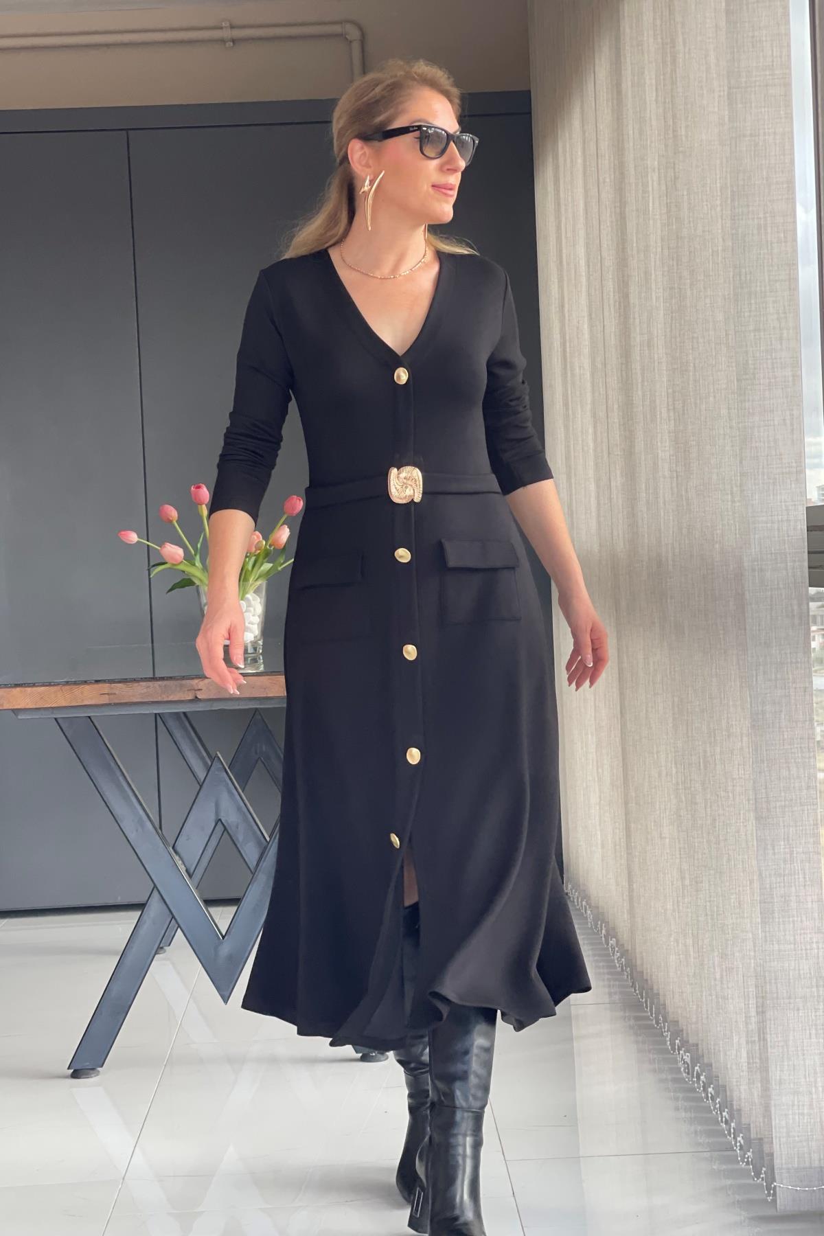 Toka Detay Siyah Elbise (Mislina-1624)