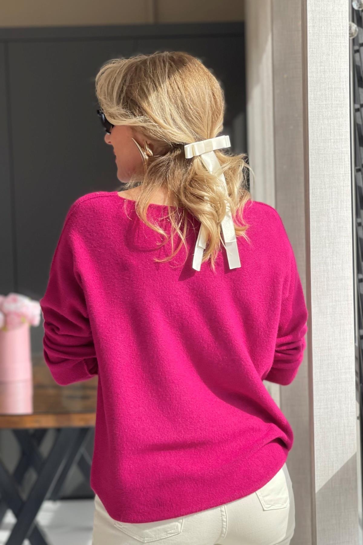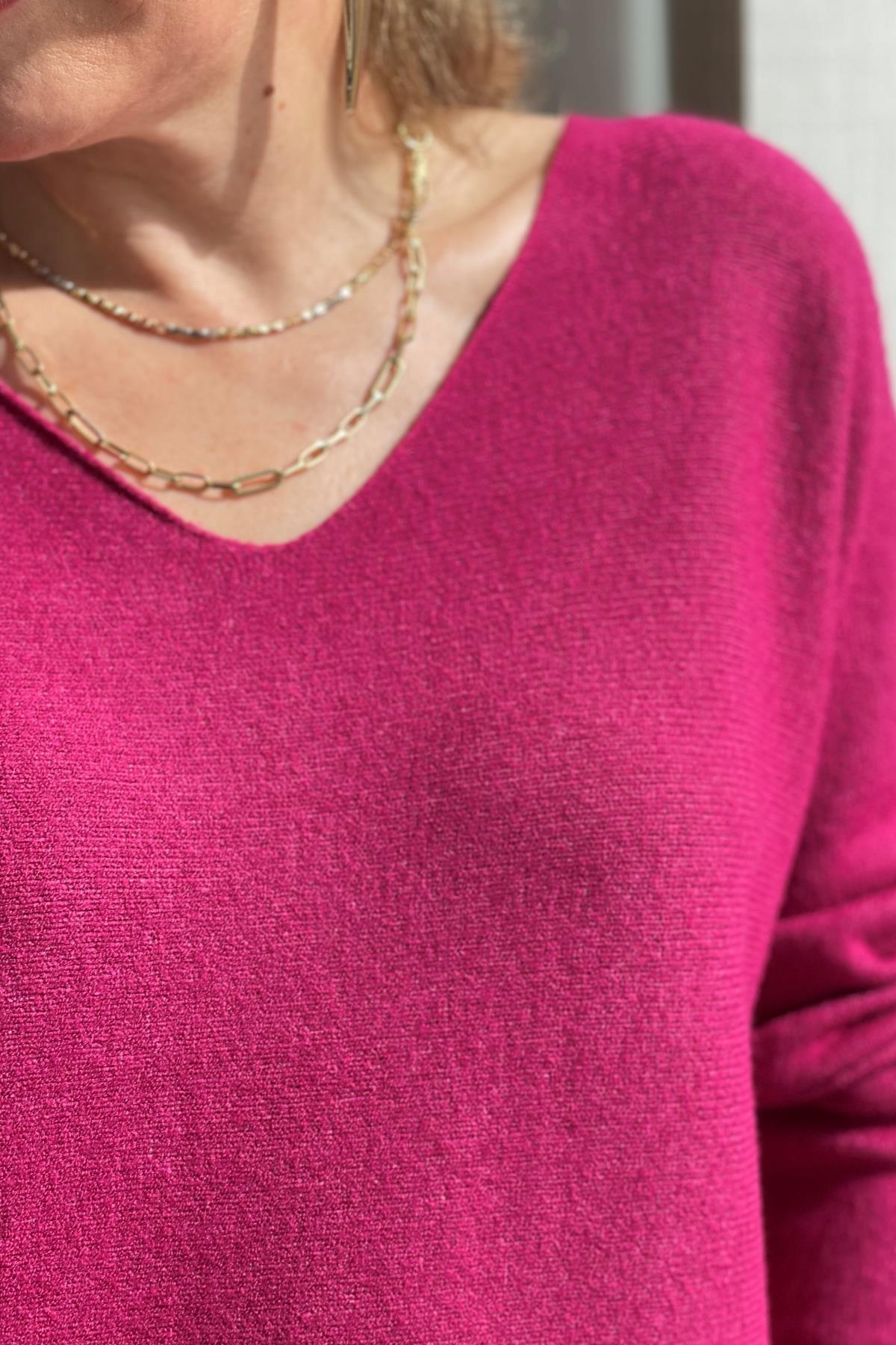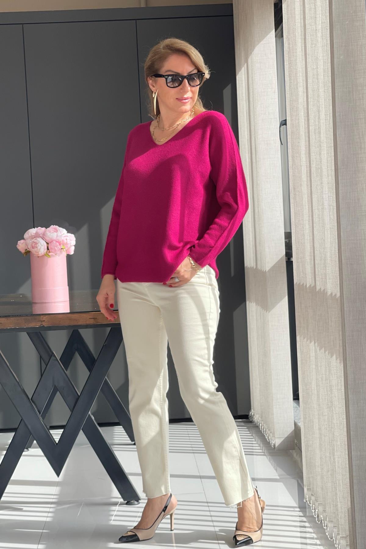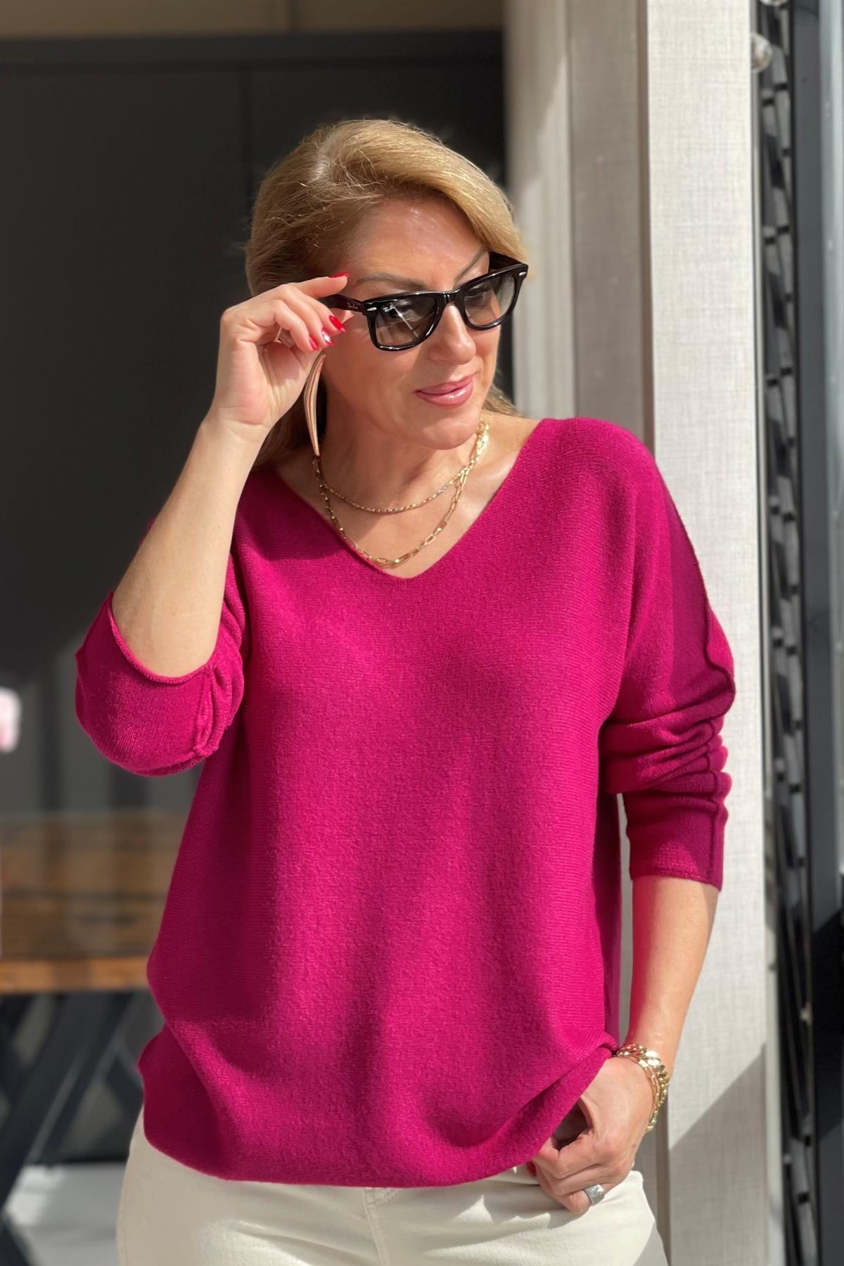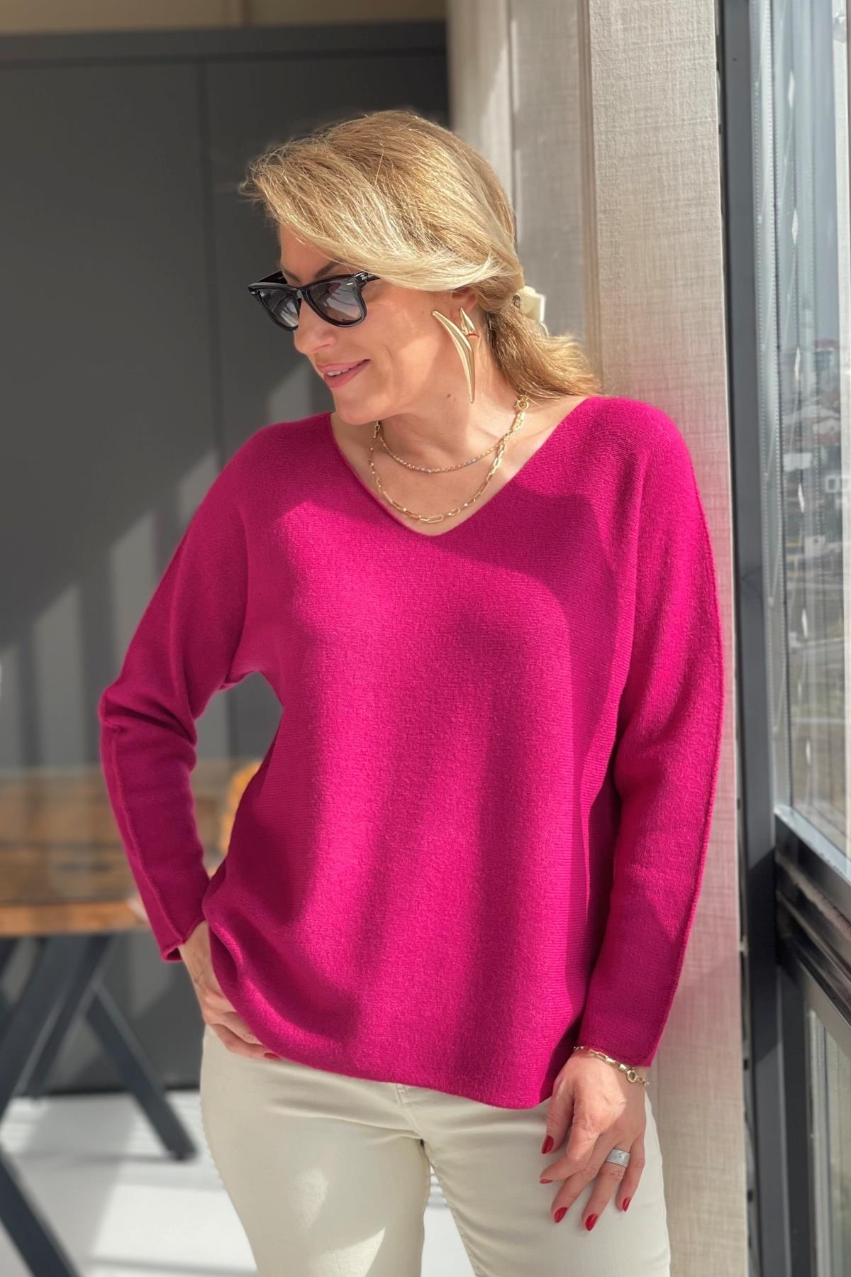 V Yaka Fuşya Triko Kazak (Mislina-1587)