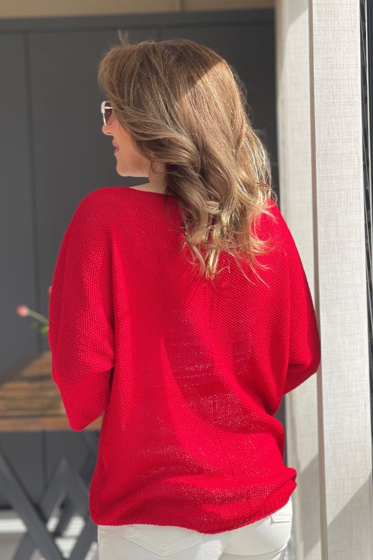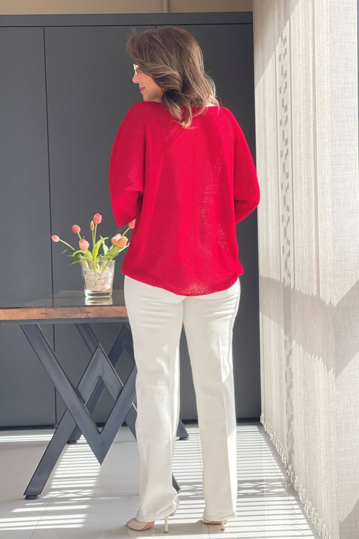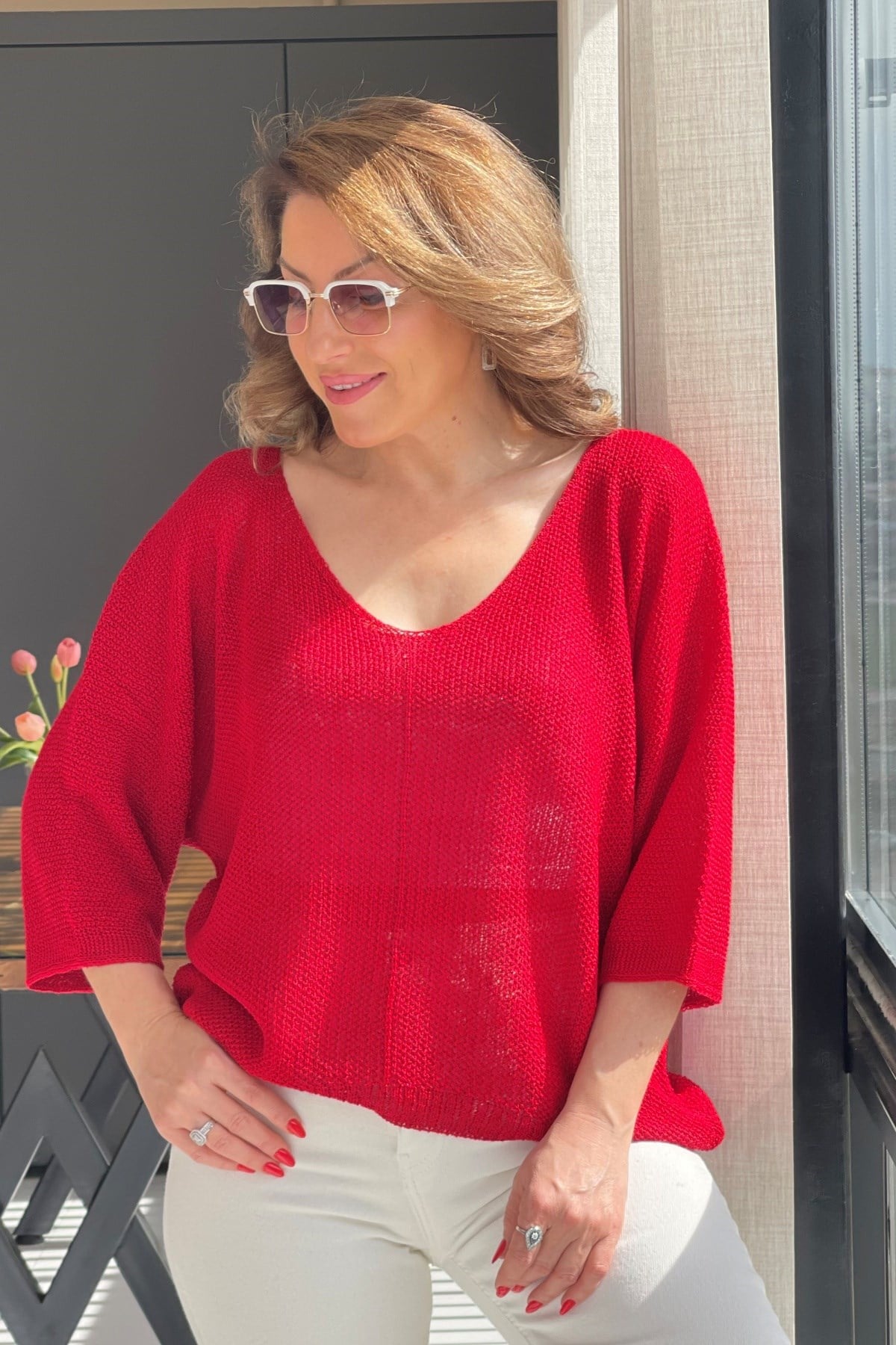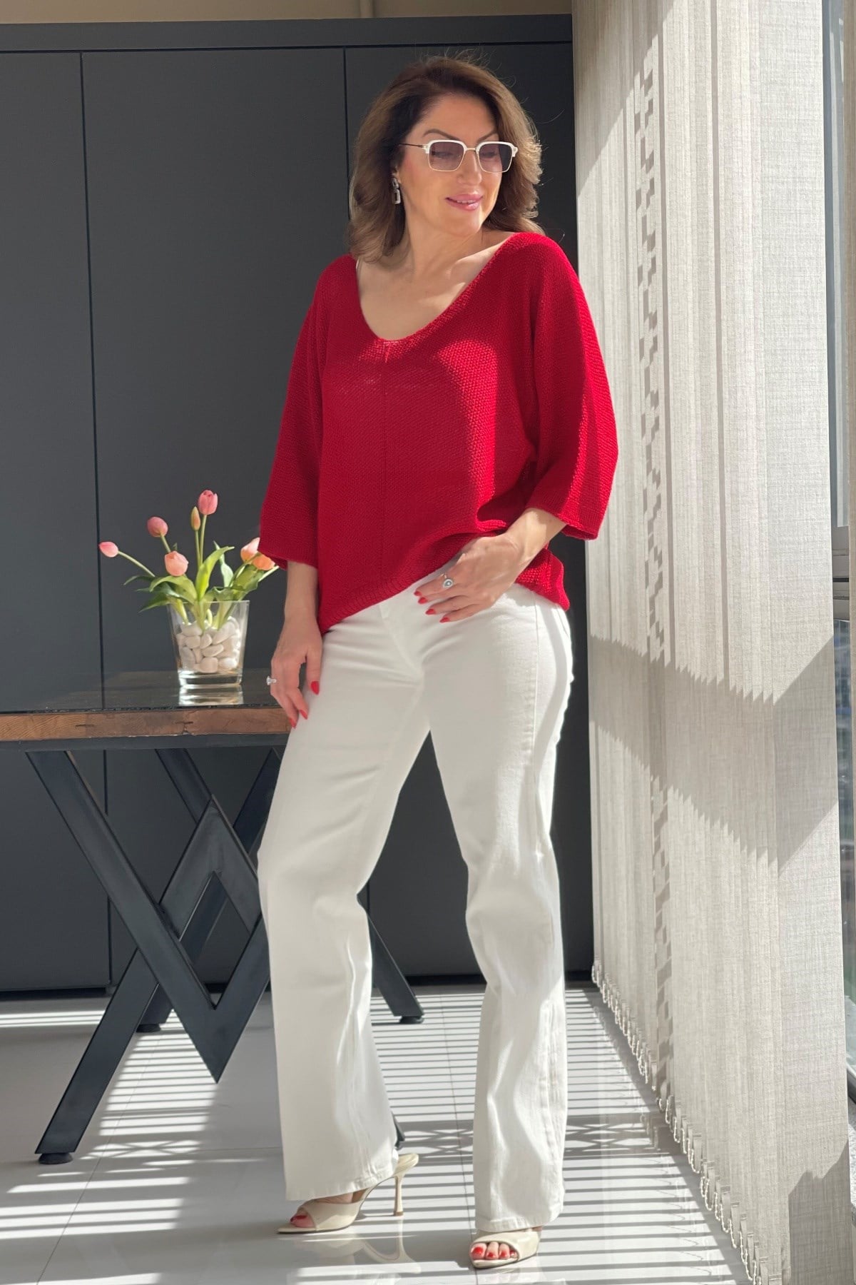 V Yaka Kırmızı Triko Bluz (Mislina-1854)