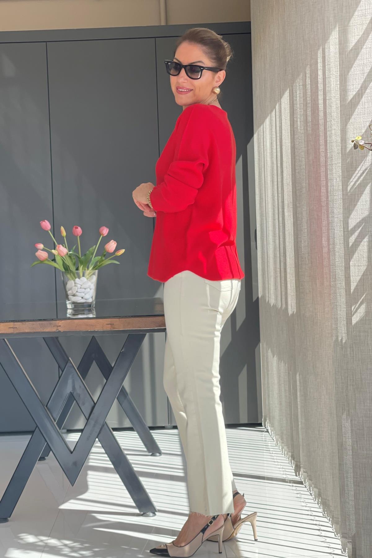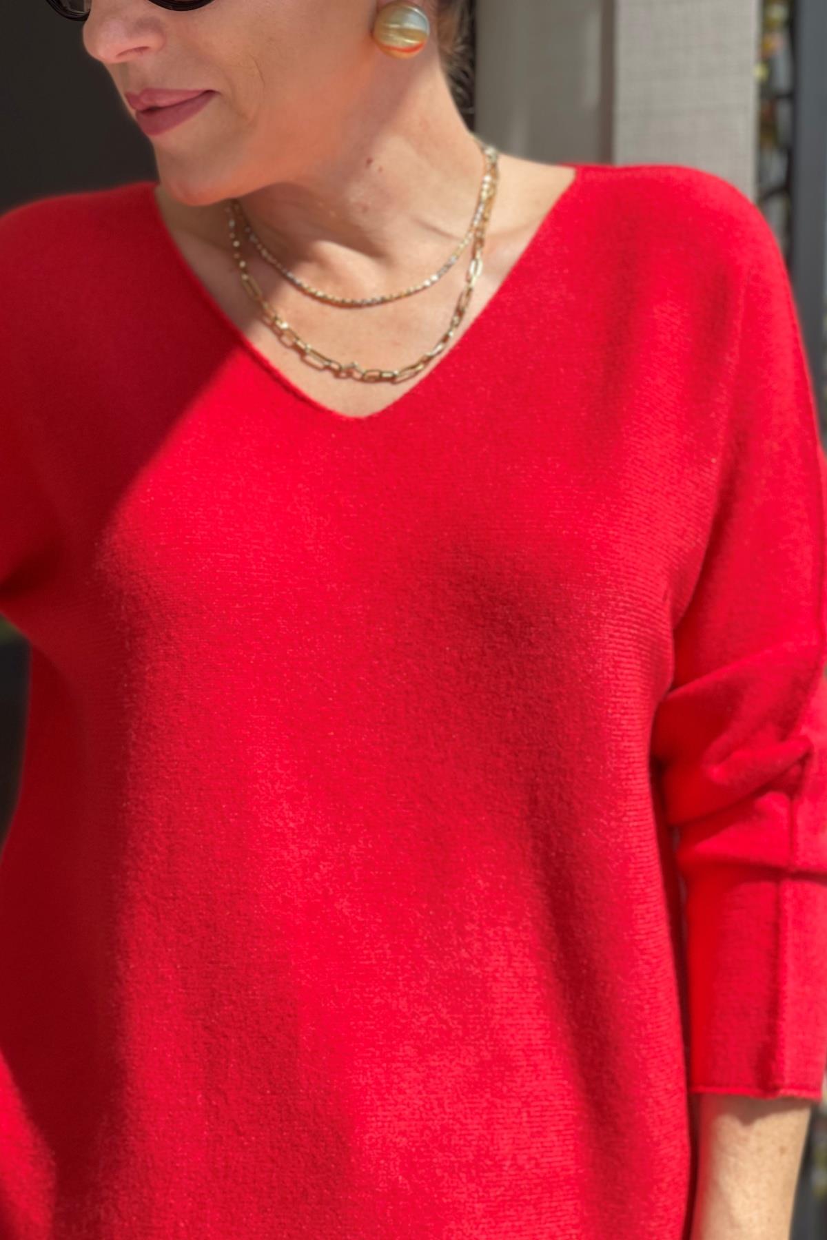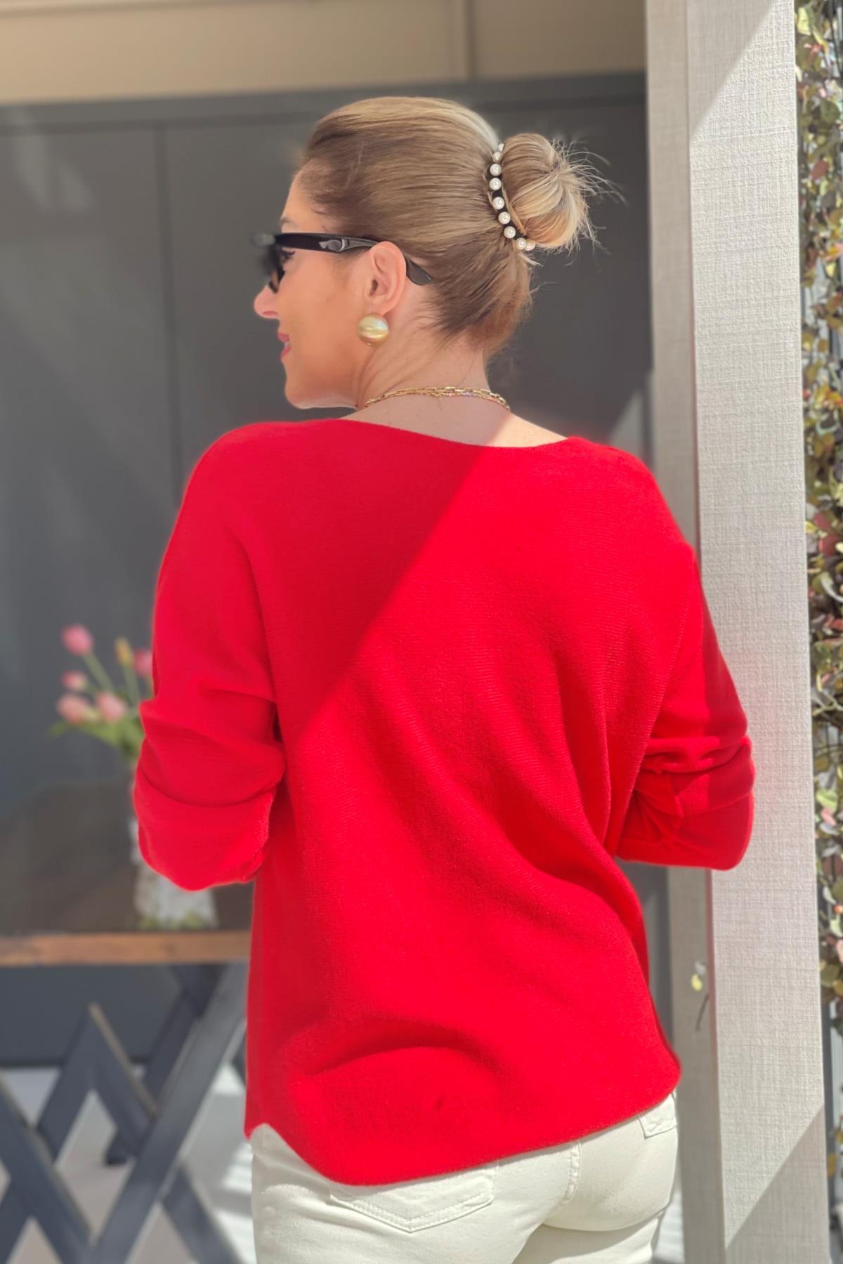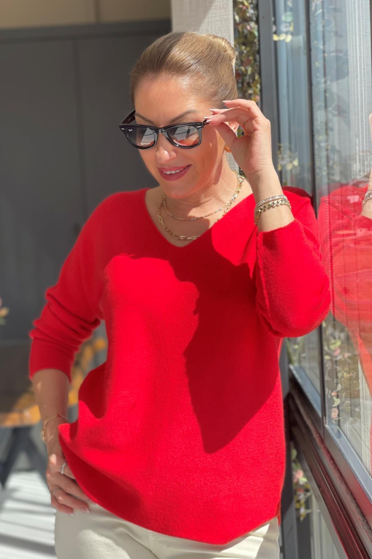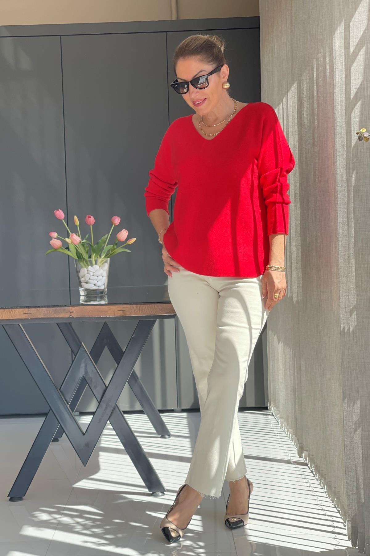 V Yaka Kırmızı Triko Kazak (Mislina-1587)