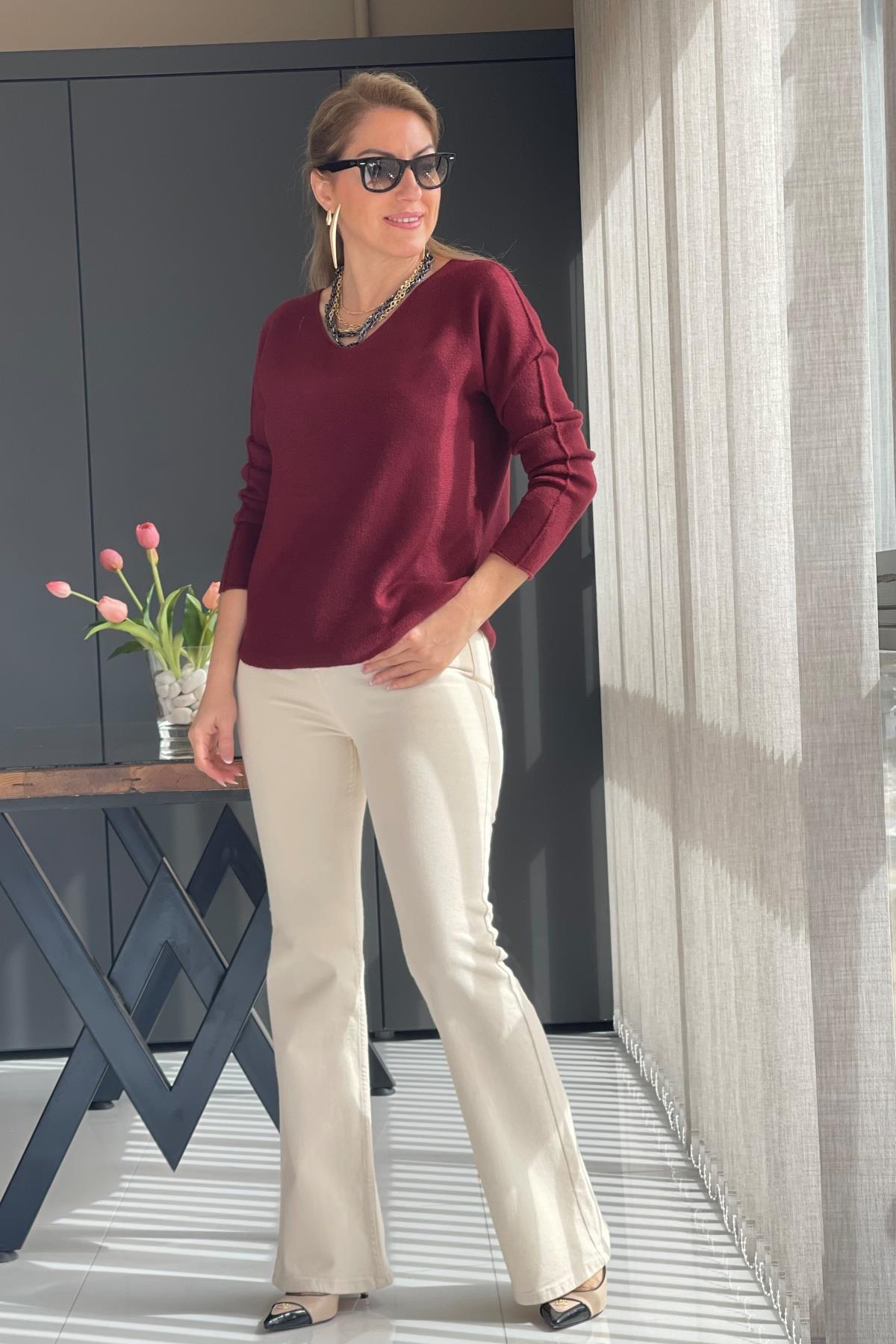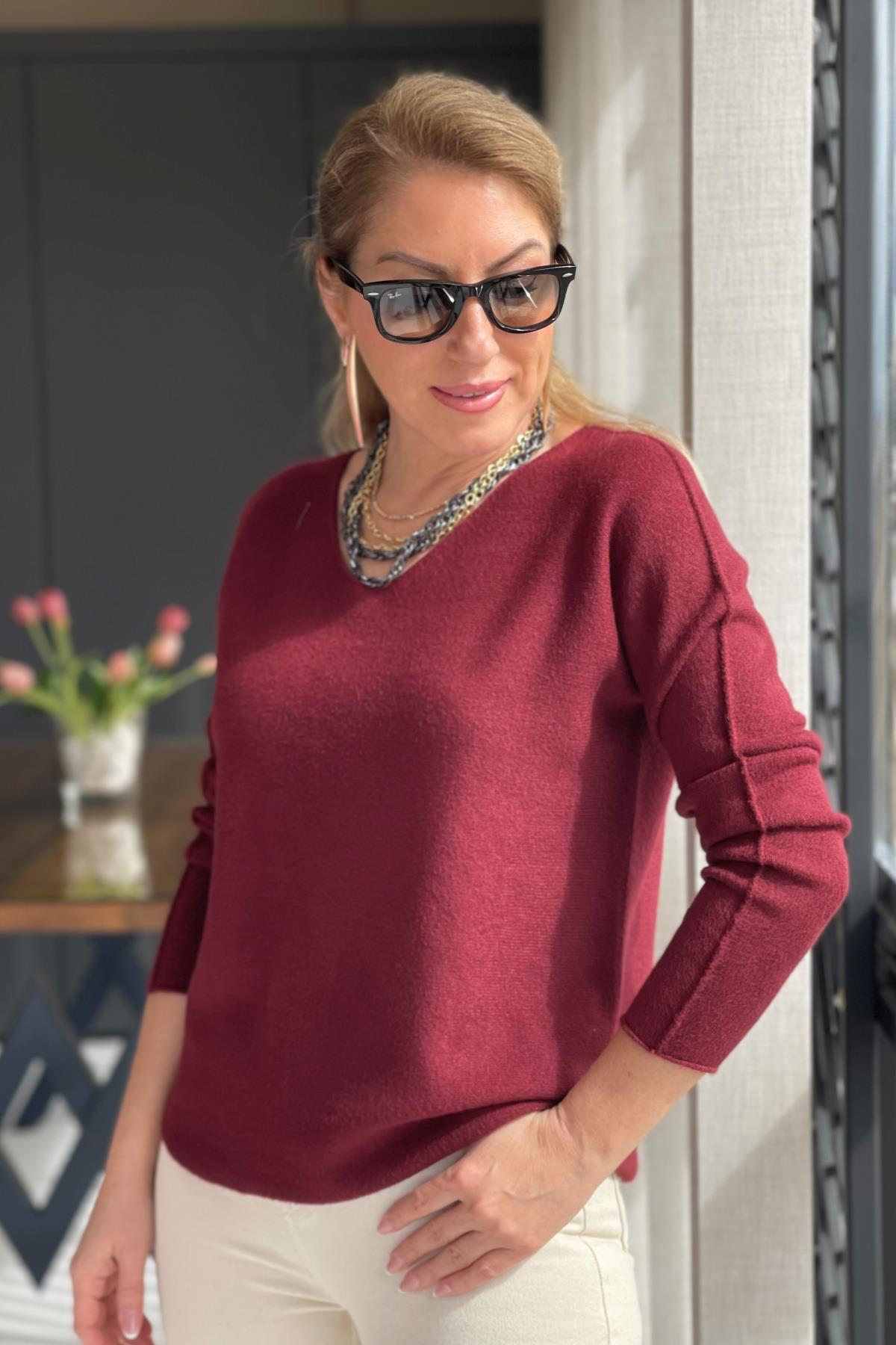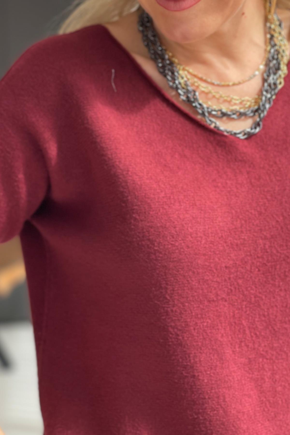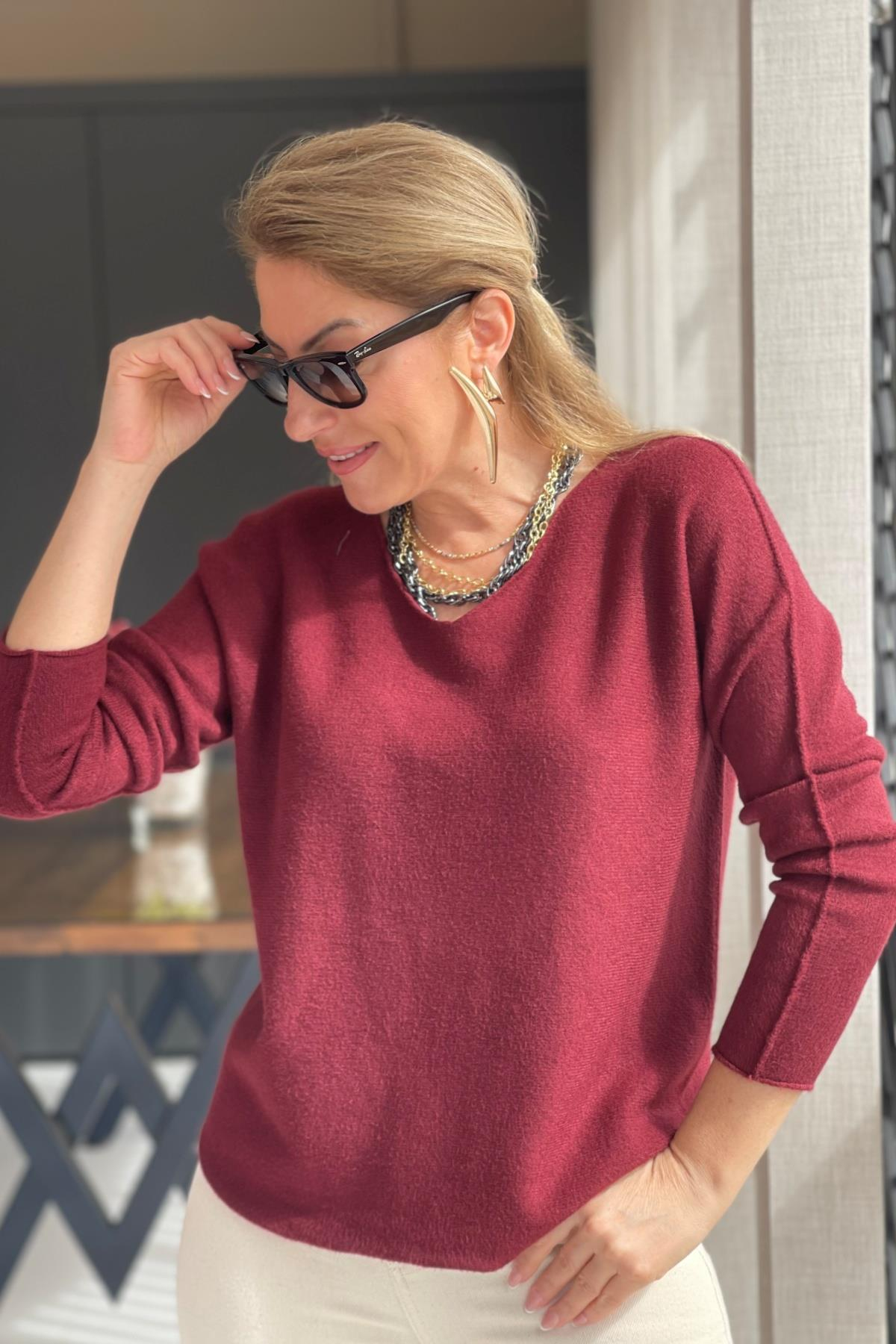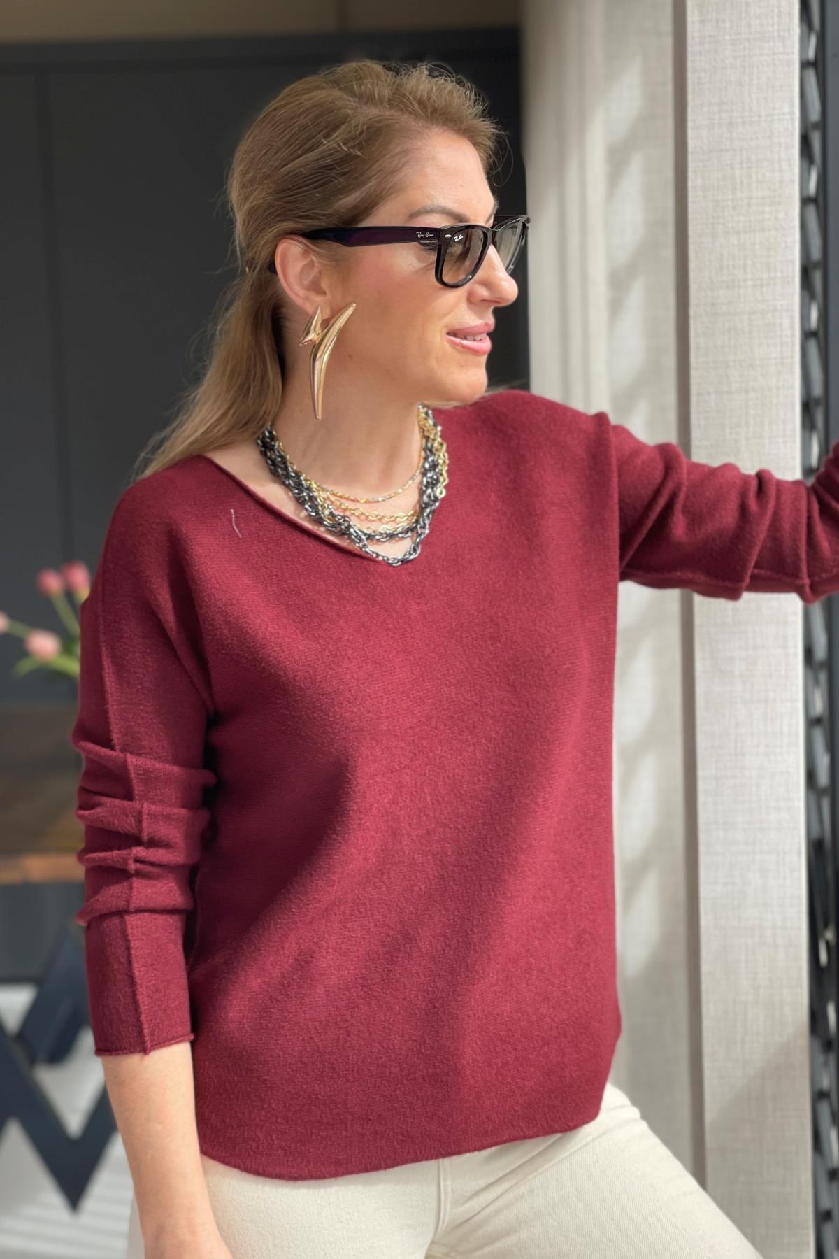 V Yaka Koyu Bordo Triko Kazak (Mislina-1587)