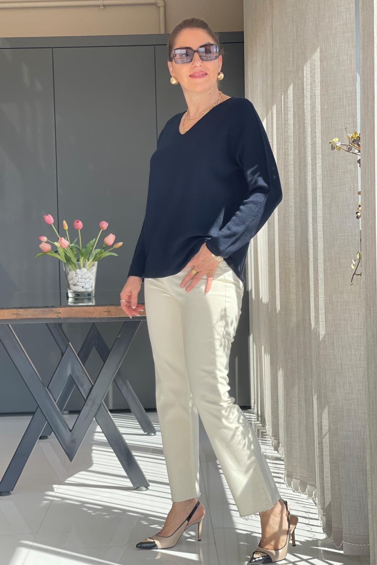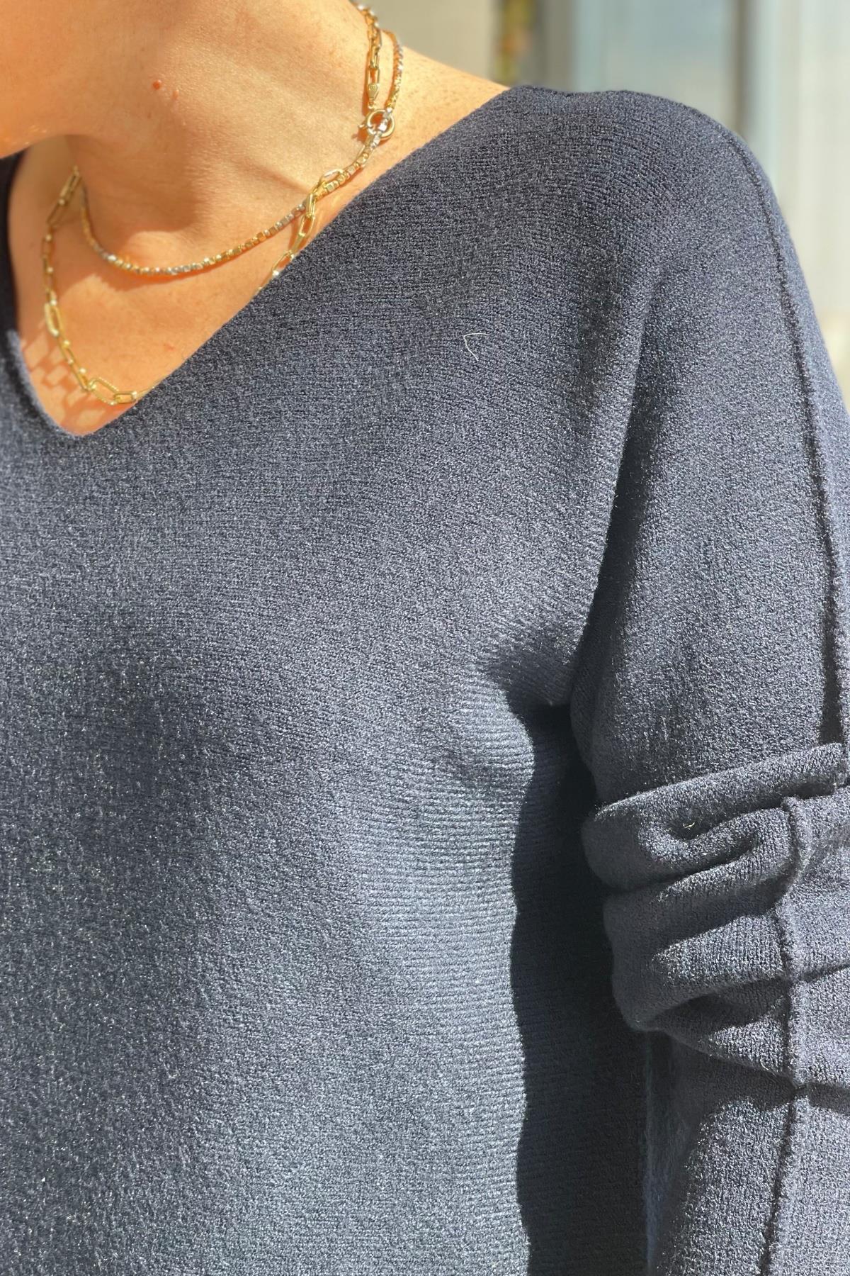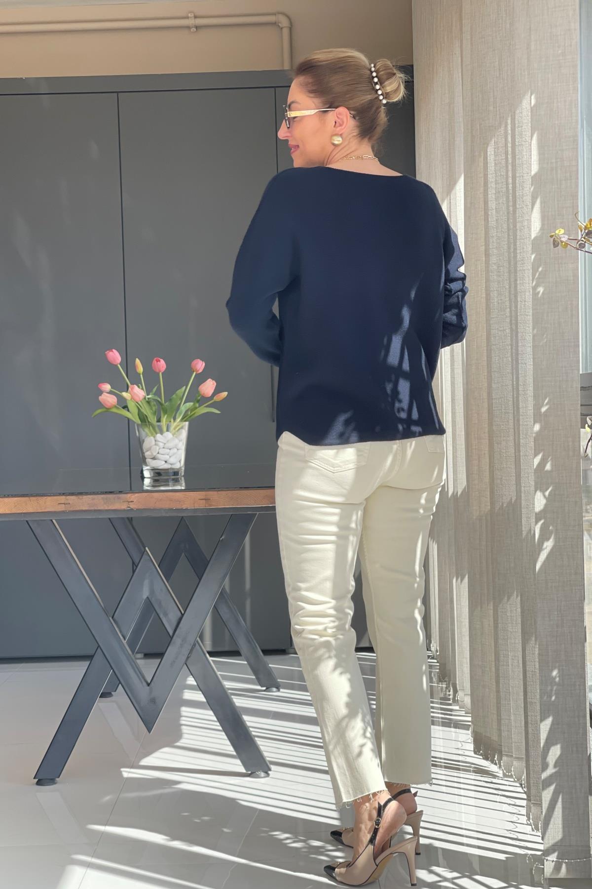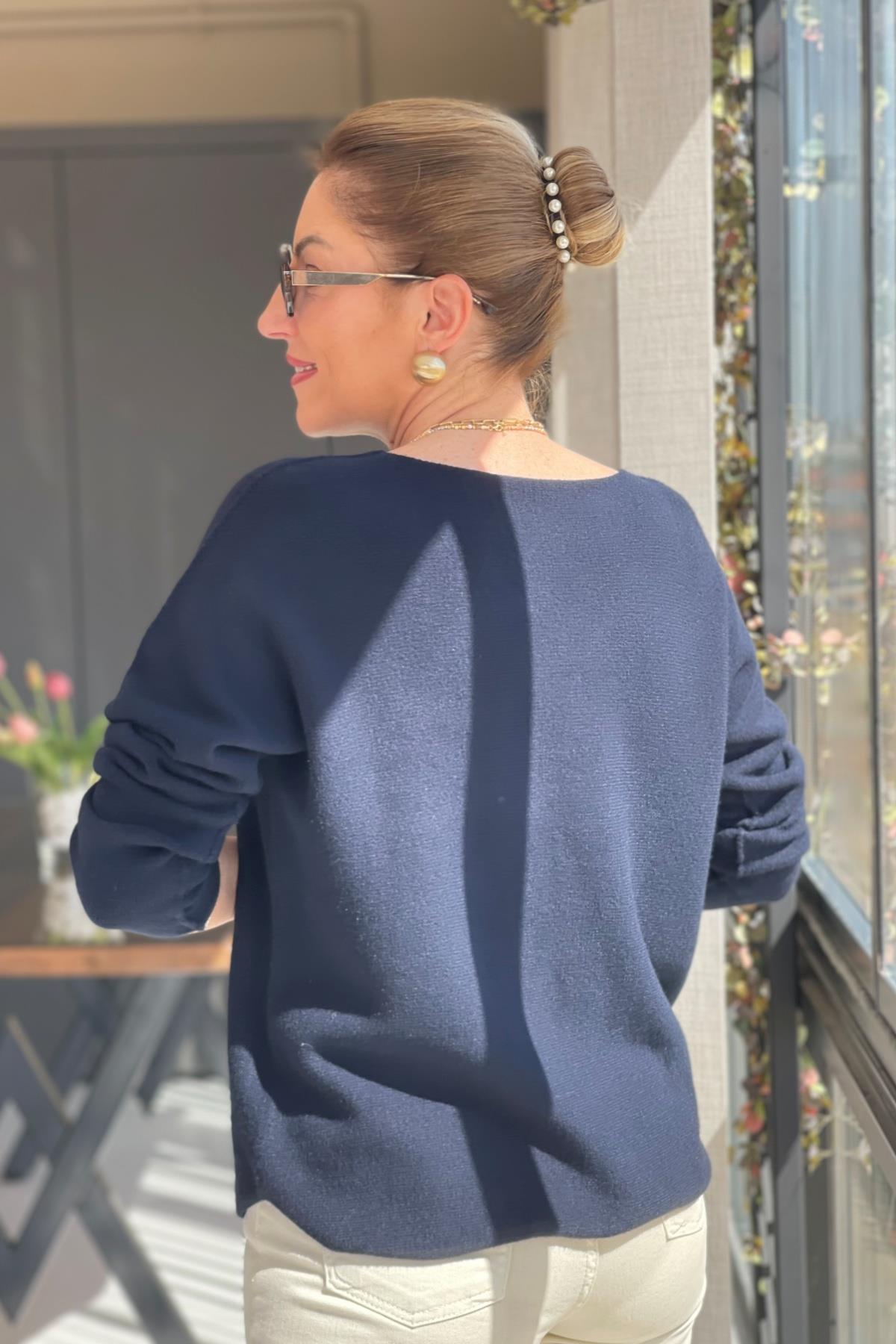 V Yaka Lacivert Triko Kazak (Mislina-1587)