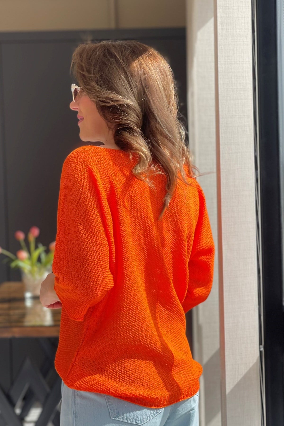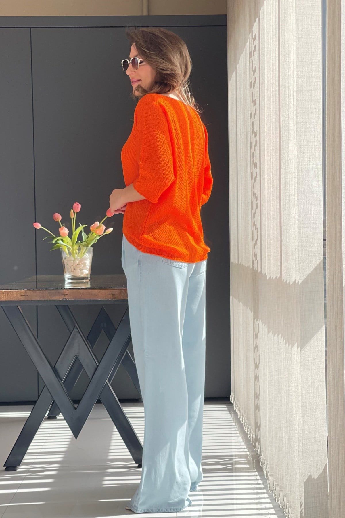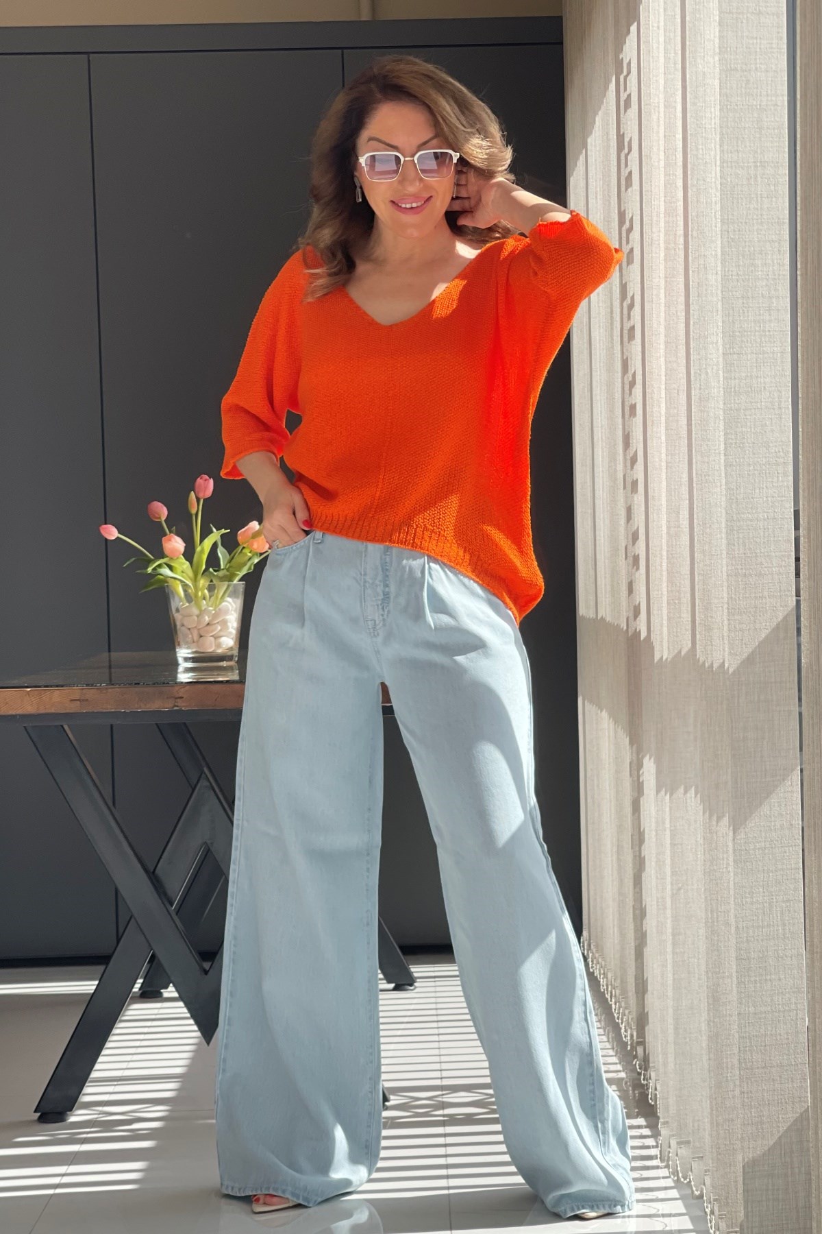 V Yaka Orange Triko Bluz (Mislina-1854)