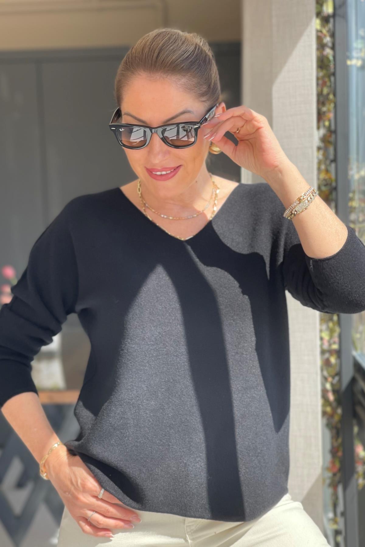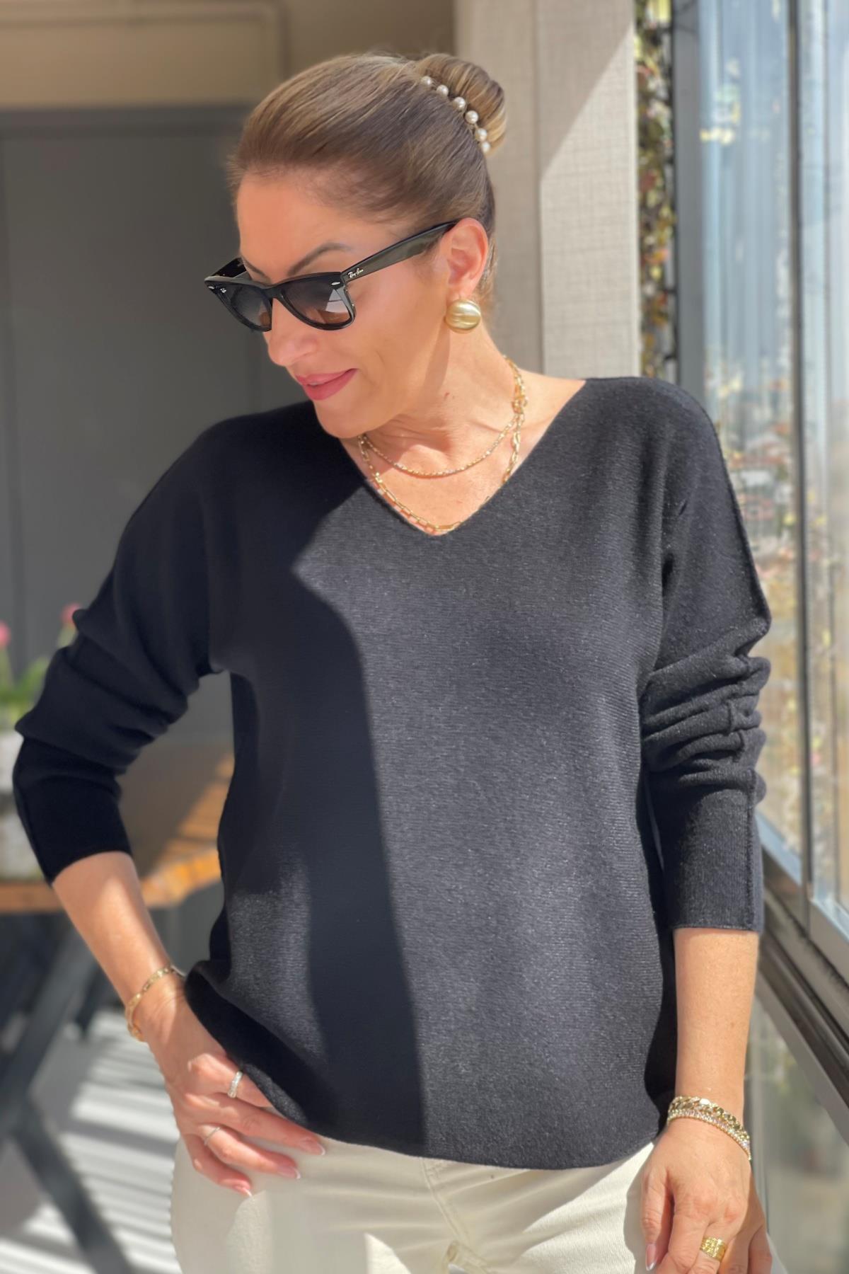 V Yaka Siyah Triko Kazak (Mislina-1587)