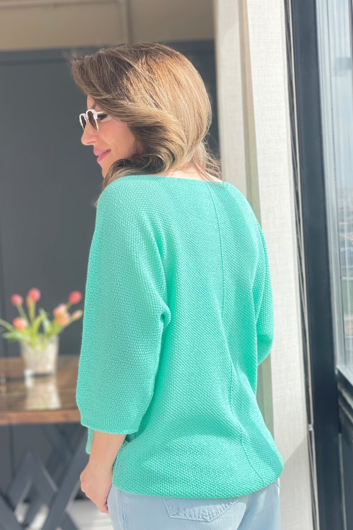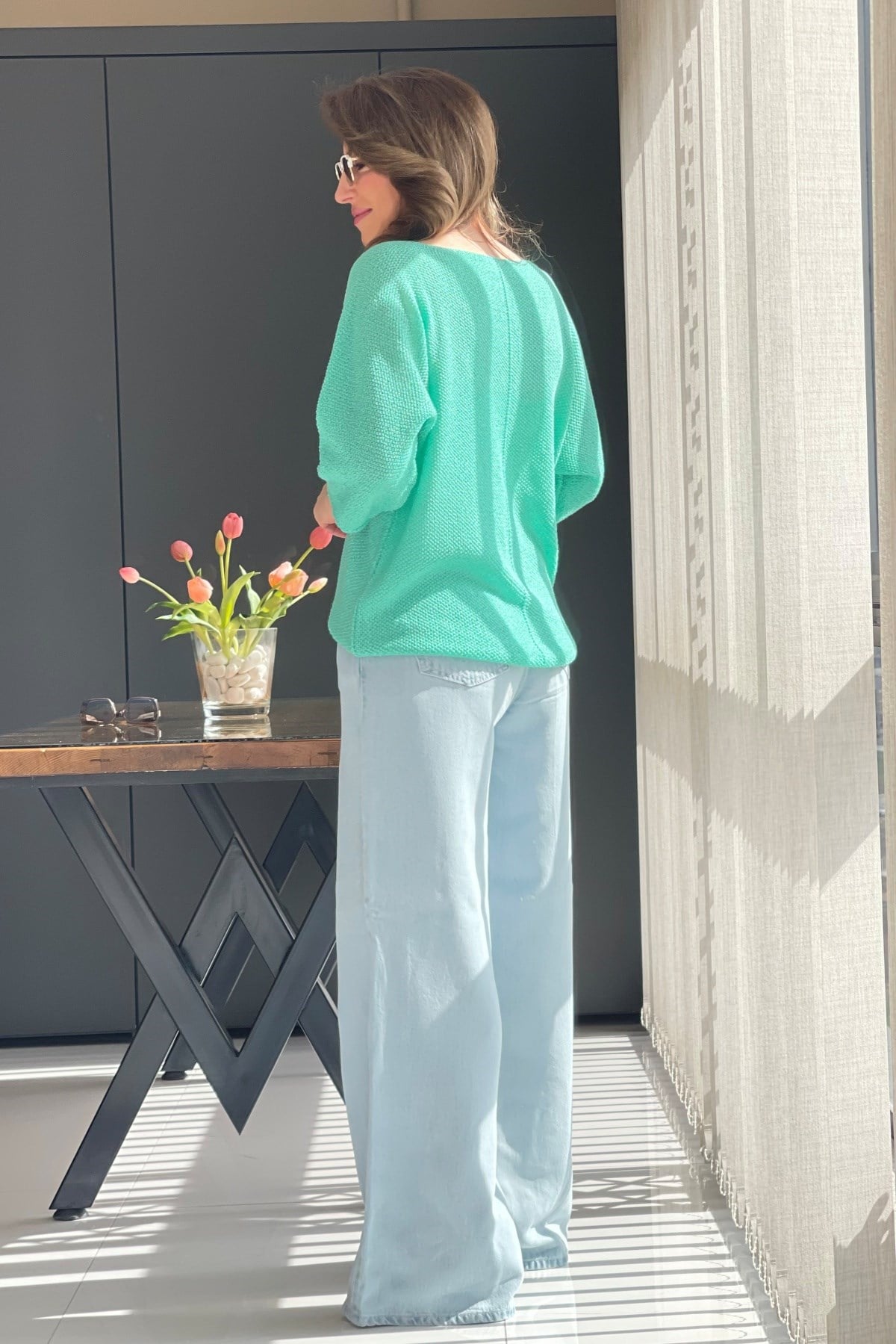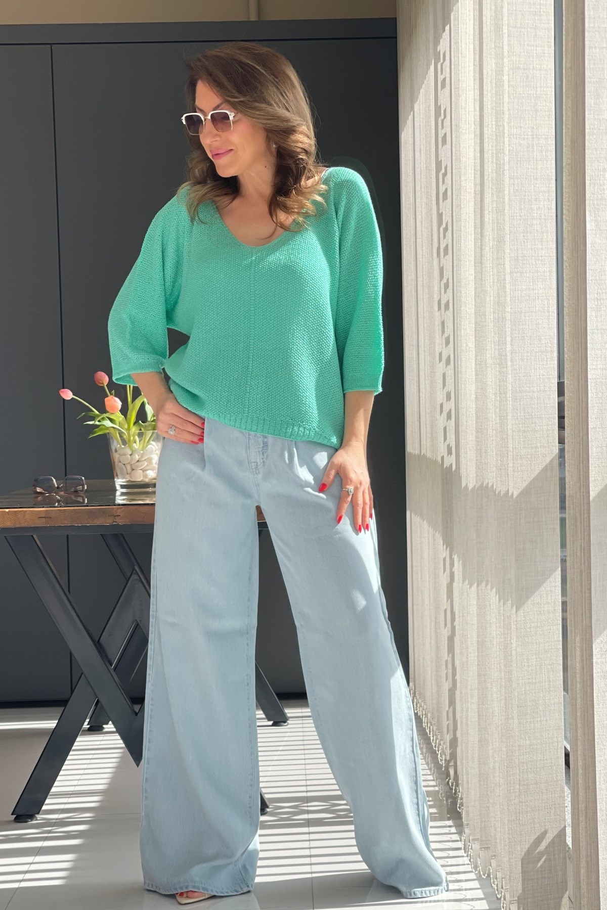 V Yaka Su Yeşili Triko Bluz (Mislina-1854)