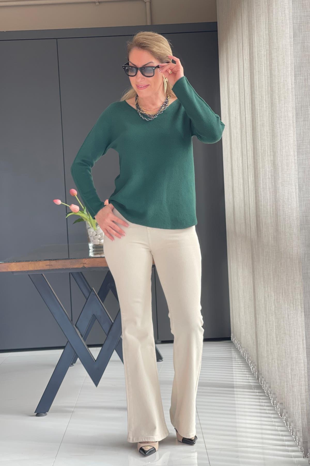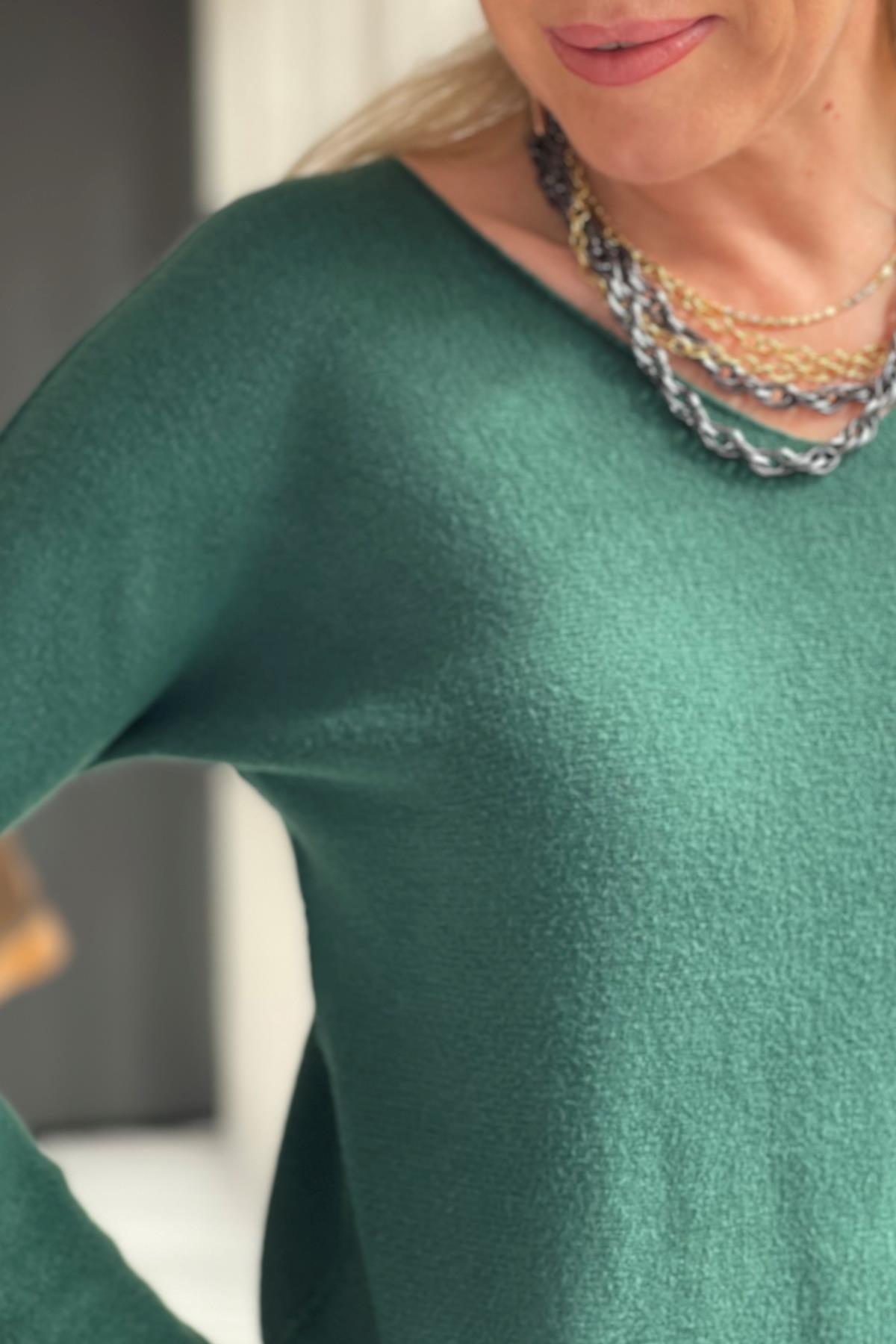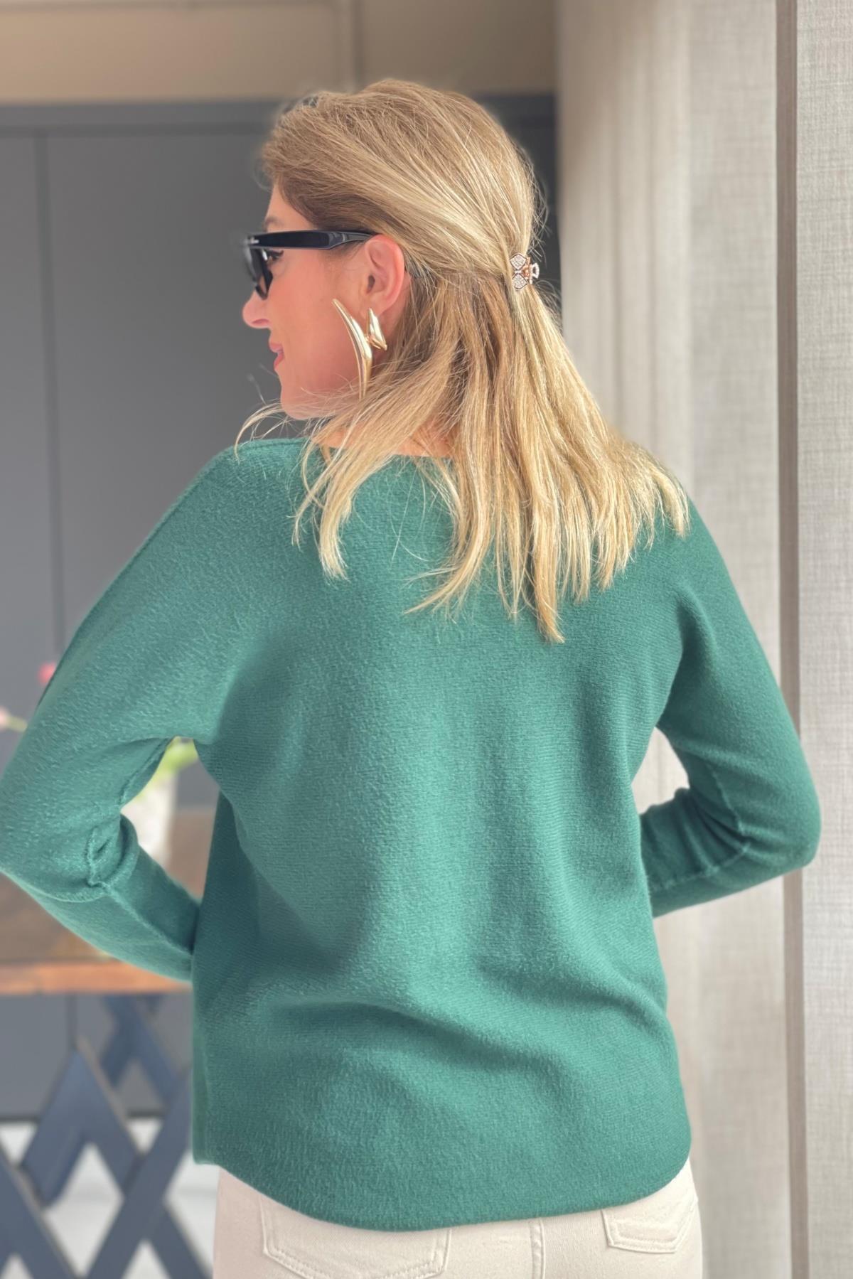 V Yaka Zümrüt Triko Kazak (Mislina-1587)