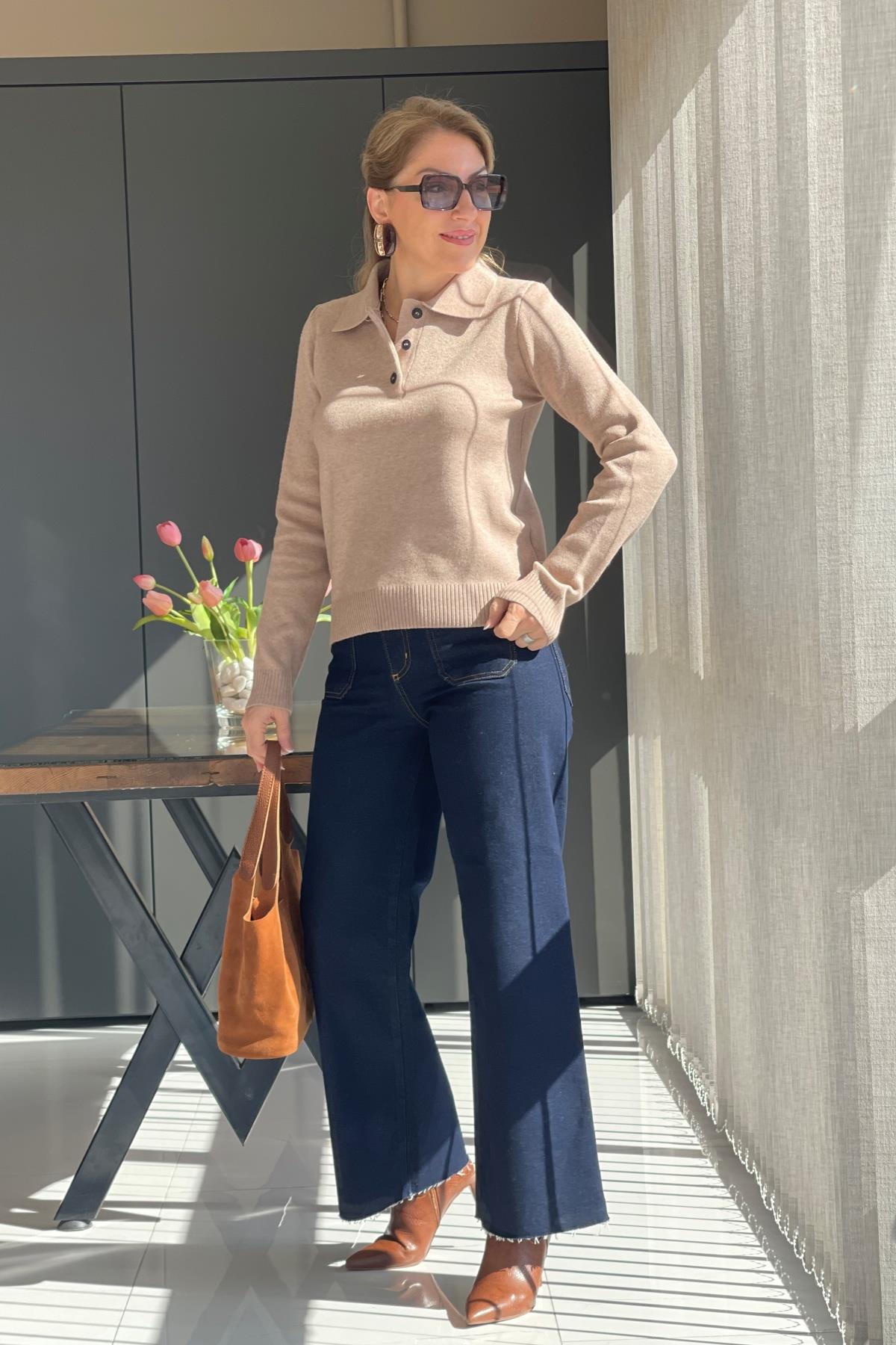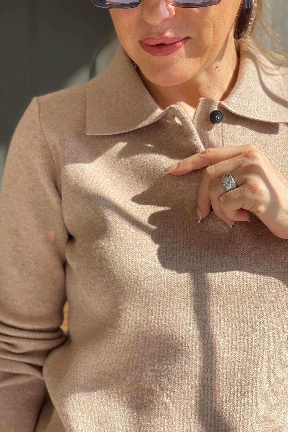 Yaka Detay Cappuccıno Kazak (Mislina-1645)