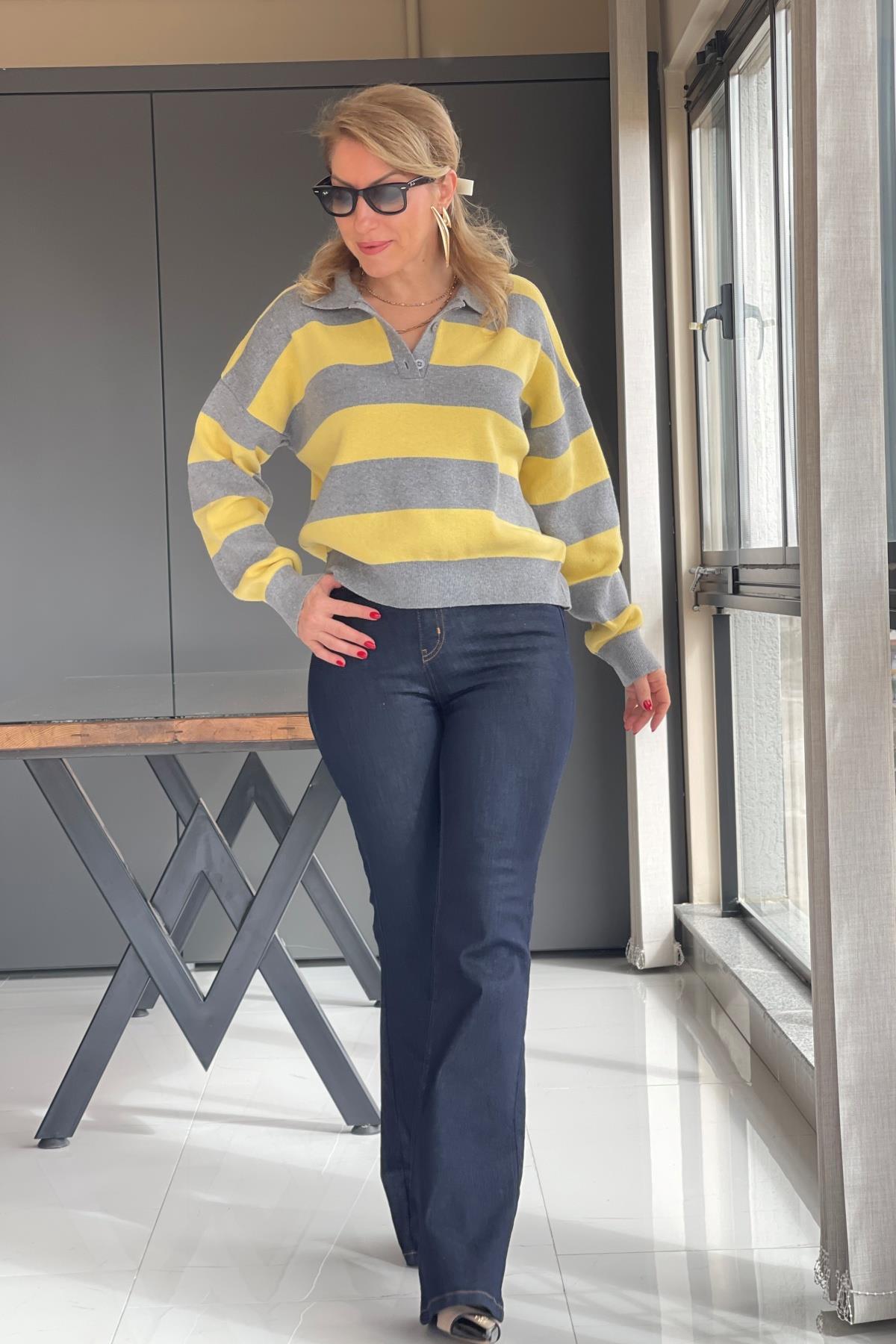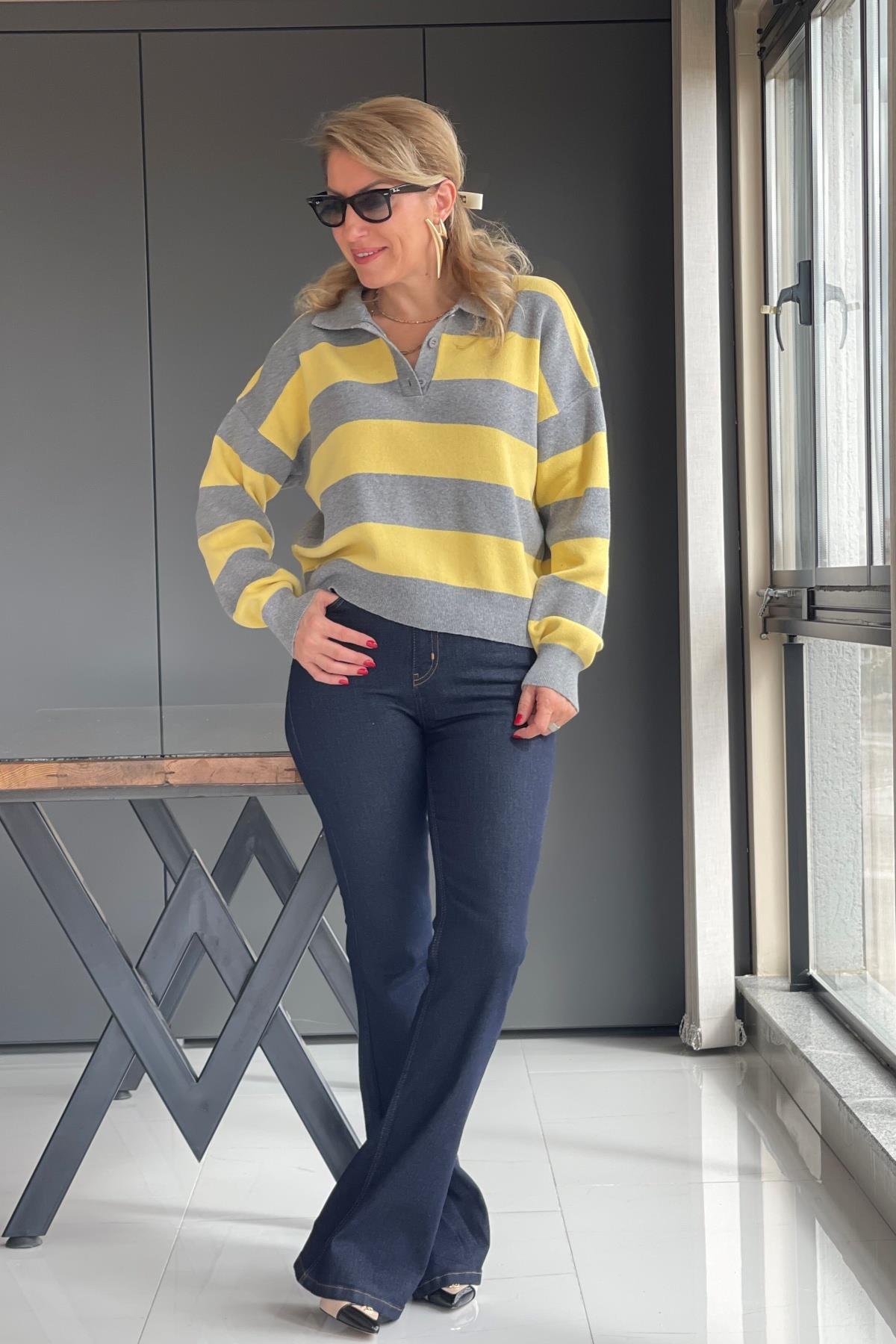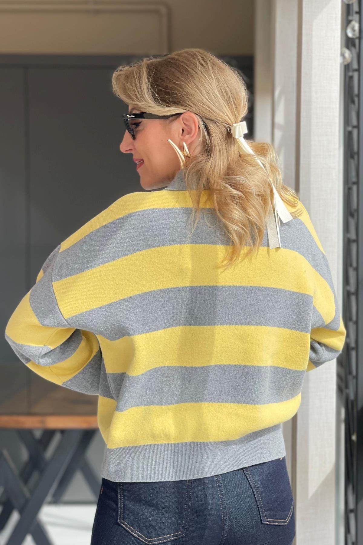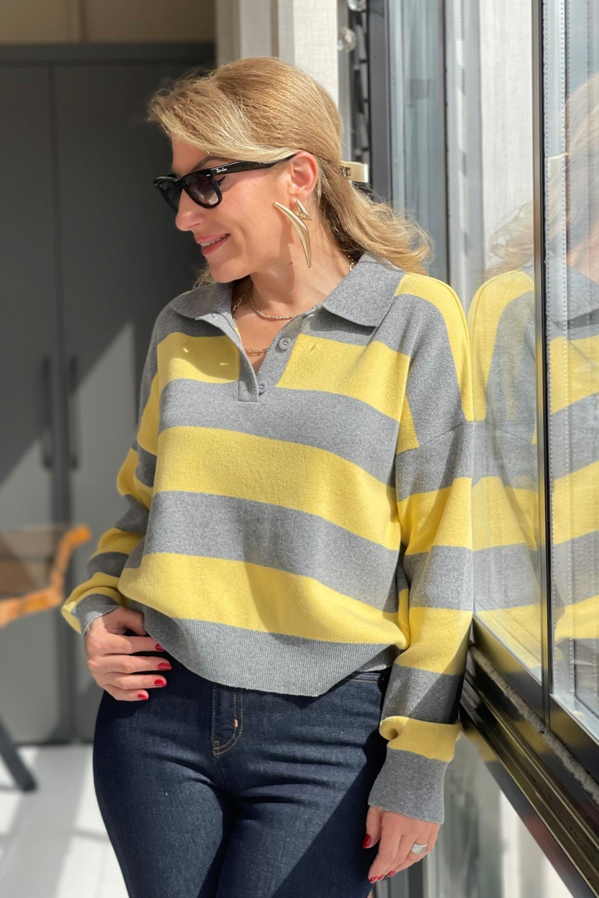 Yaka Detay Sarı Gri Kazak (Mislina-1651)