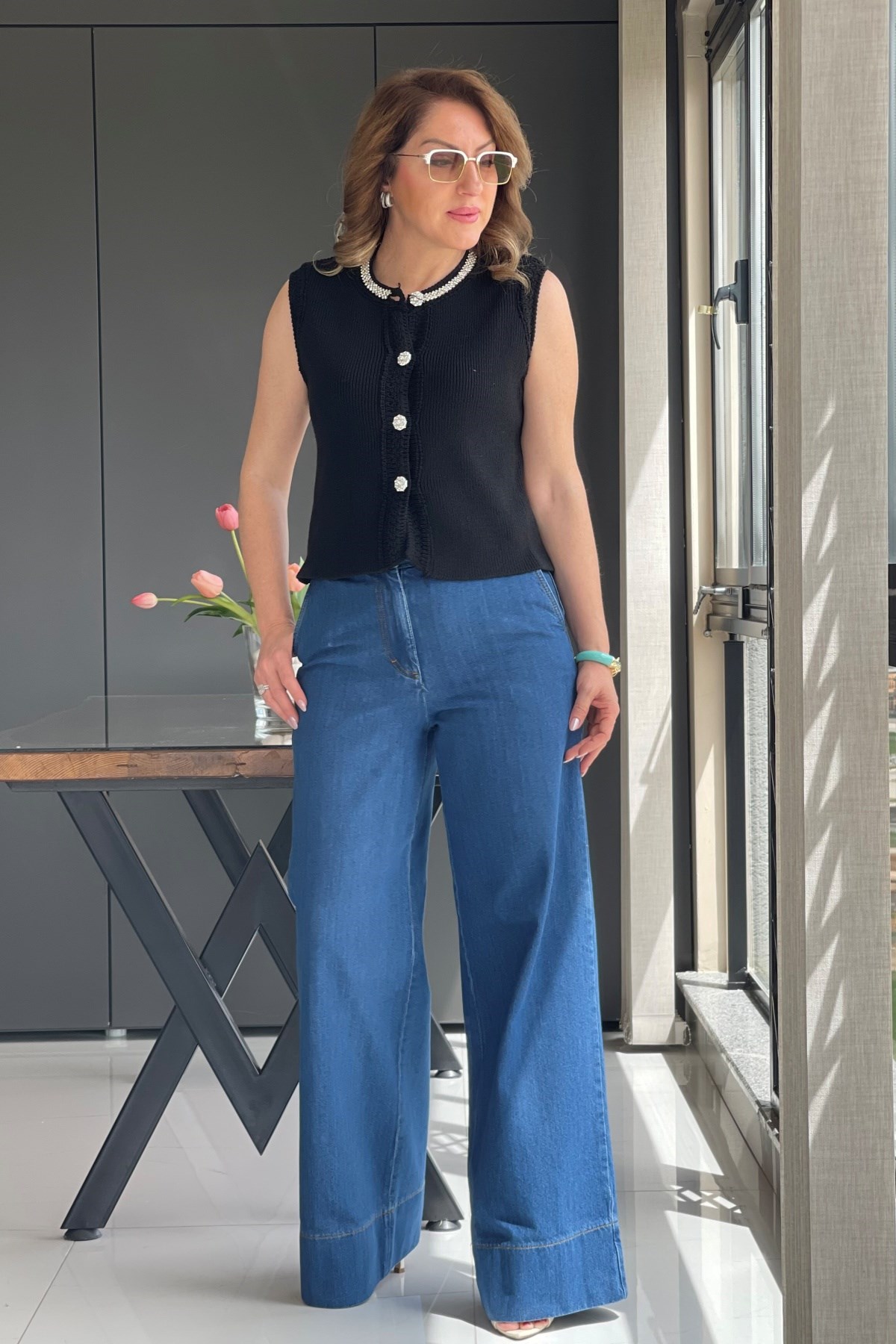 Yaka Detay Siyah Yelek (Mislina-1881)