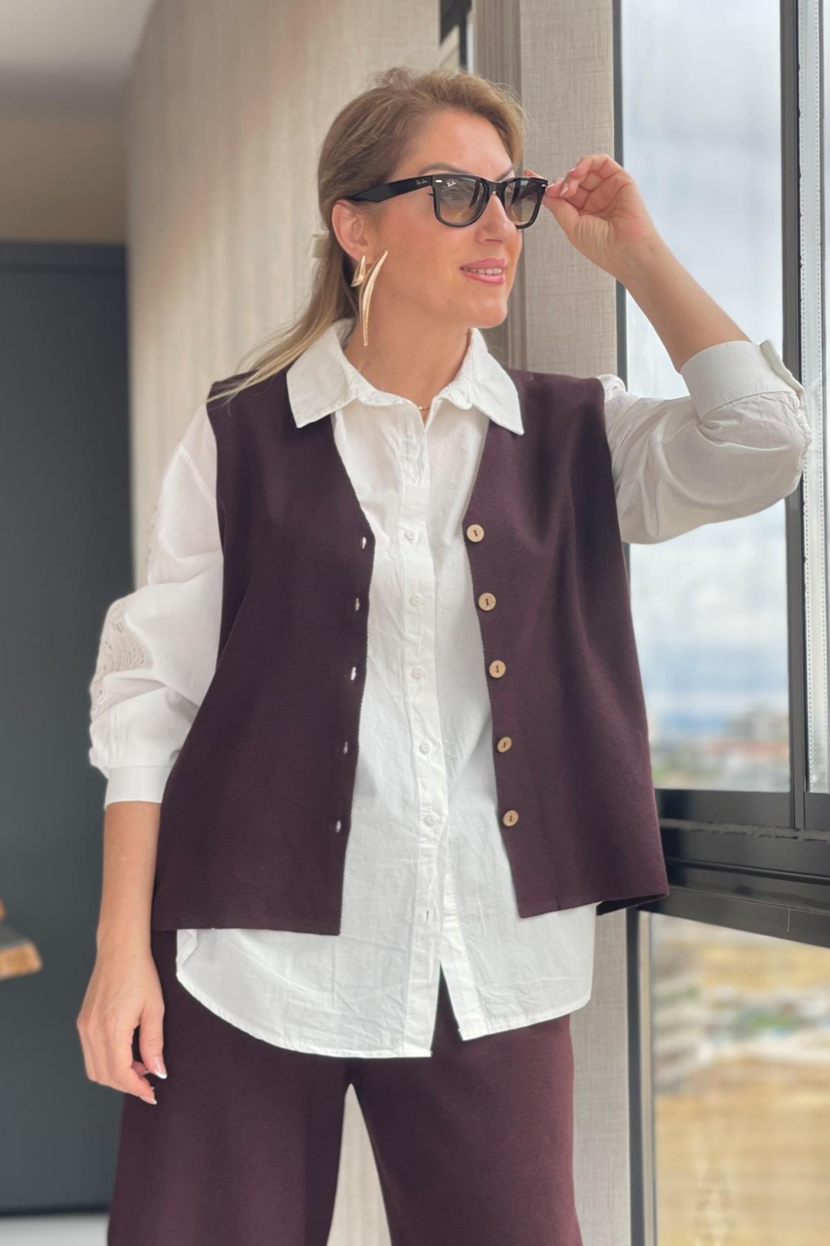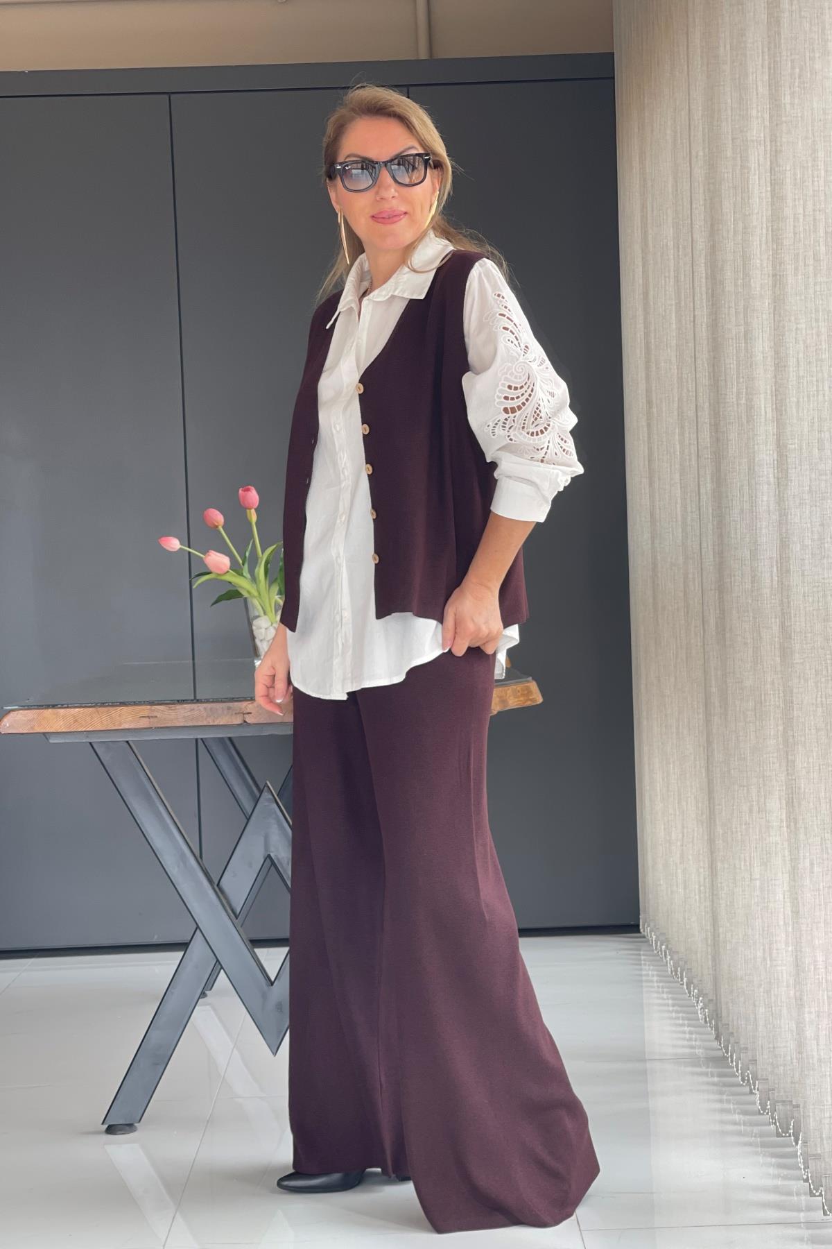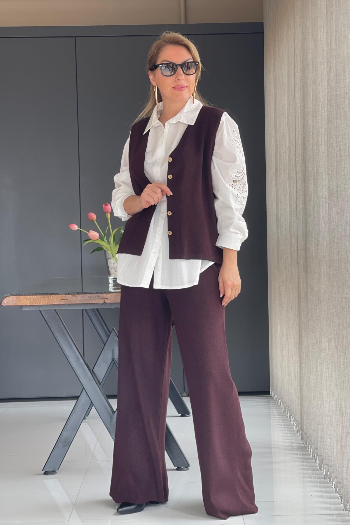 Yelekli Kiraz Renk Triko Takım (Mislina-1608)