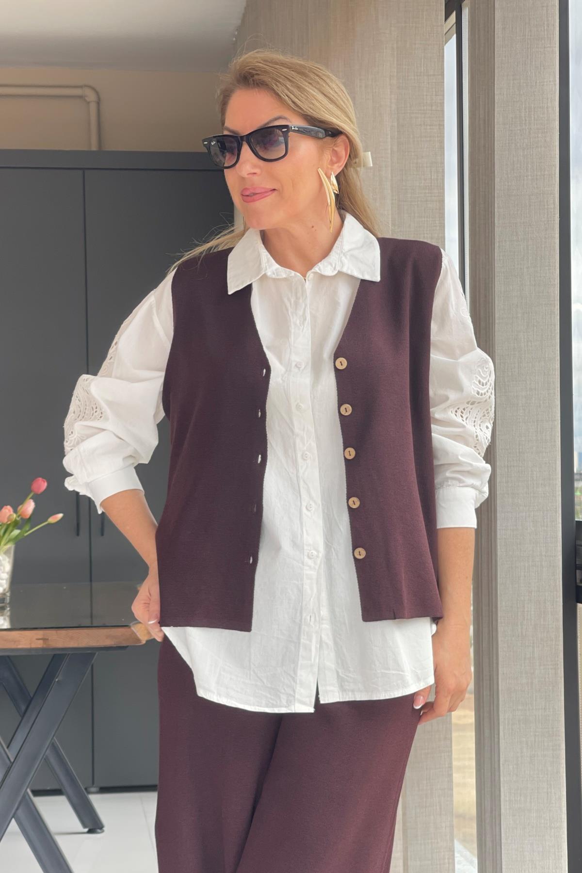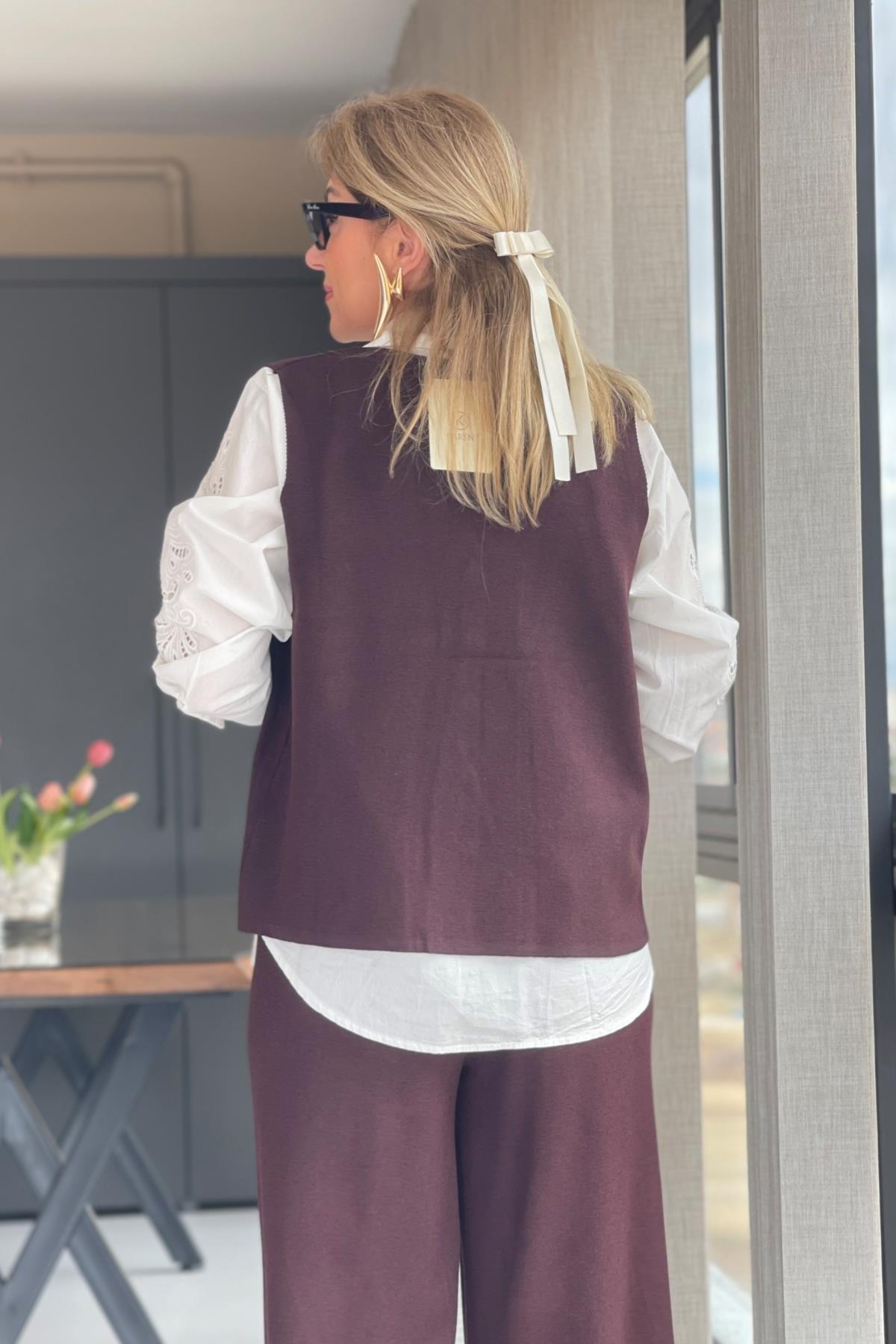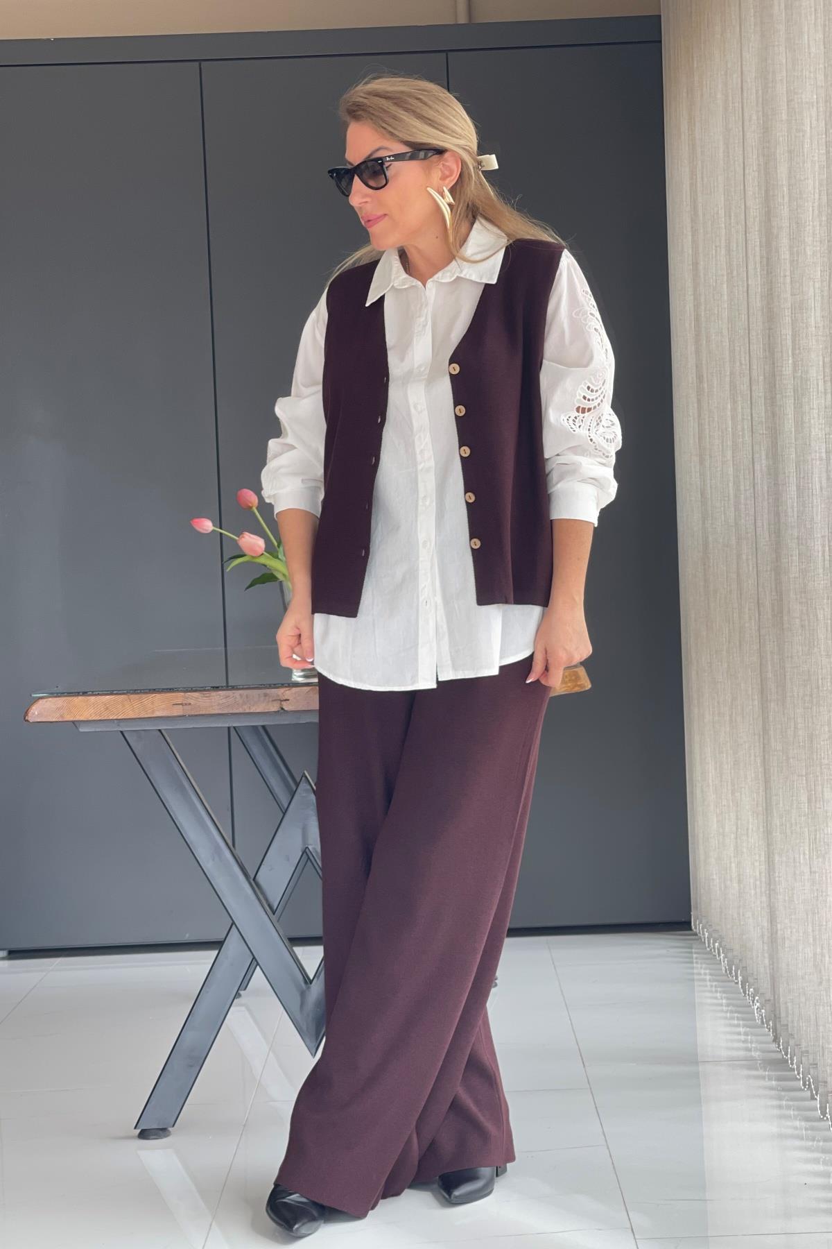 Yelekli Kiraz Renk Triko Takım (Mislina-1608)