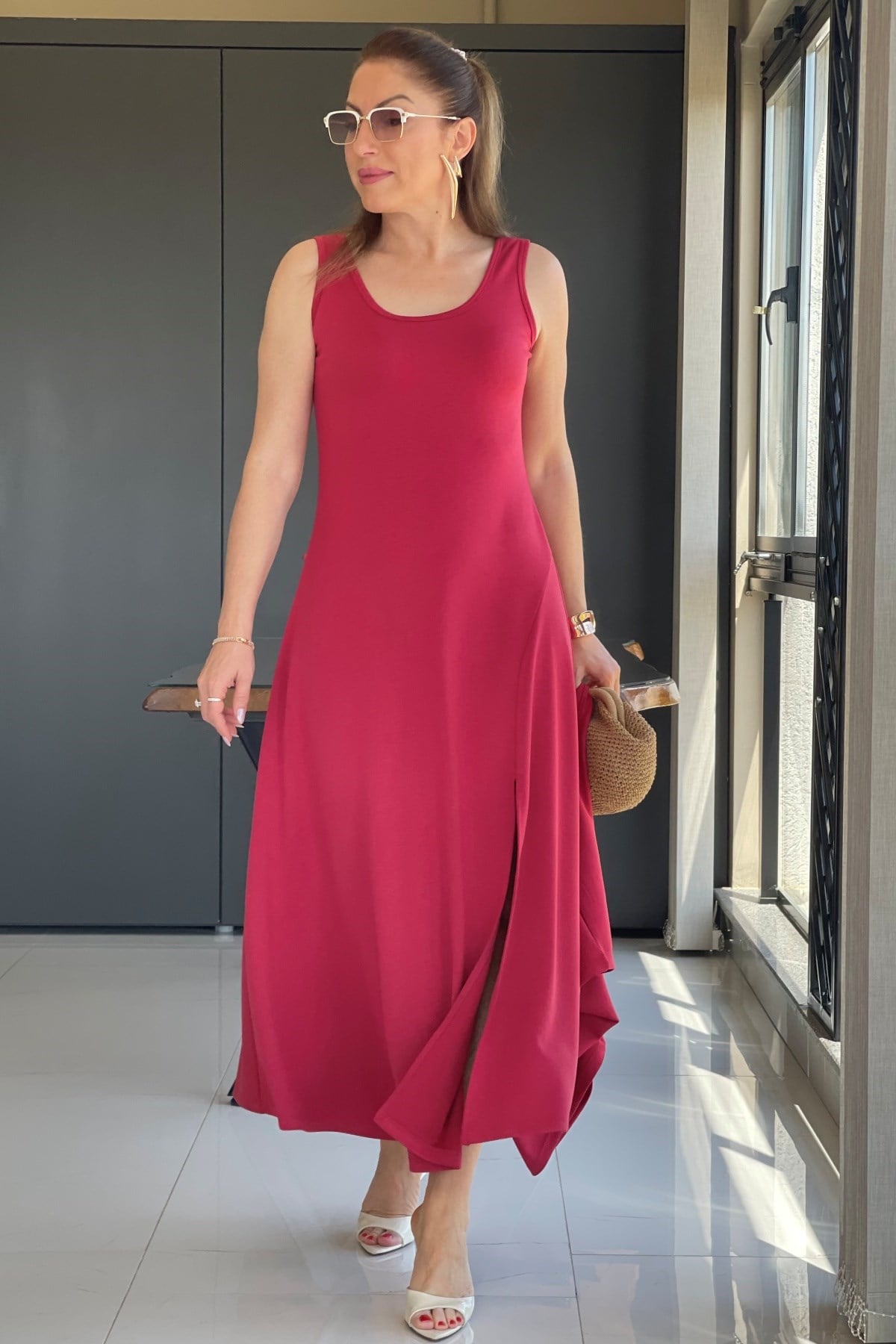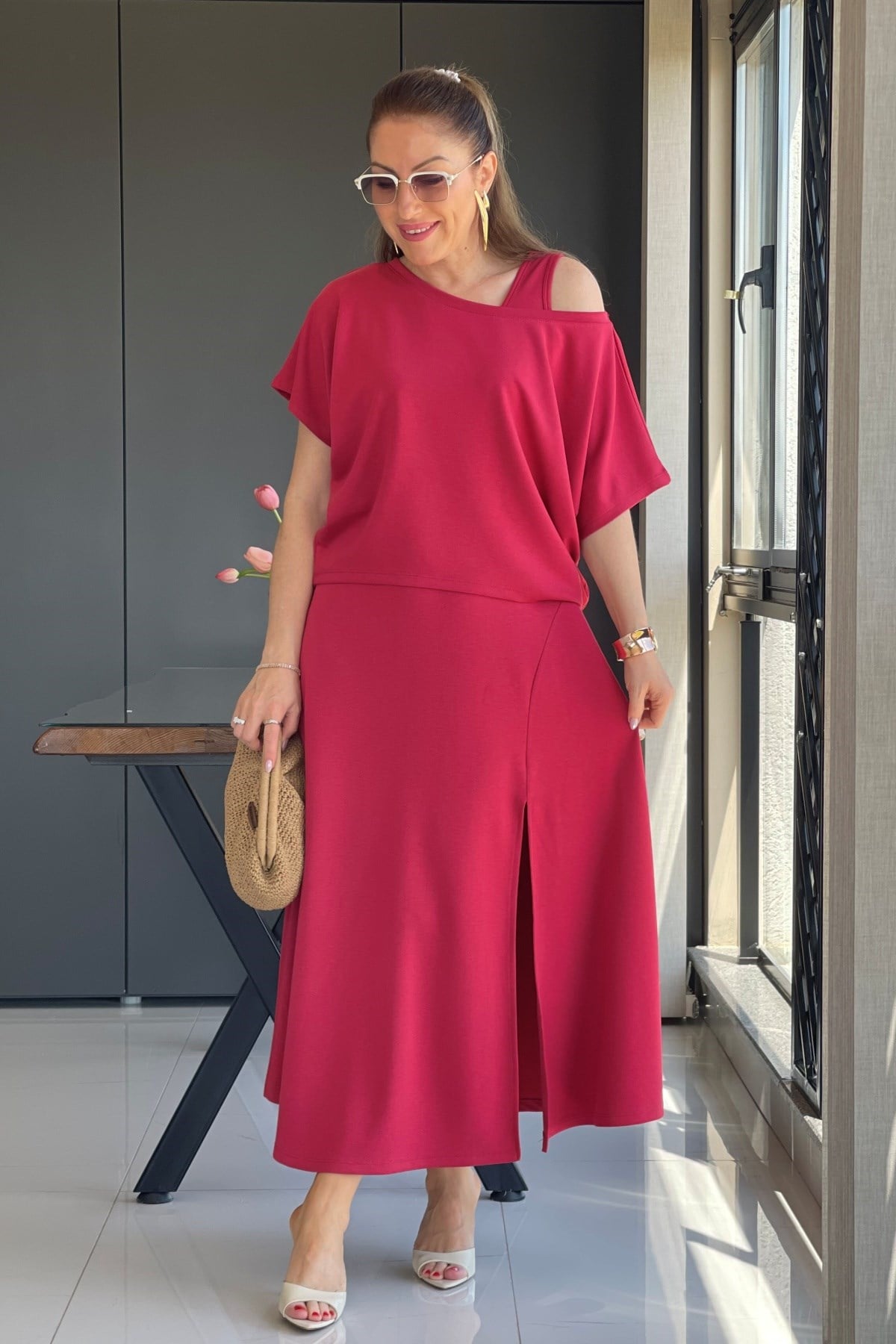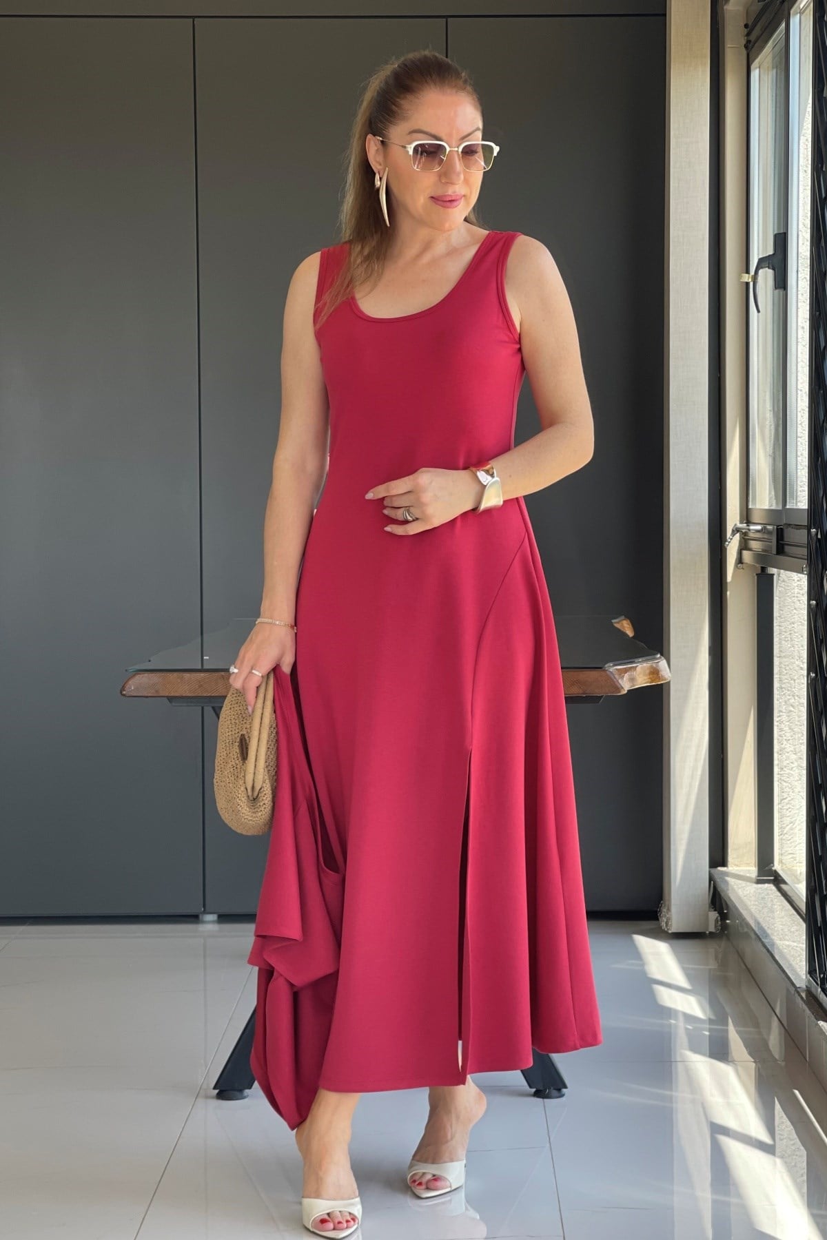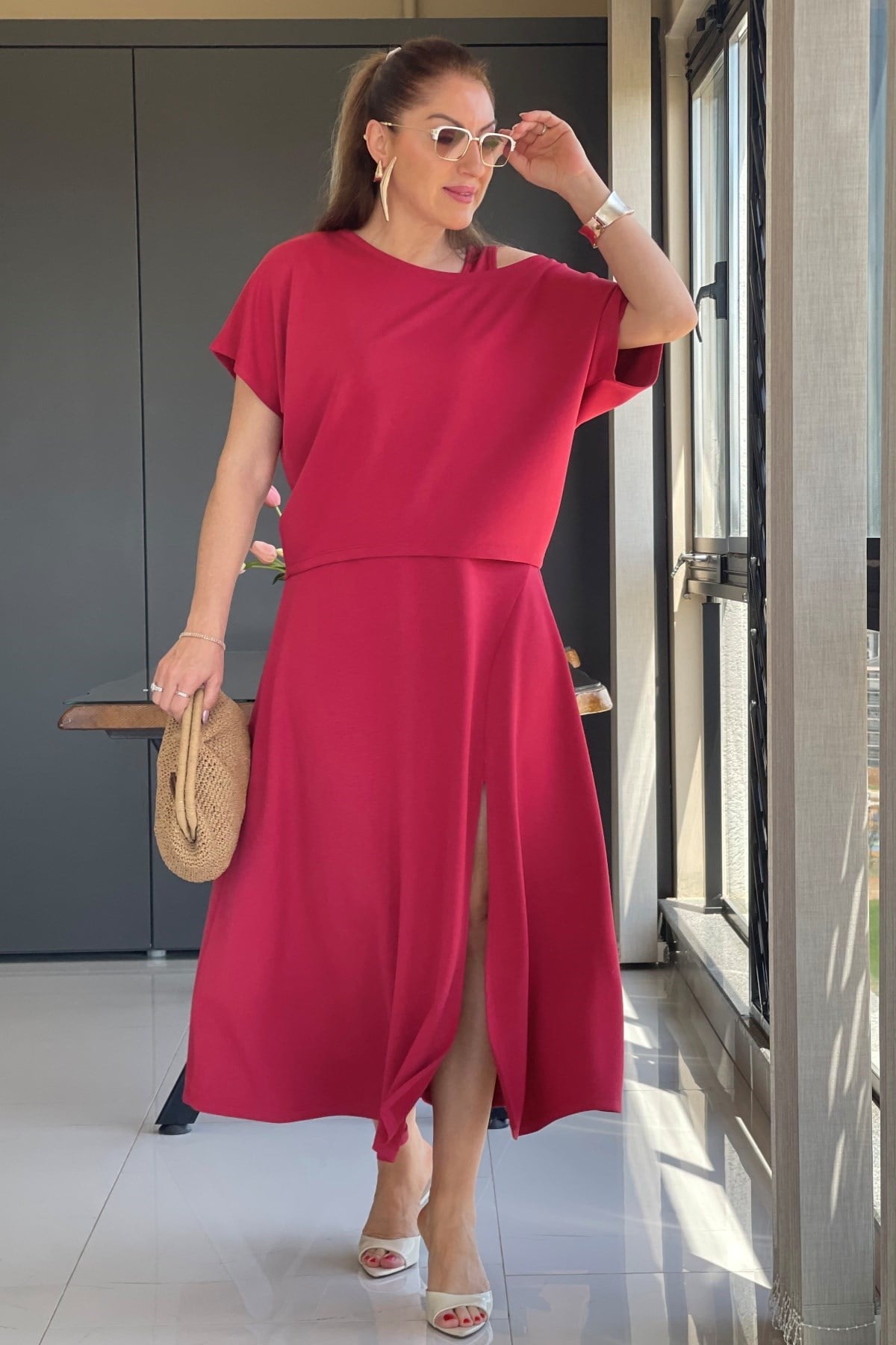 Yırtmaç Detay Kırmızı Modal Elbise (Mislina-1888)